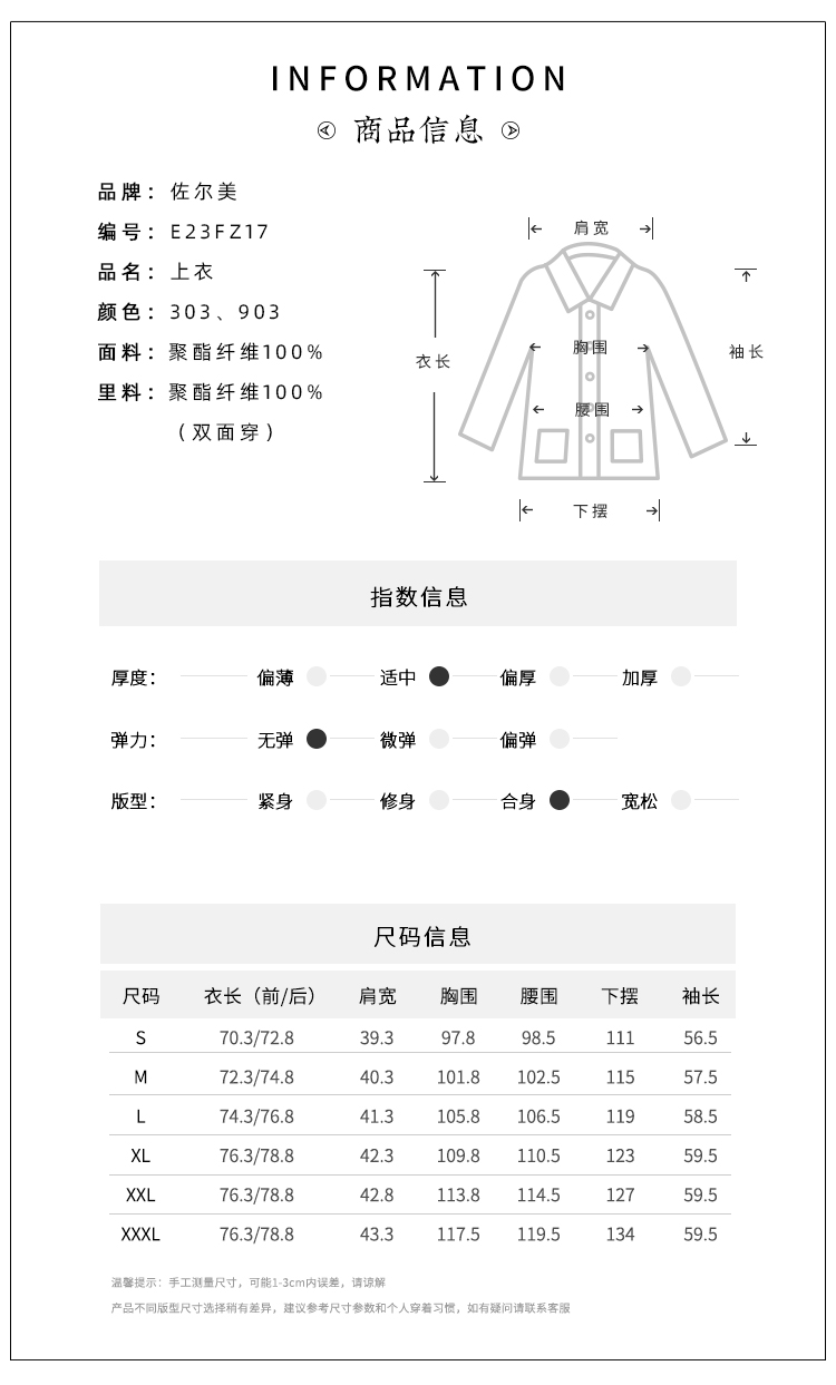 佐尔美春秋季女装时尚休闲中袖西装领中长款外套大码E61CC09