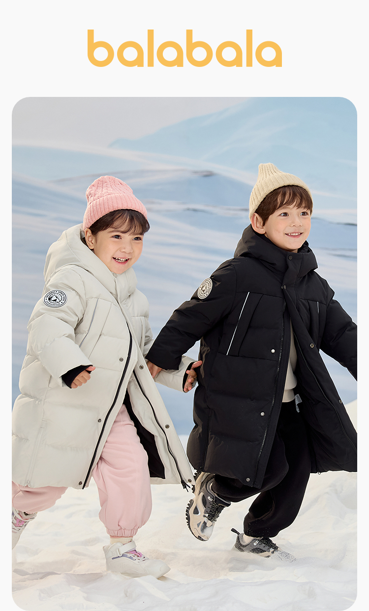 巴拉巴拉儿童羽绒服中长款冬加厚外套男女童连帽亲子装防风防泼水