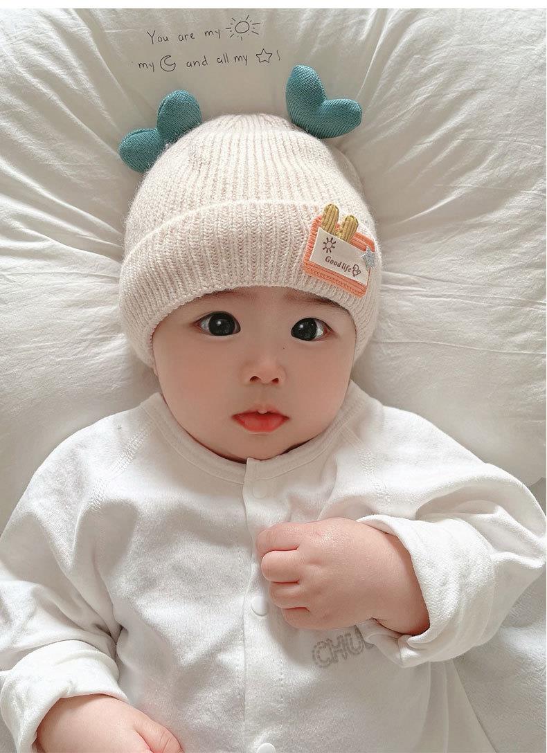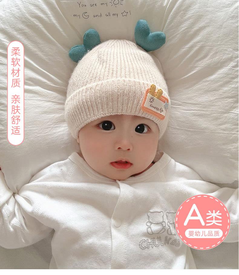 婴儿帽子冬季可爱新生婴幼儿宝宝毛线帽秋冬保暖男女童针织帽