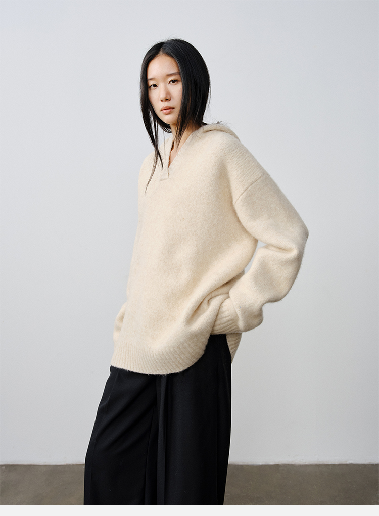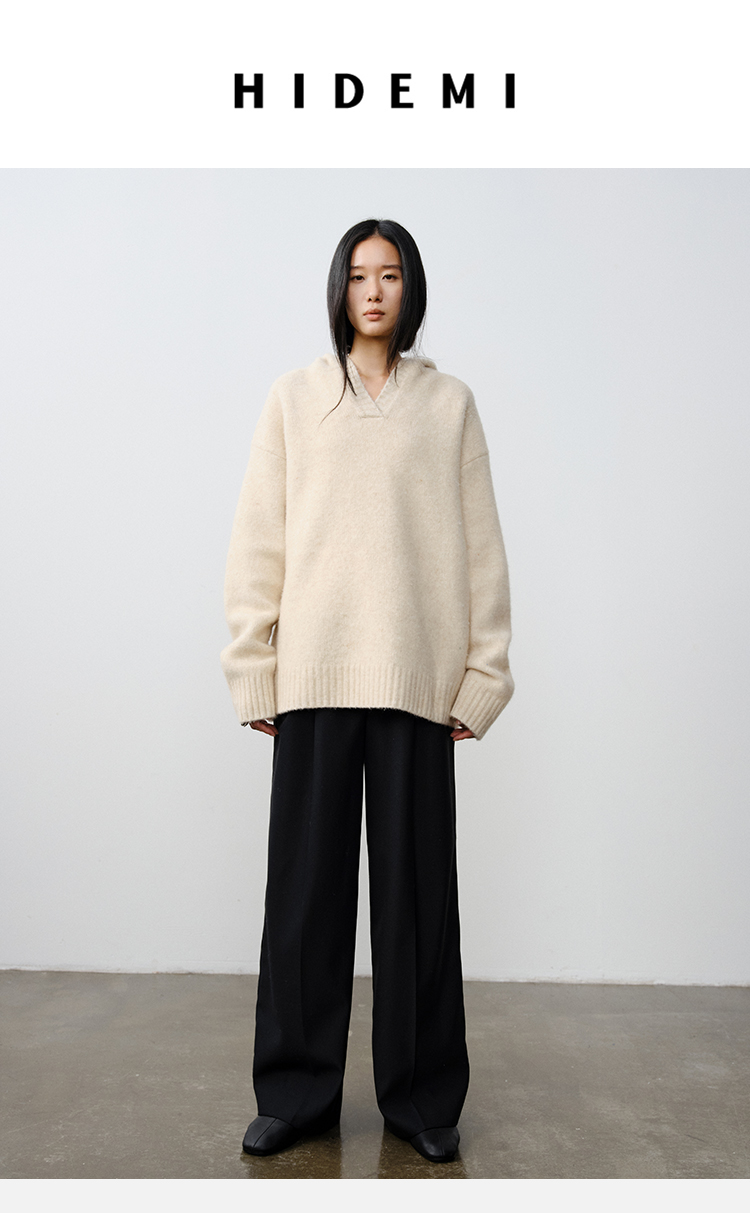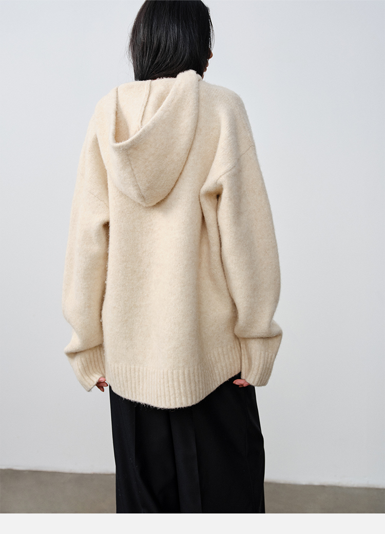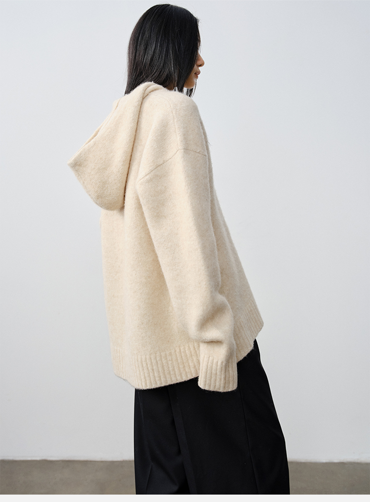 HIDEMI美利奴羊毛系列圈圈纱口袋帽衫