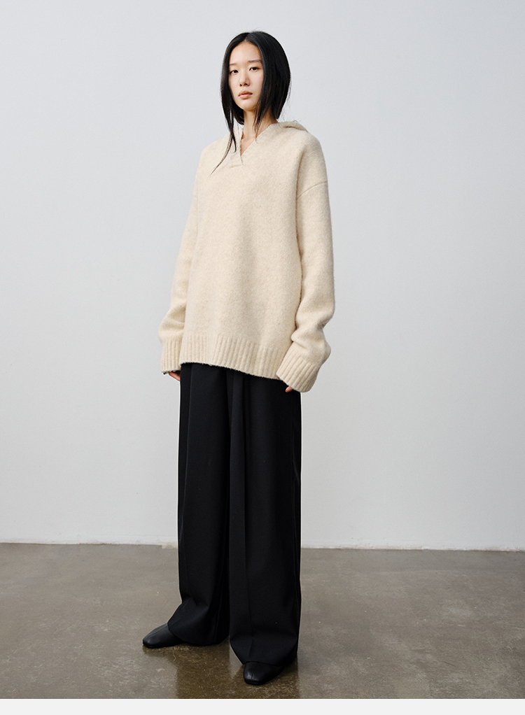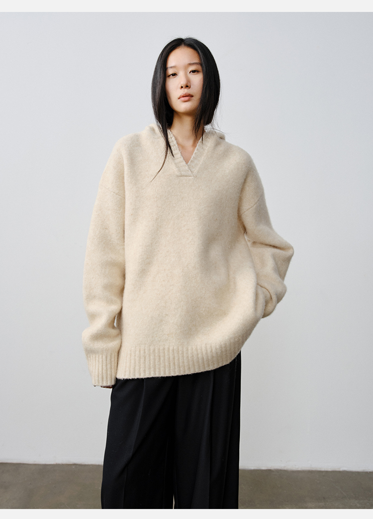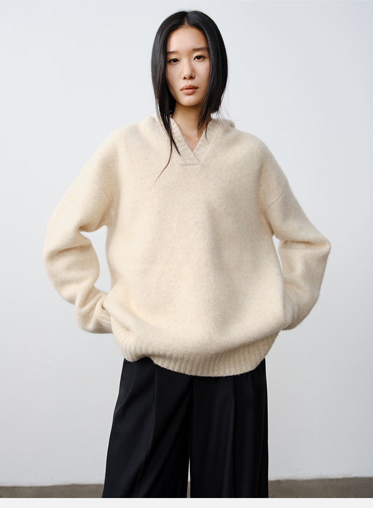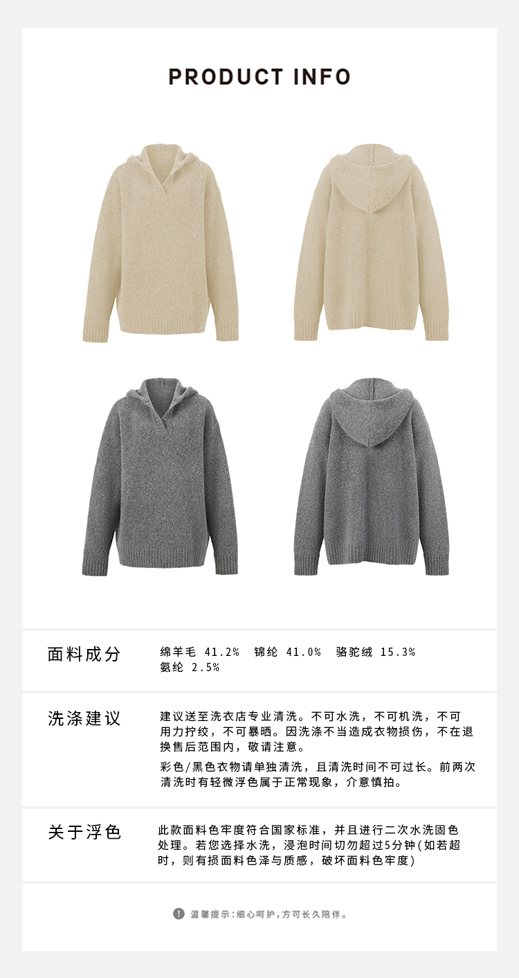 HIDEMI 骆驼毛羊毛花纱混纺加厚款连帽宽松大帽衫毛衣