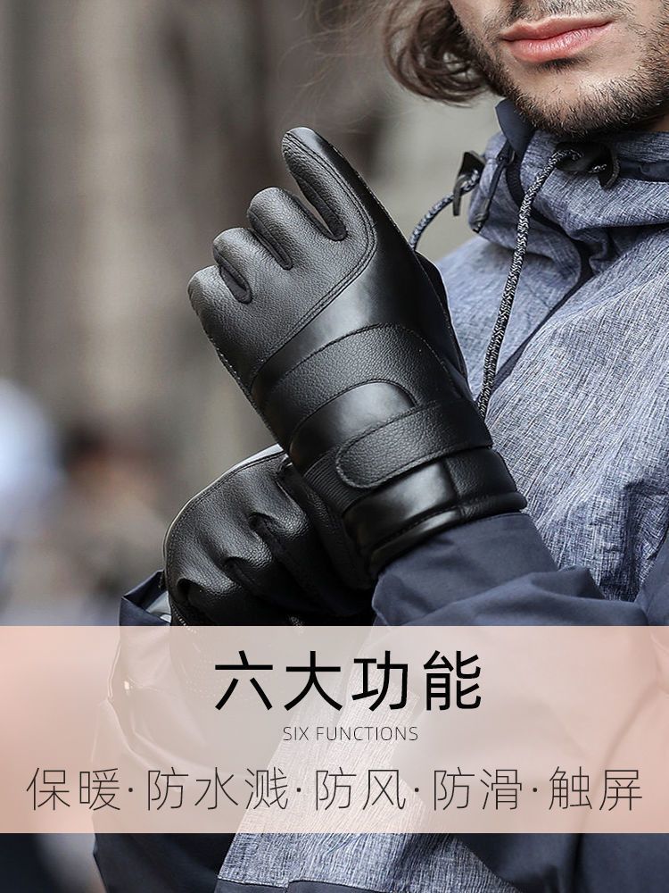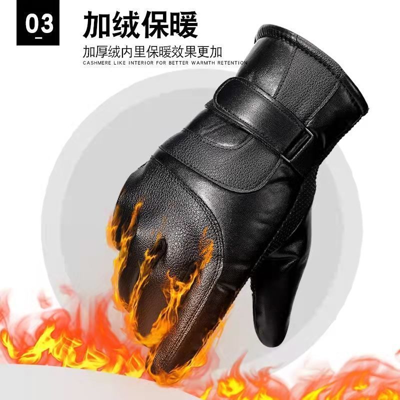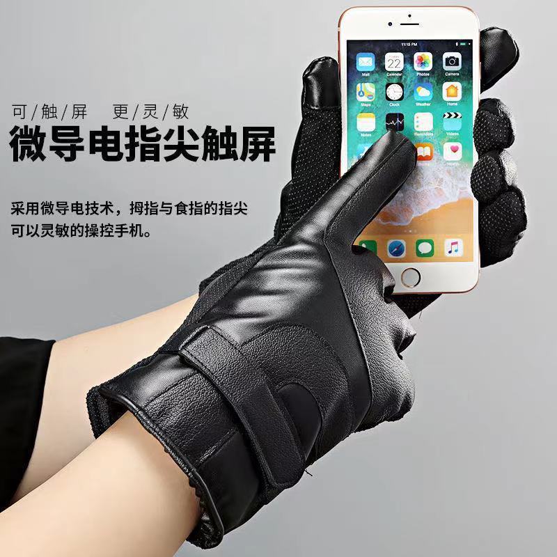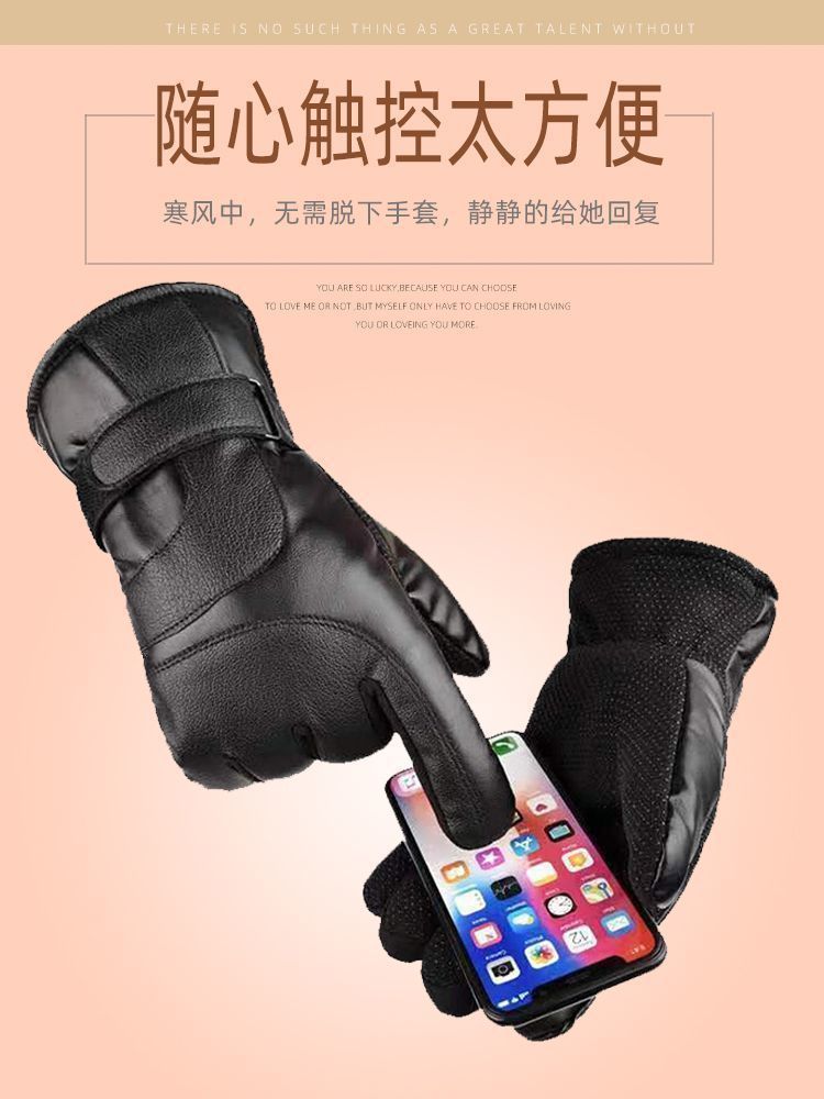 【可以灵敏的操控手机!加绒保暖手套】皮手套男士冬季户外骑行摩托车防风防寒保暖加绒冬天触屏加厚手套。ry