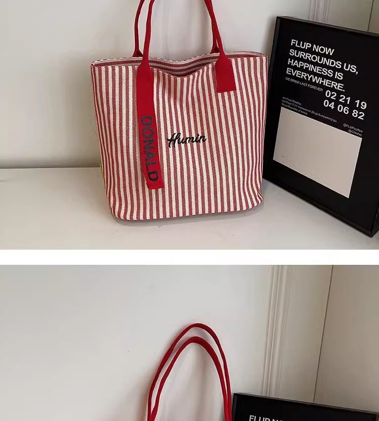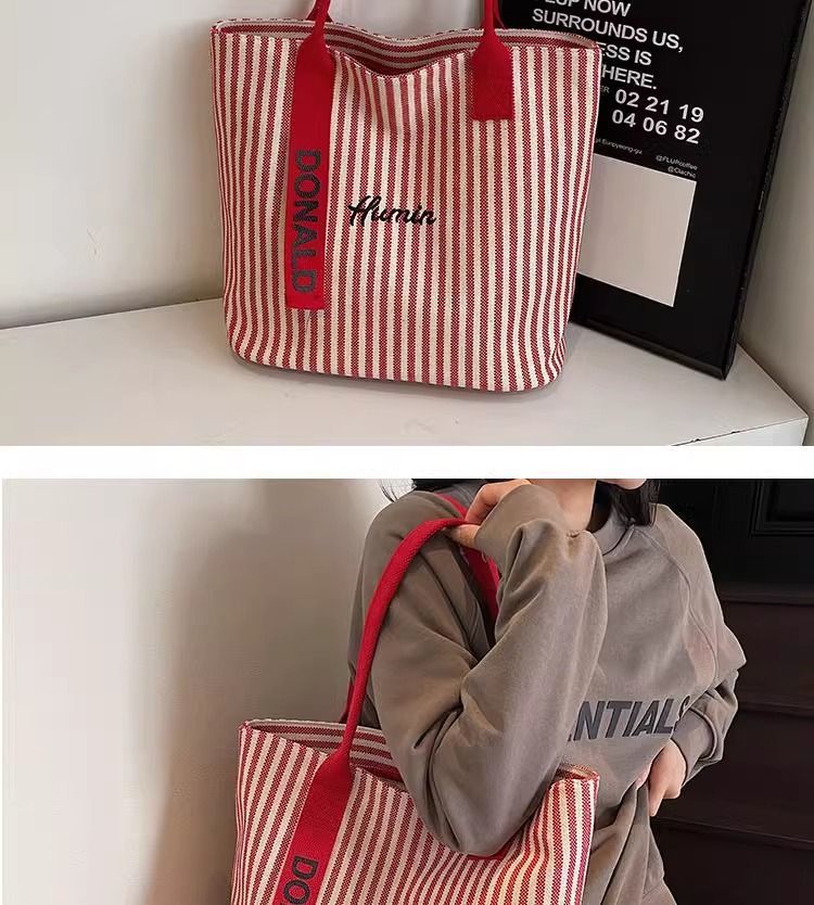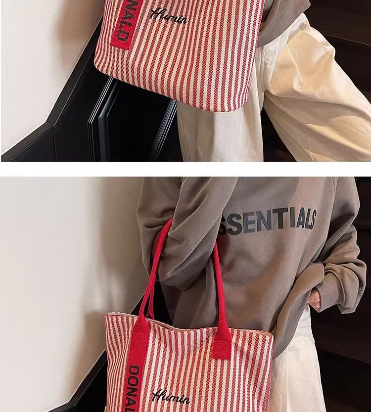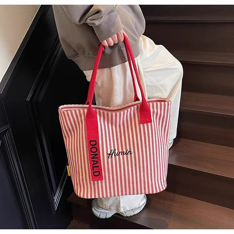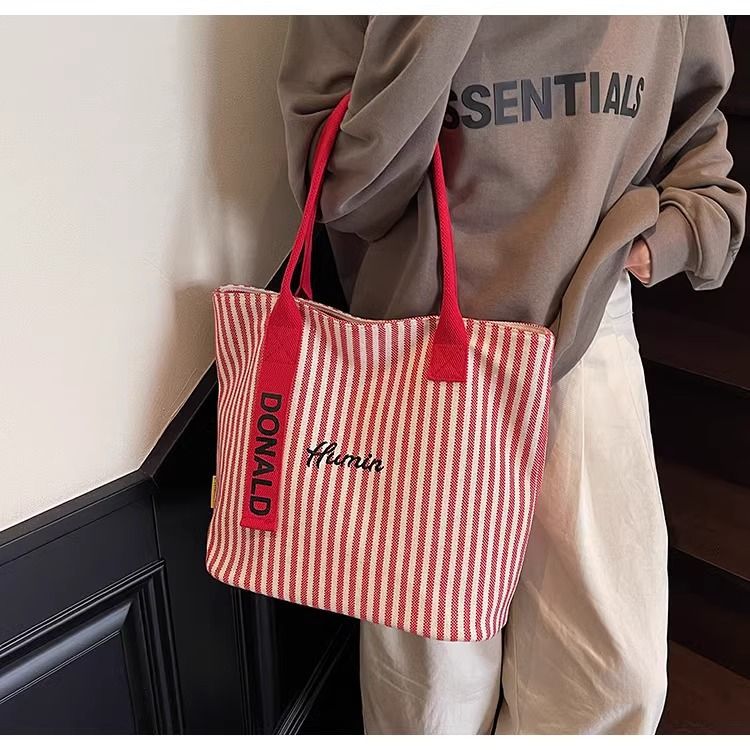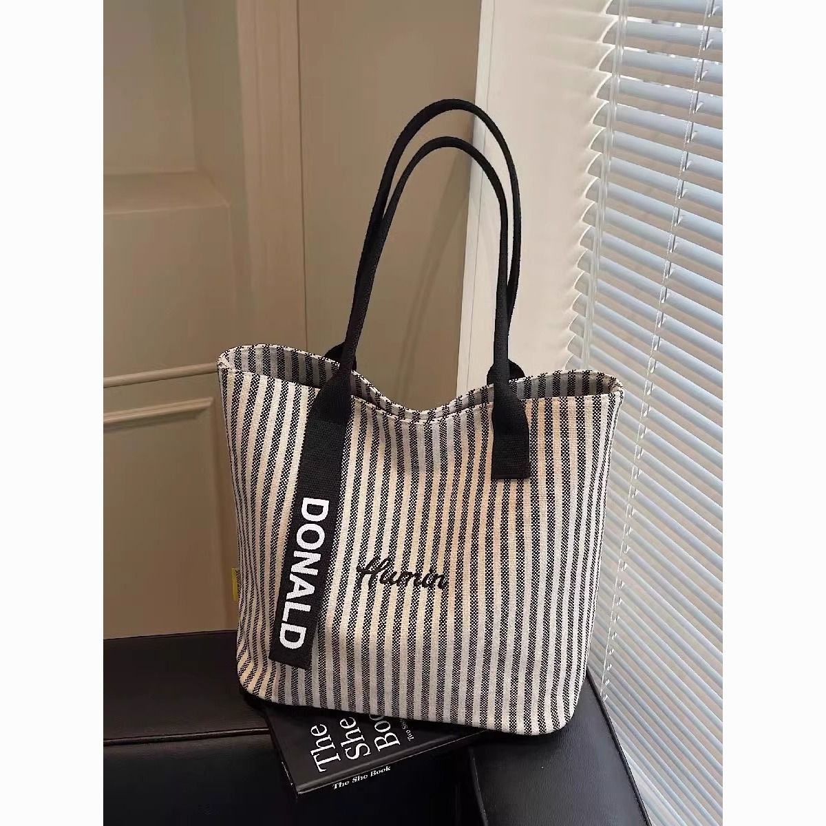 【百搭休闲】大容量帆布包包女百搭条纹单肩包学生上课通勤手提托特包。ya