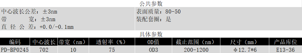 BP702/10K OD3@200-1200 T>75% Φ12.7*6 带通滤光片 (带套圈)