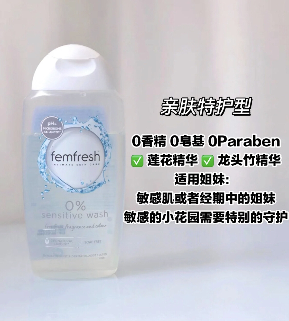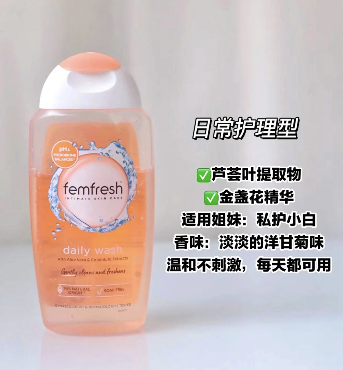我称它为女性洗液,老黑称它是男性洗液,他说洗完特爽,不用不好意思哈,注重生理卫生太正常了。femfresh女性洗液,特39,洁尔阴没的比,没有激素,没有药物,不要相信只用清水就能干净的傻话,密闭不见阳光的地方,潮湿,只用清水能洗干净吗?简单的例子,我们的手,只用清水能洗掉细菌吗?这系列孕妇,少女,妇女,老女人都可以用!纯天然无激素,无药物,无依赖性。国内那些药物洗液可以撤了