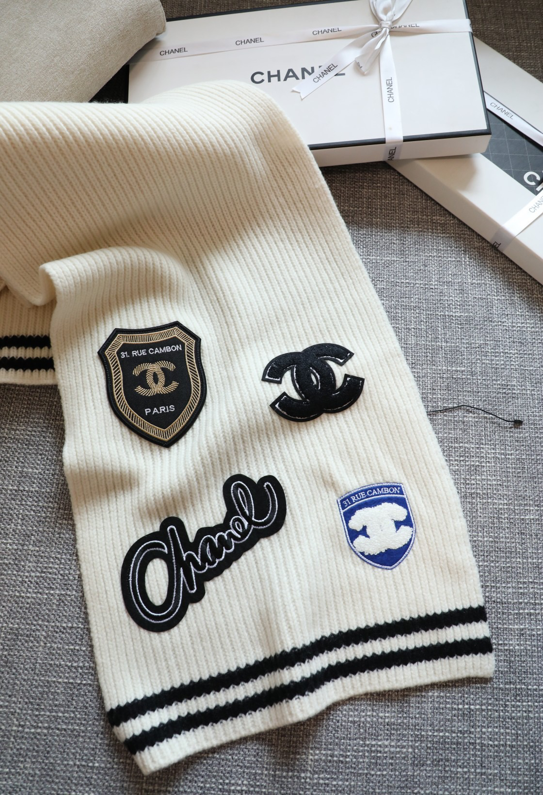 秋冬特惠💰190 香奈儿围巾 小香印章针织围巾 精致的各类徽章