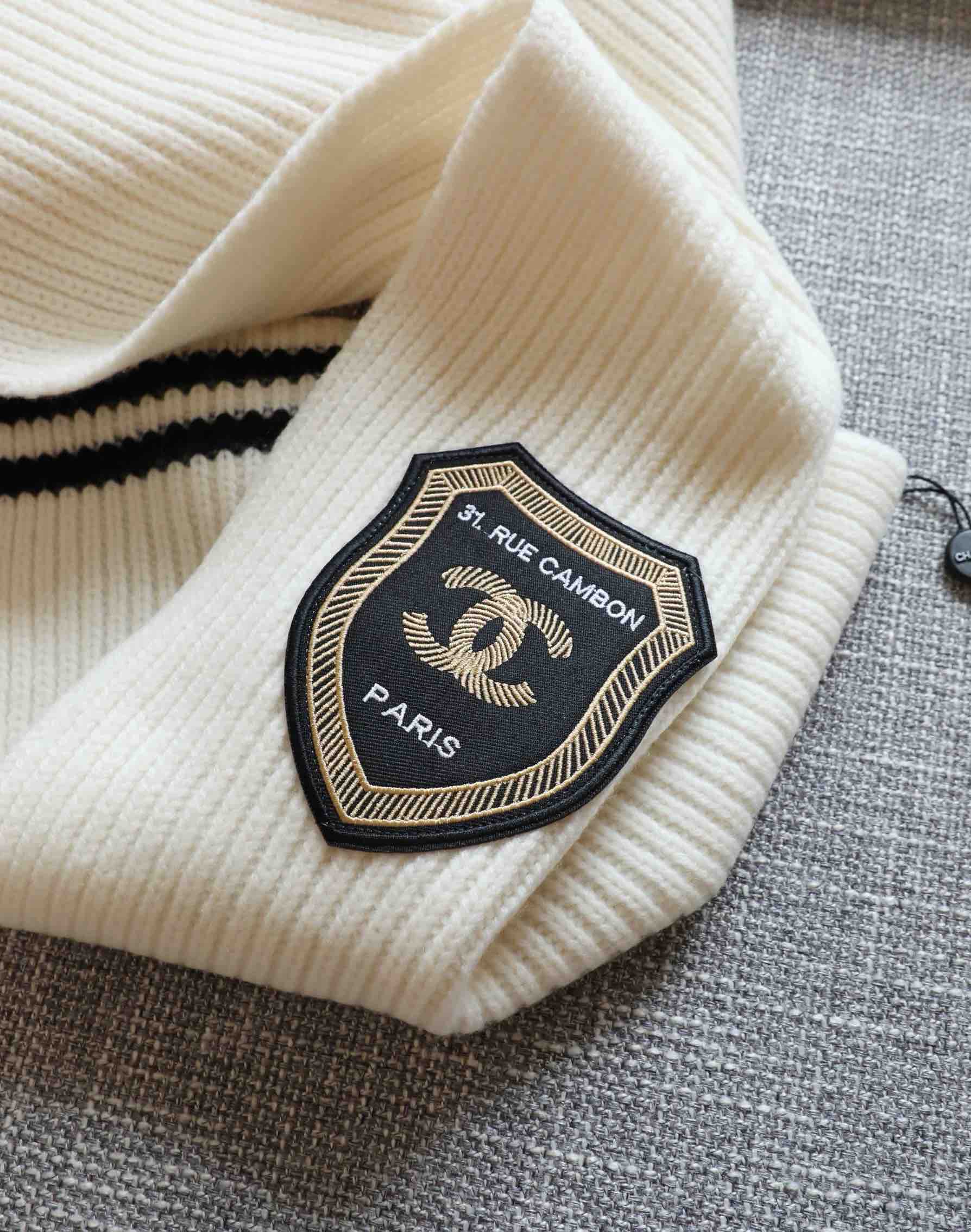 秋冬特惠💰190 香奈儿围巾 小香印章针织围巾 精致的各类徽章 条纹边螺纹收口 针织羊绒面料 手感舒适 蓬松度高 英伦学院风 年轻人首选 双色可情侣搭配 规格:30*180cm