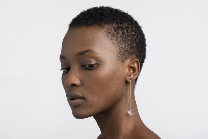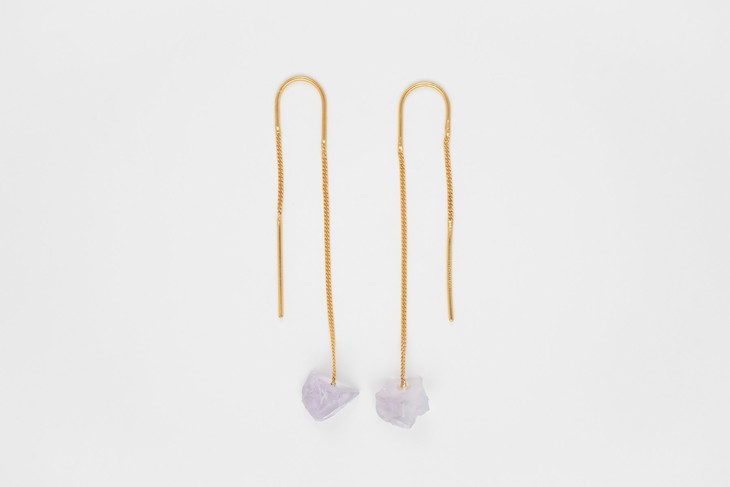 材质:Earpieces in 925 silver with 18k gold plating and rough Lavender Quartz.