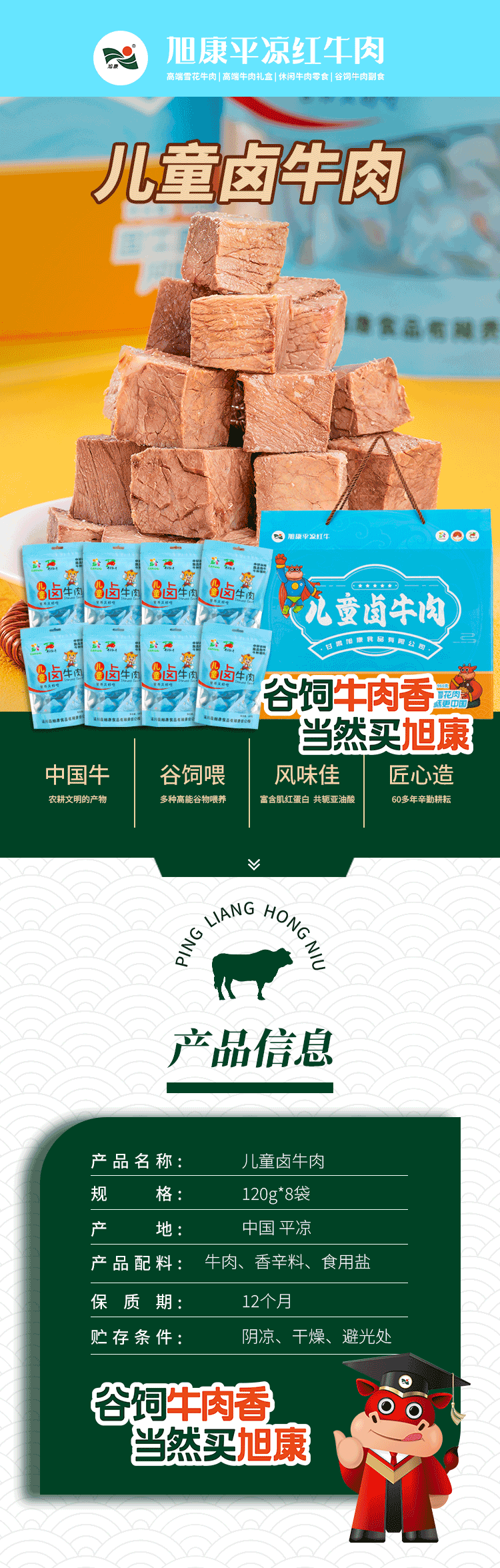【平凉红牛泾川馆】旭康真空熟食儿童卤牛肉礼盒装120g*8袋包邮