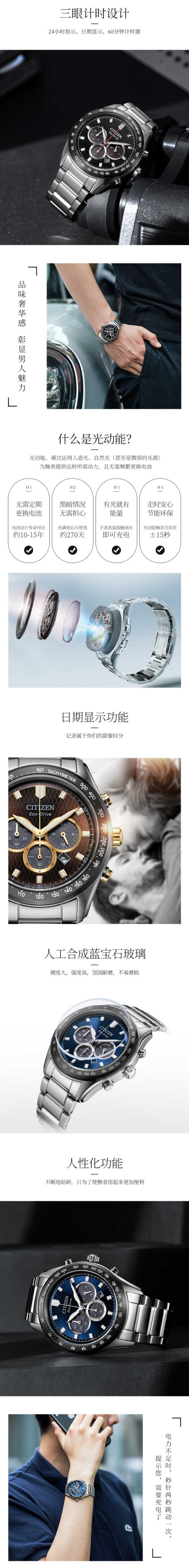 西铁城日本官方正品光动能时尚潮流不锈钢表带防水男表CA4454-89E