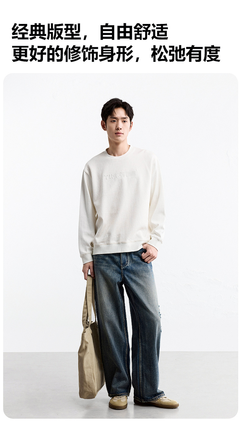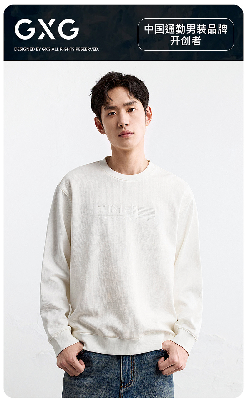 GXG男装25秋季简约纯色百搭运动休闲日常通勤宽松男式圆领卫衣K&C