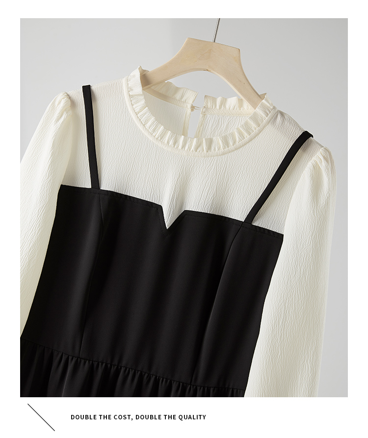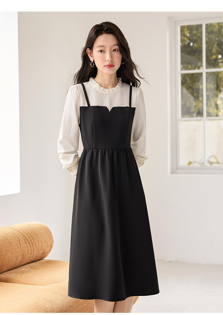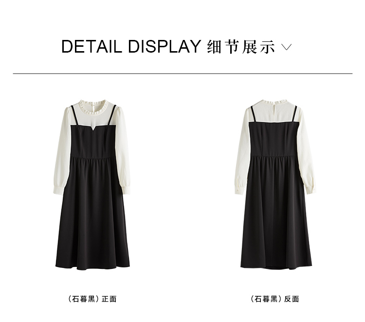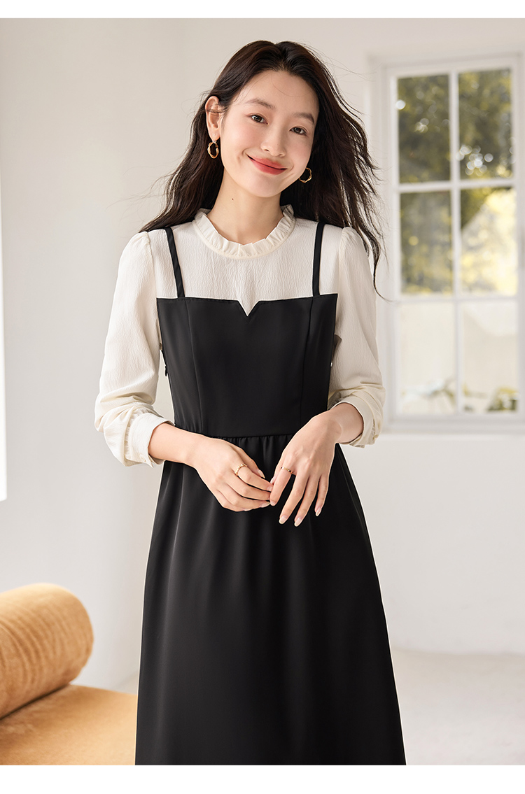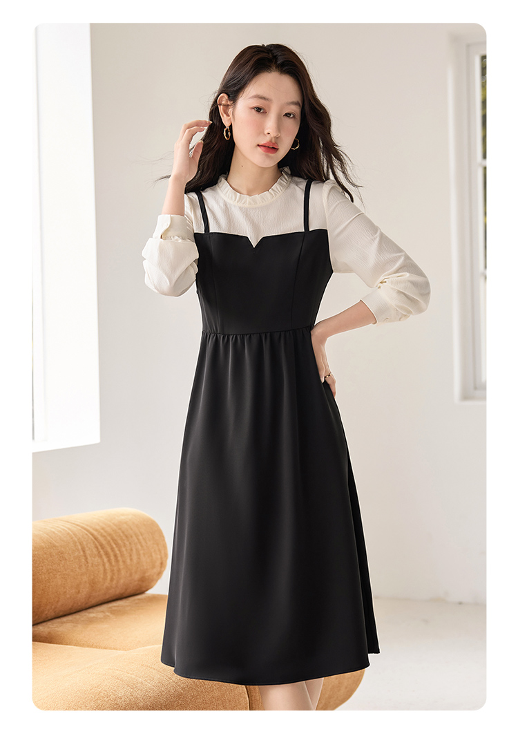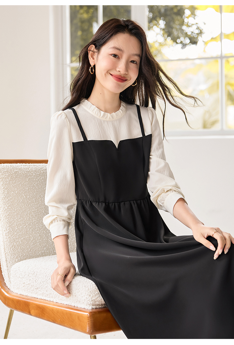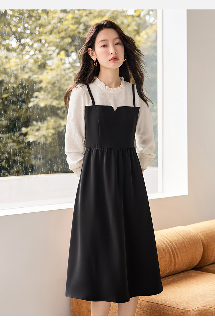 【年终特卖】熙世界拼接假两件连衣裙2025年秋季新款优雅气质减龄显瘦小黑裙