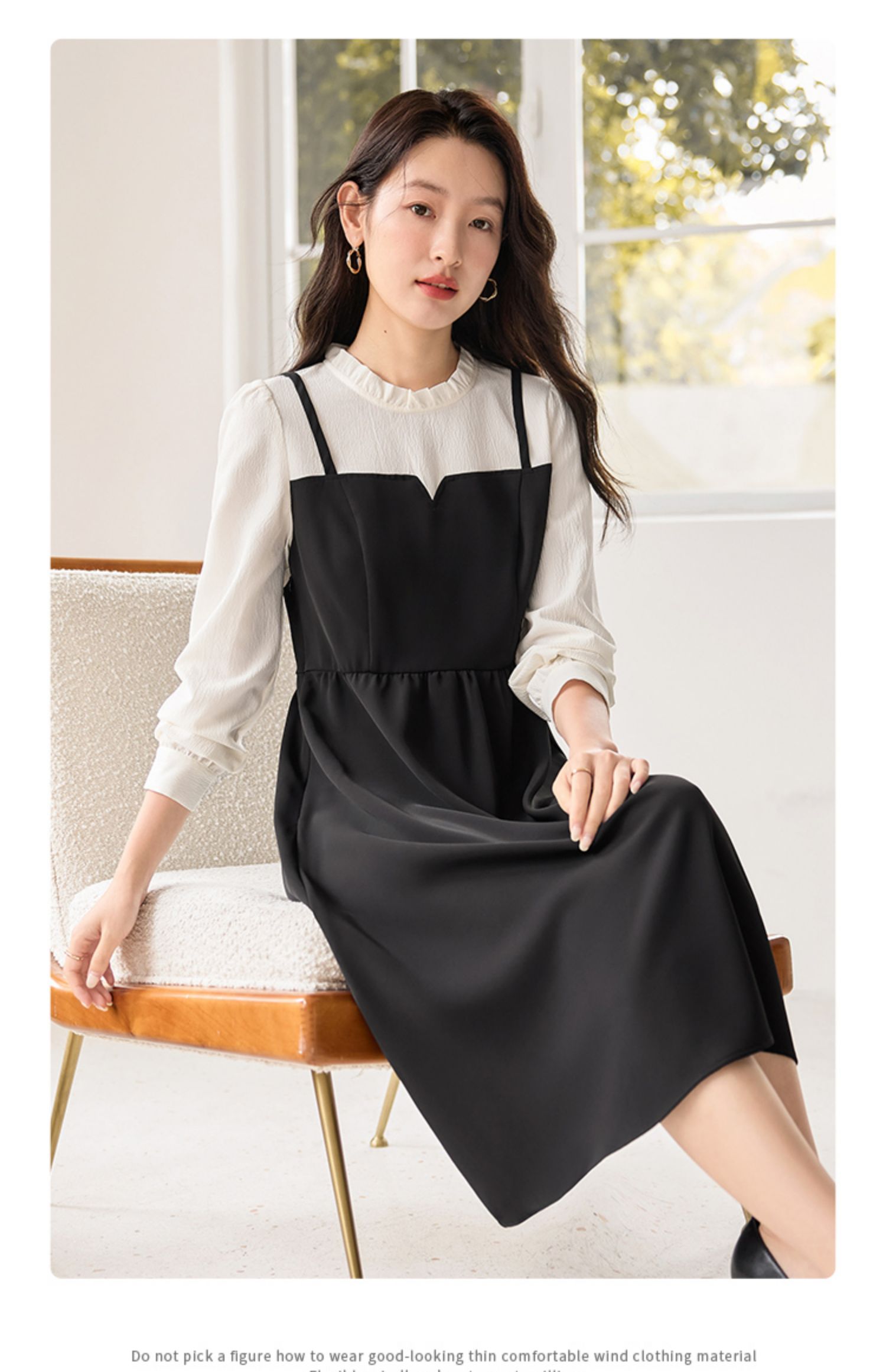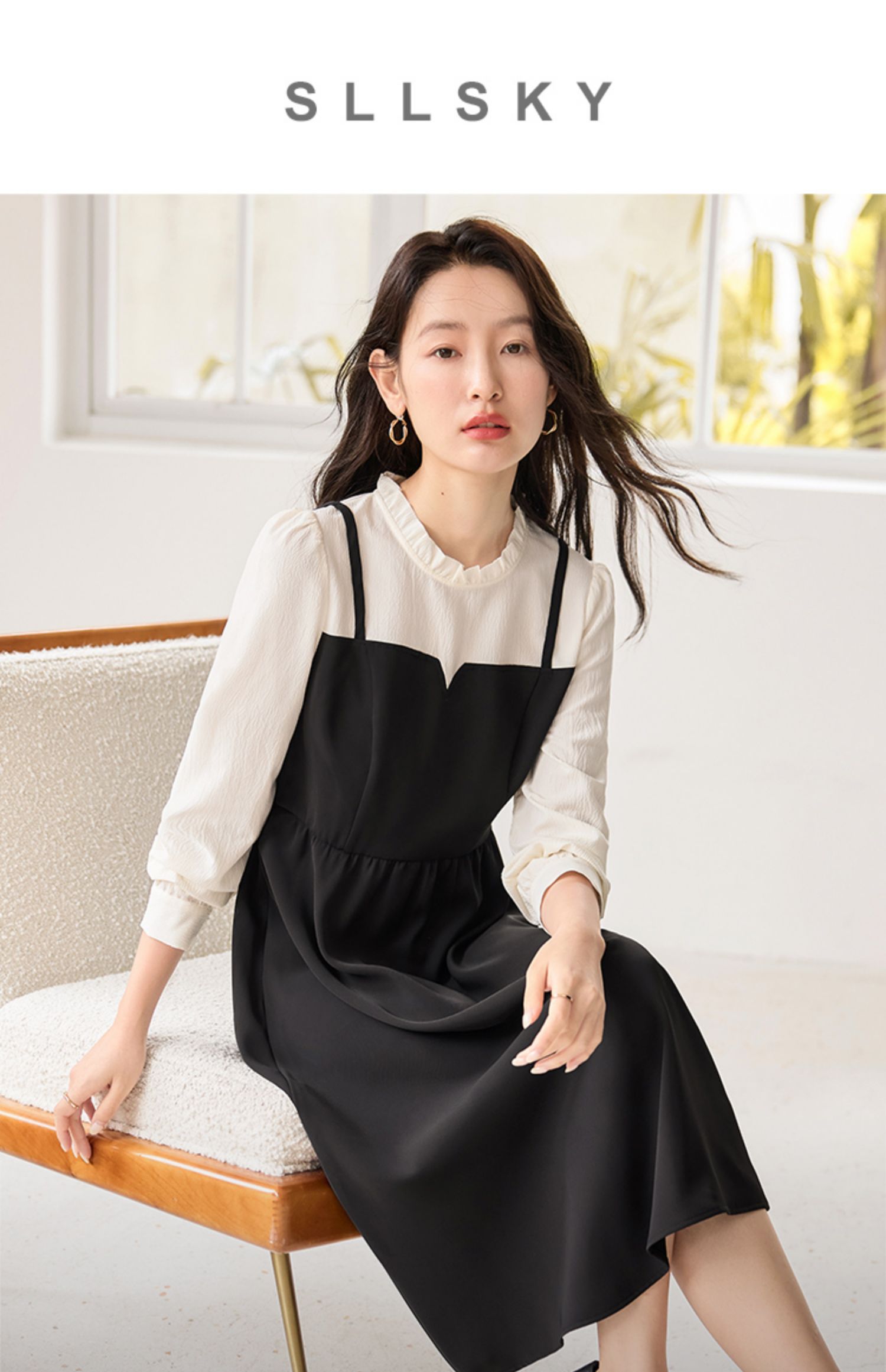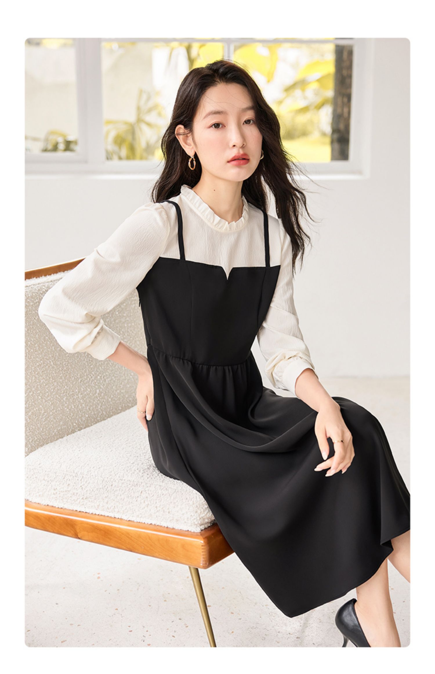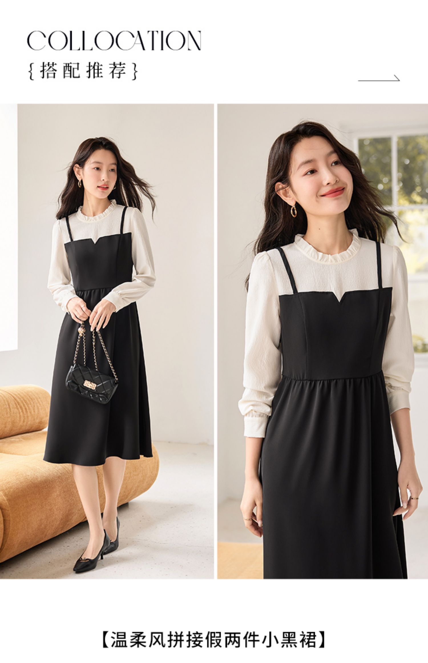【年终特卖】熙世界拼接假两件连衣裙2025年秋季新款优雅气质减龄显瘦小黑裙
