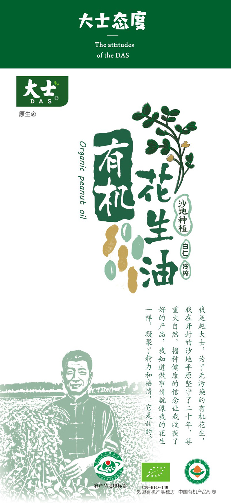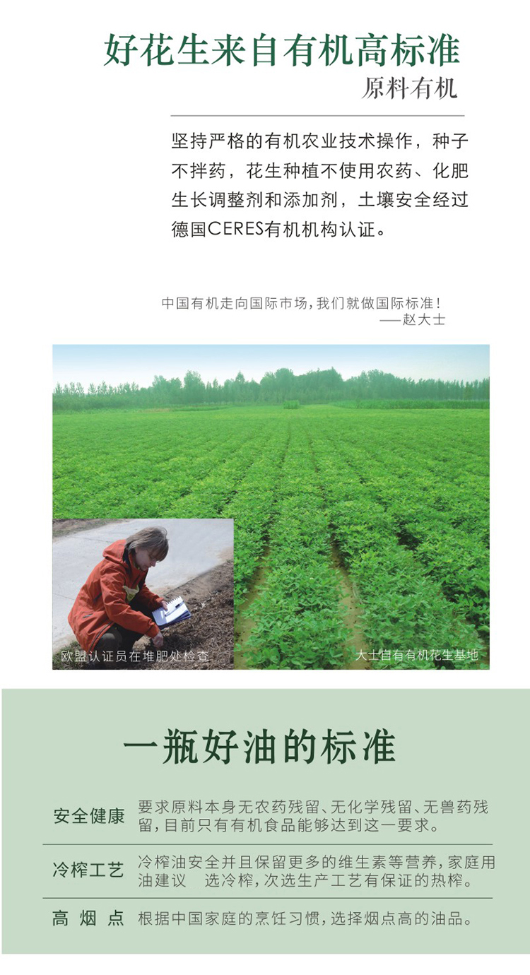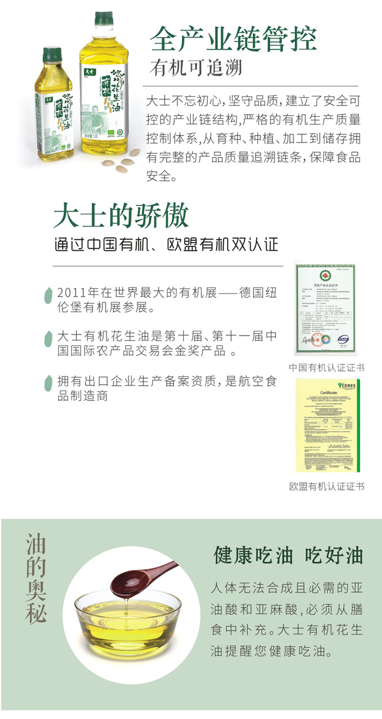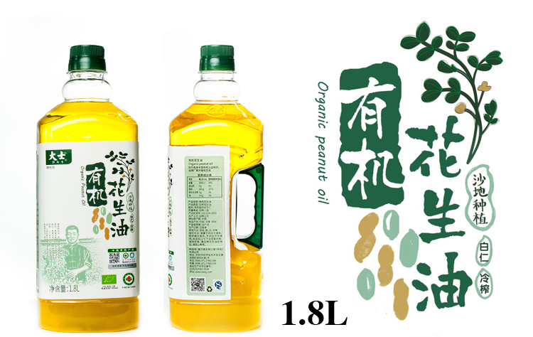 【河南·有机花生油】大士有机花生油1.8L冷榨工艺原食用浓香家用炒菜植物油小瓶