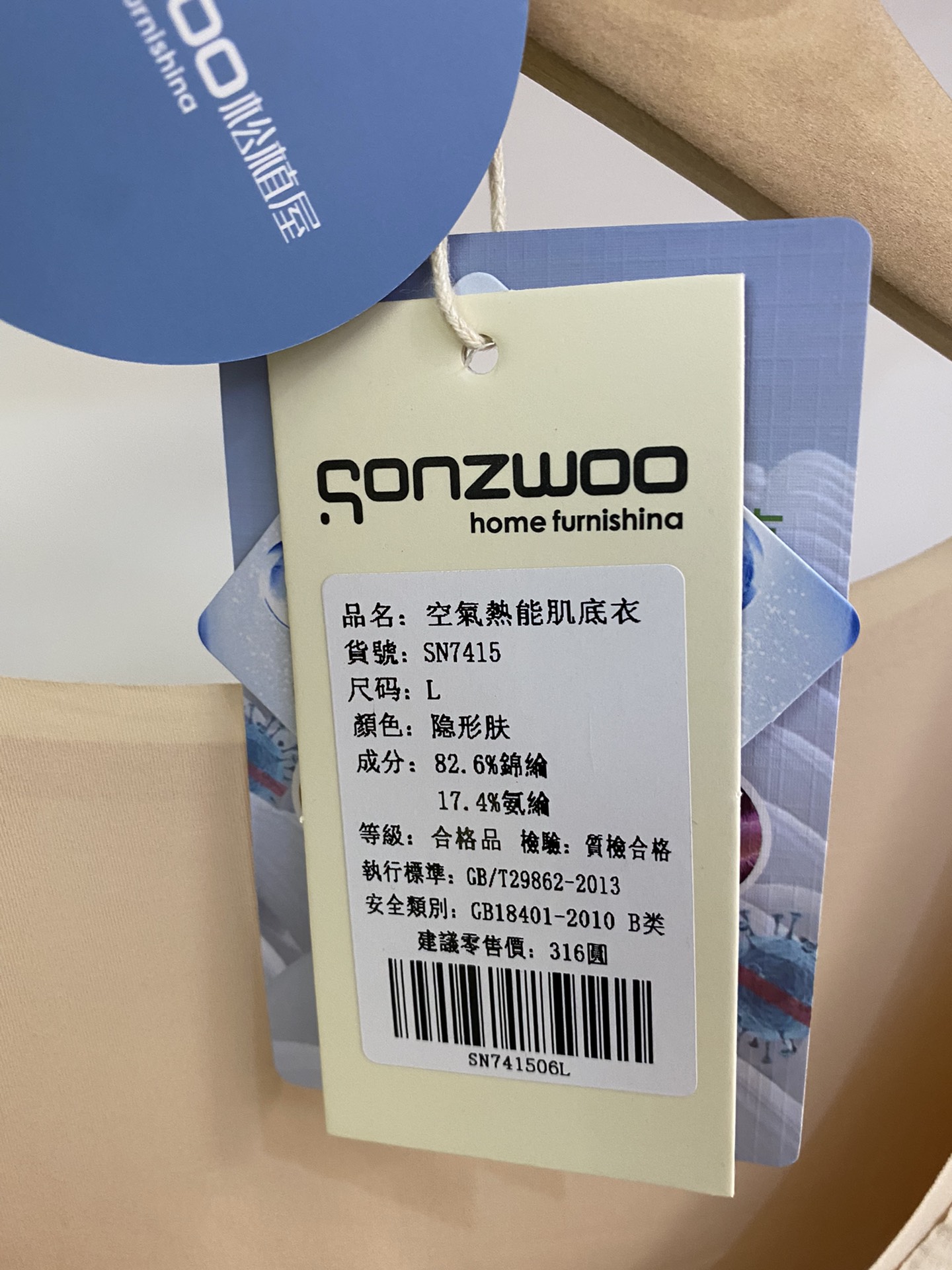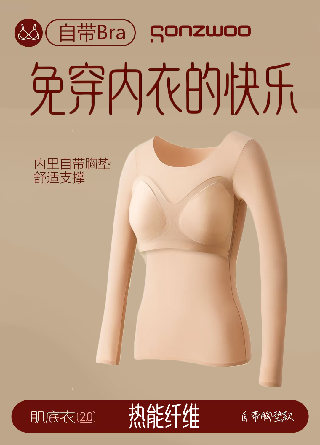 松植屋空气热能基底衣、7A级抗菌、自带罩杯、高弹舒适,贴身不紧绷,不易变形
