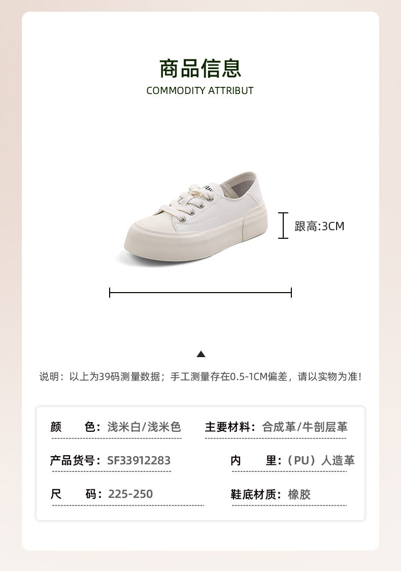超值精选 | Safiya/索菲娅2023春夏圆头浅口透气厚底百搭休闲板鞋 SF33912283