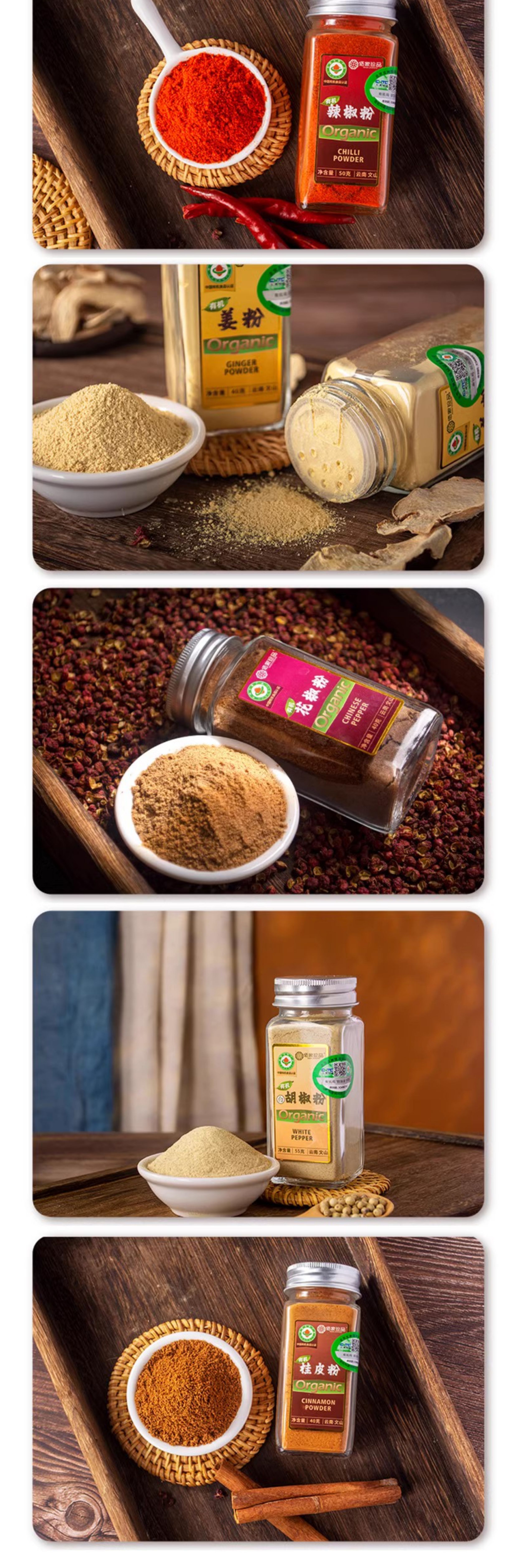 有机白胡椒粉 八角粉 桂皮粉 辣椒粉 花椒粉 椒盐粉 五香粉 姜粉 烧烤家庭调料小瓶 来自云南文山佰家珍品