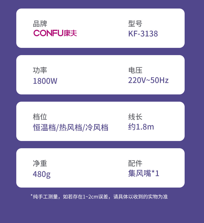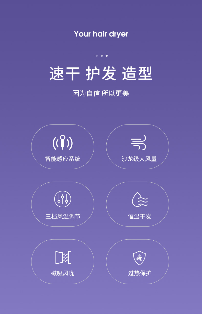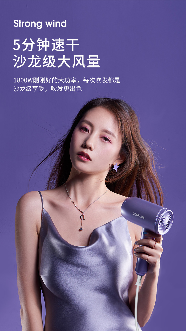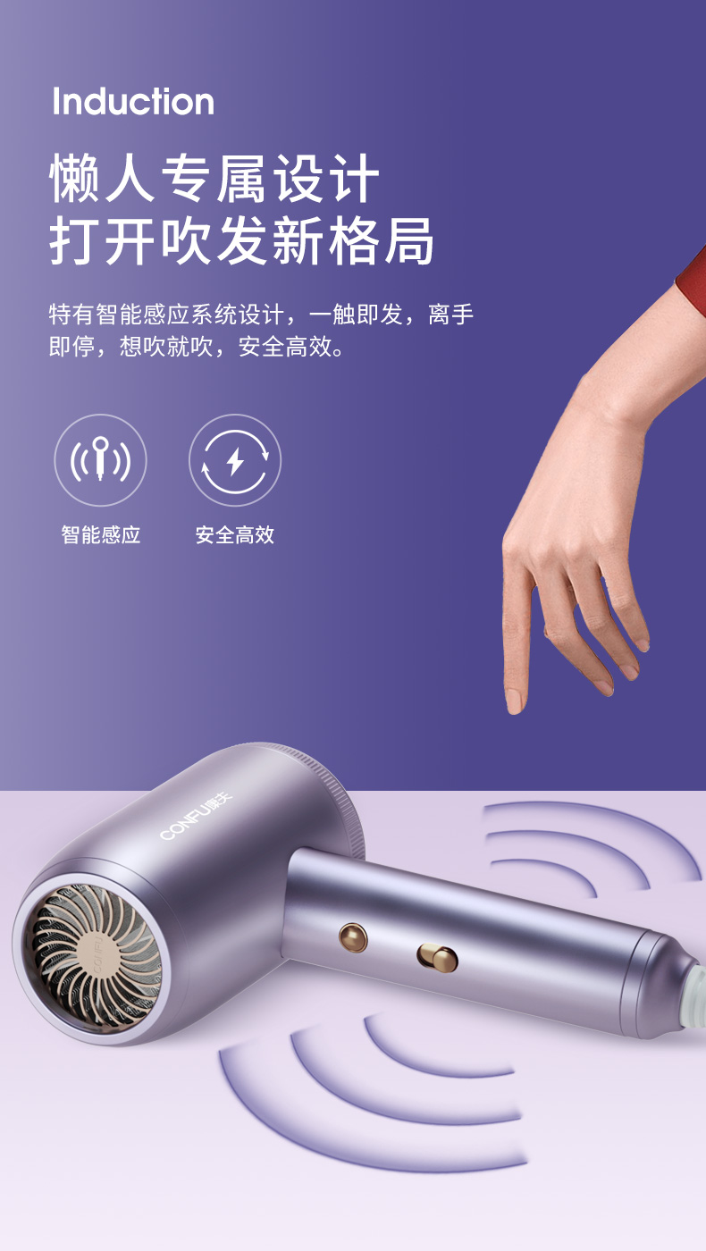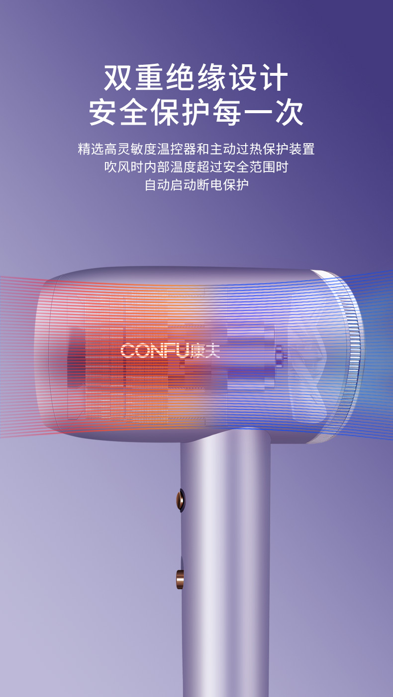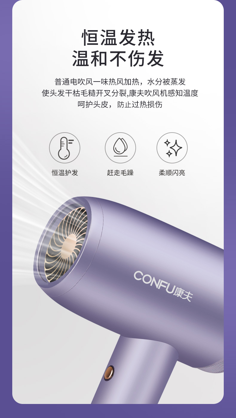 康夫电吹风机家用冷热风恒温护发不伤发静音大风力智能感应吹风筒