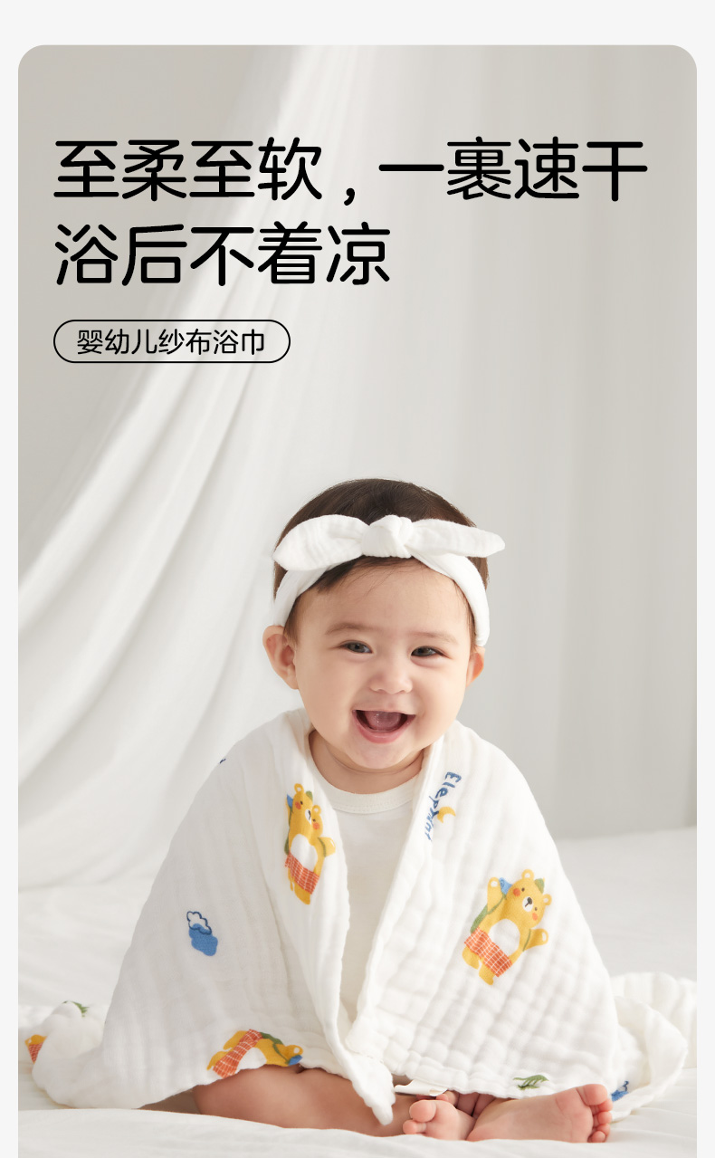 婴儿纱布浴巾新生超软全棉洗澡专用初生宝宝大毛巾速干