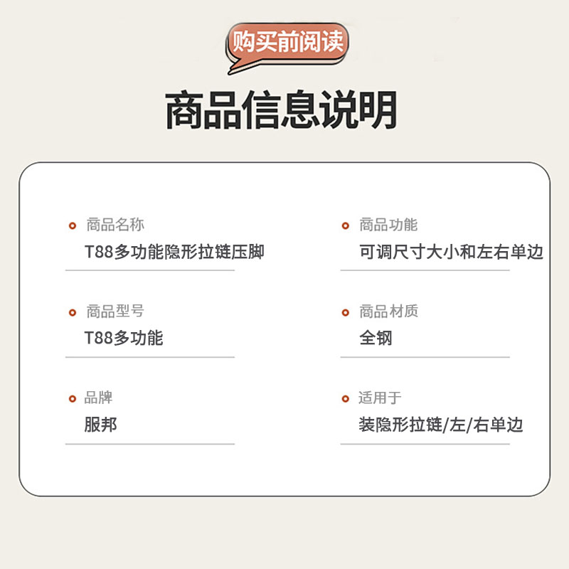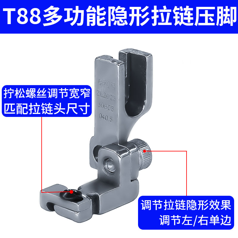 缝纫机新款T88可调多功能隐形拉链压脚左单边/右单边电脑平车