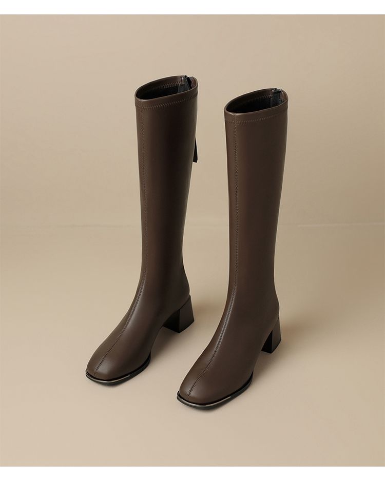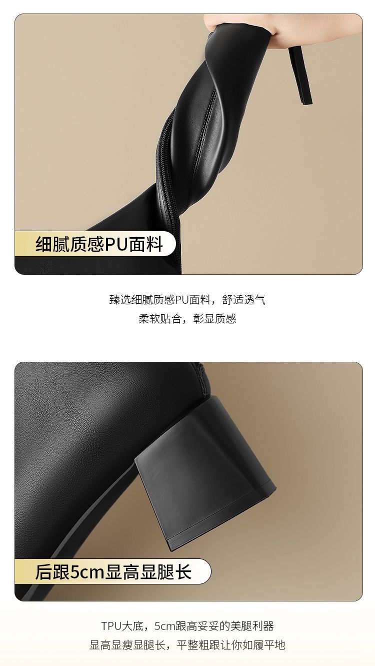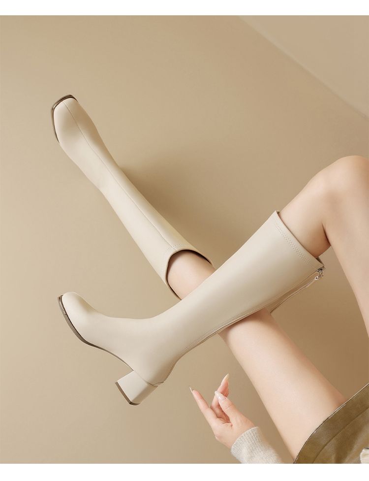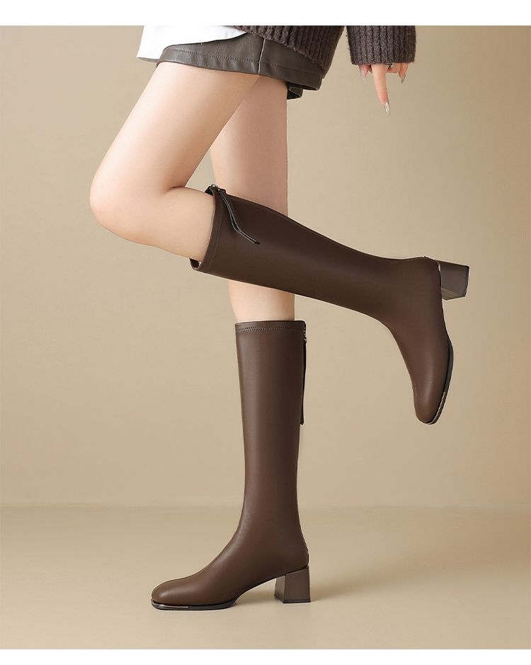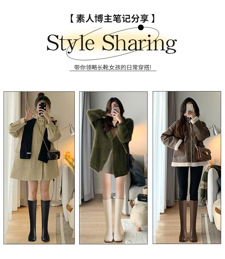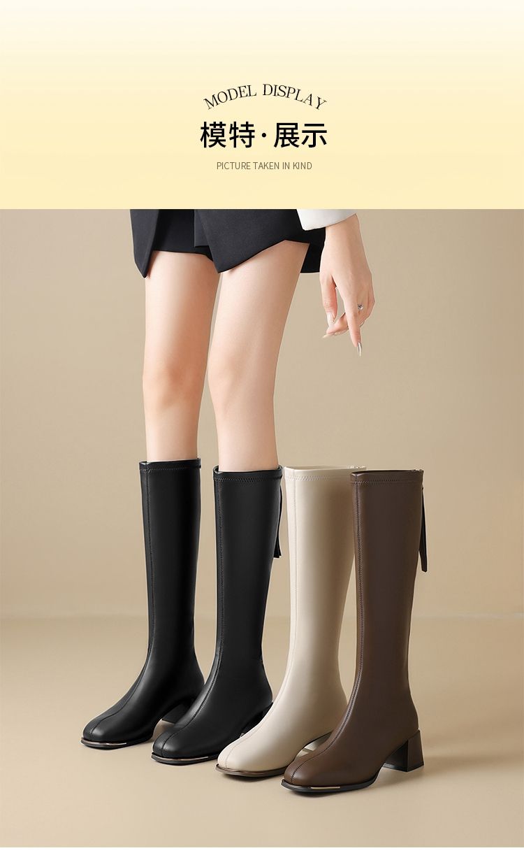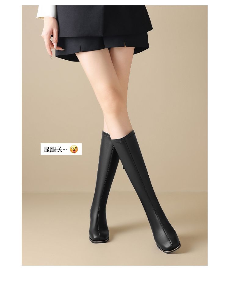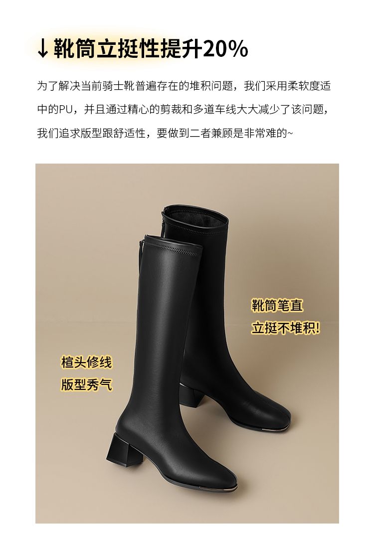 ZHR长筒靴女靴2024秋冬新款不过膝显瘦高筒靴小个子英伦骑士靴