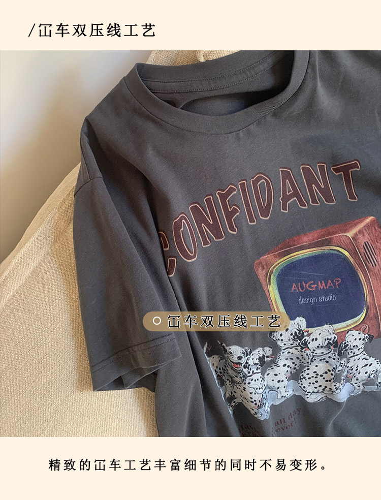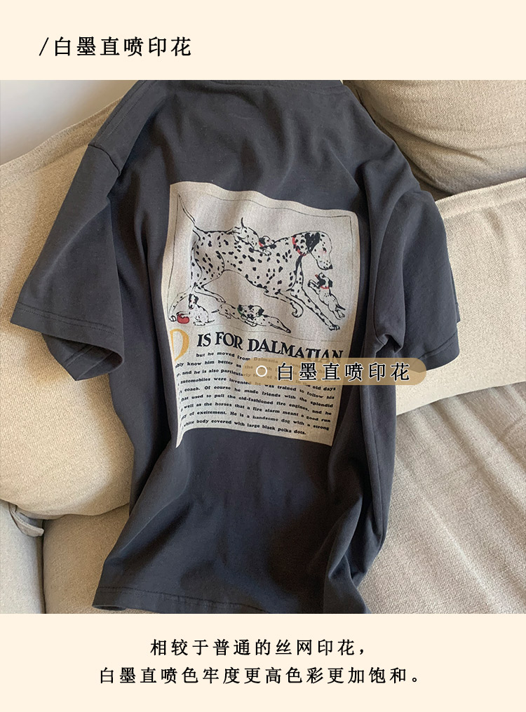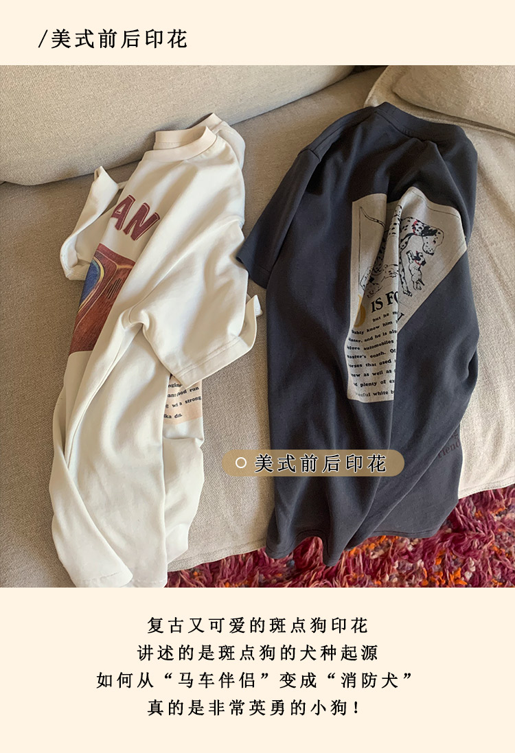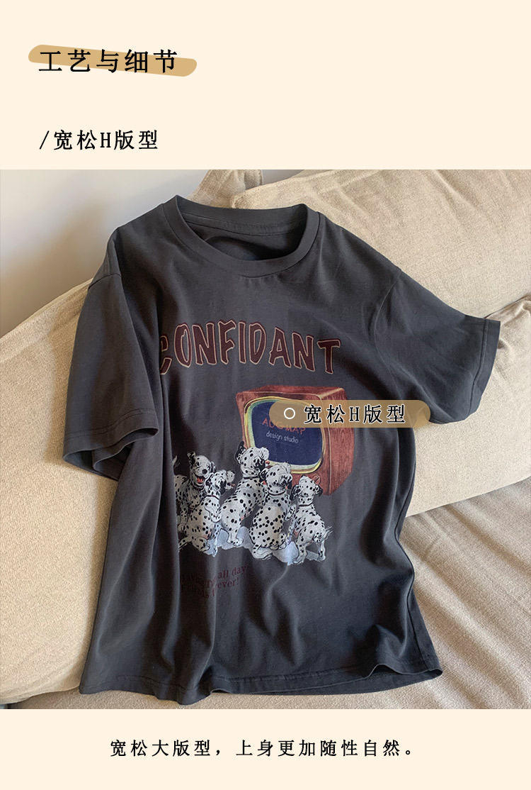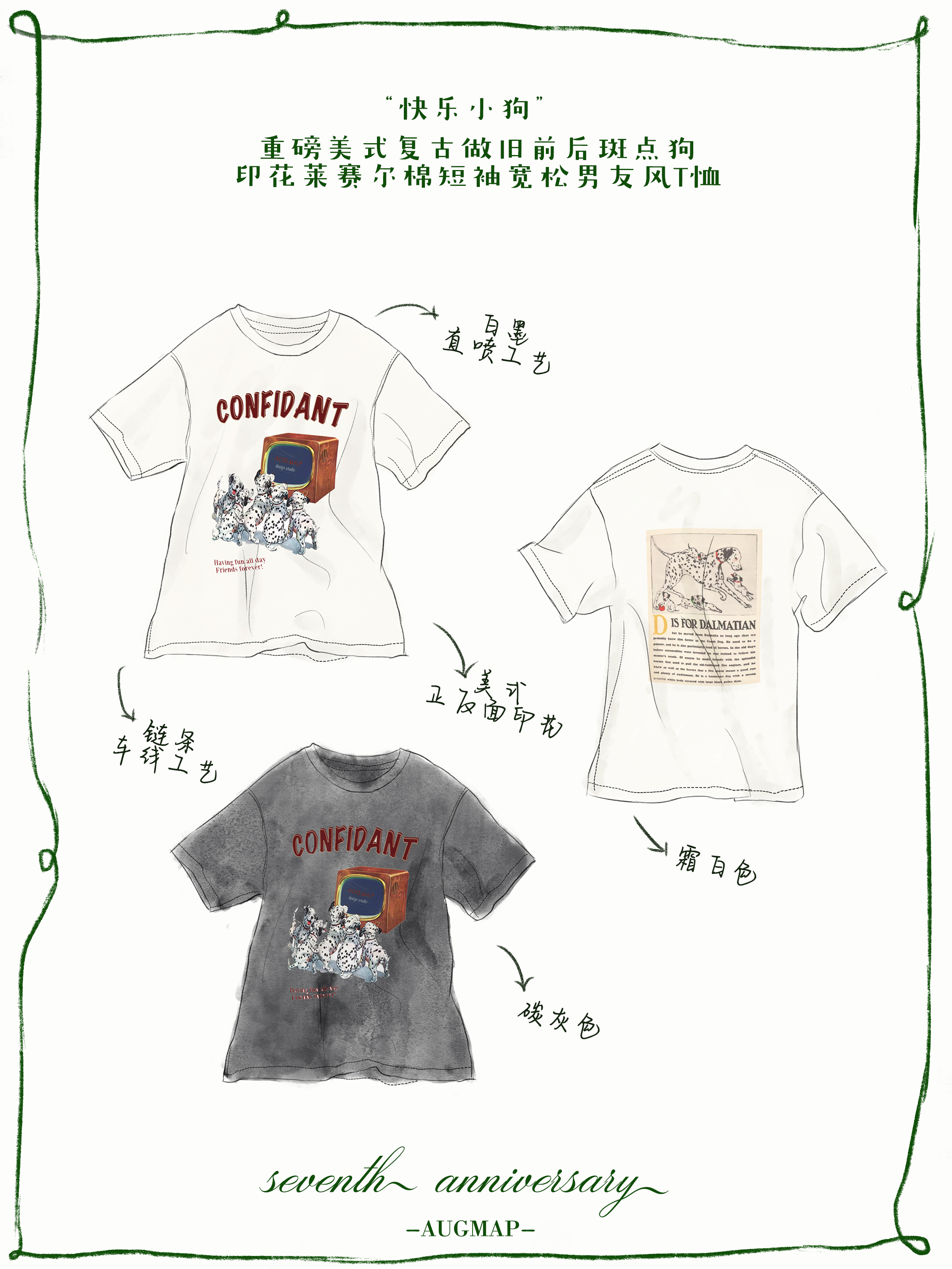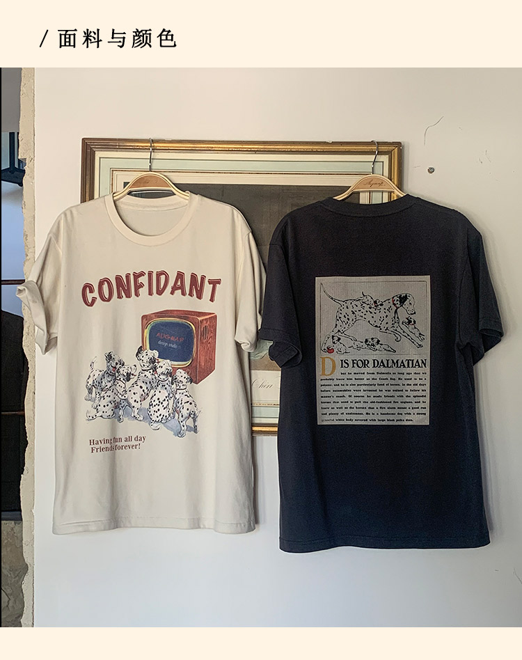 浮生八记/25C121/“快乐小狗”美式复古做旧斑点狗T恤