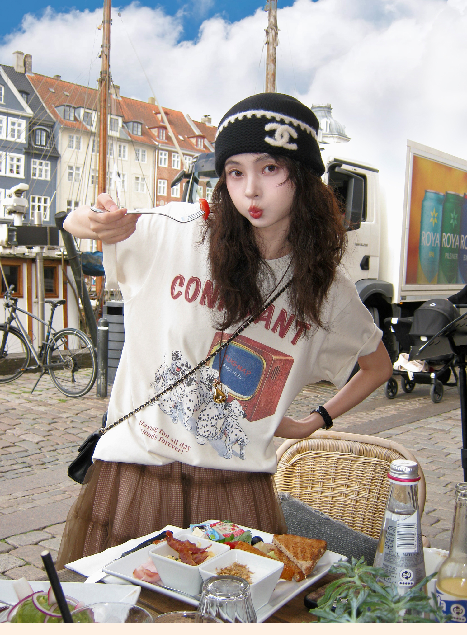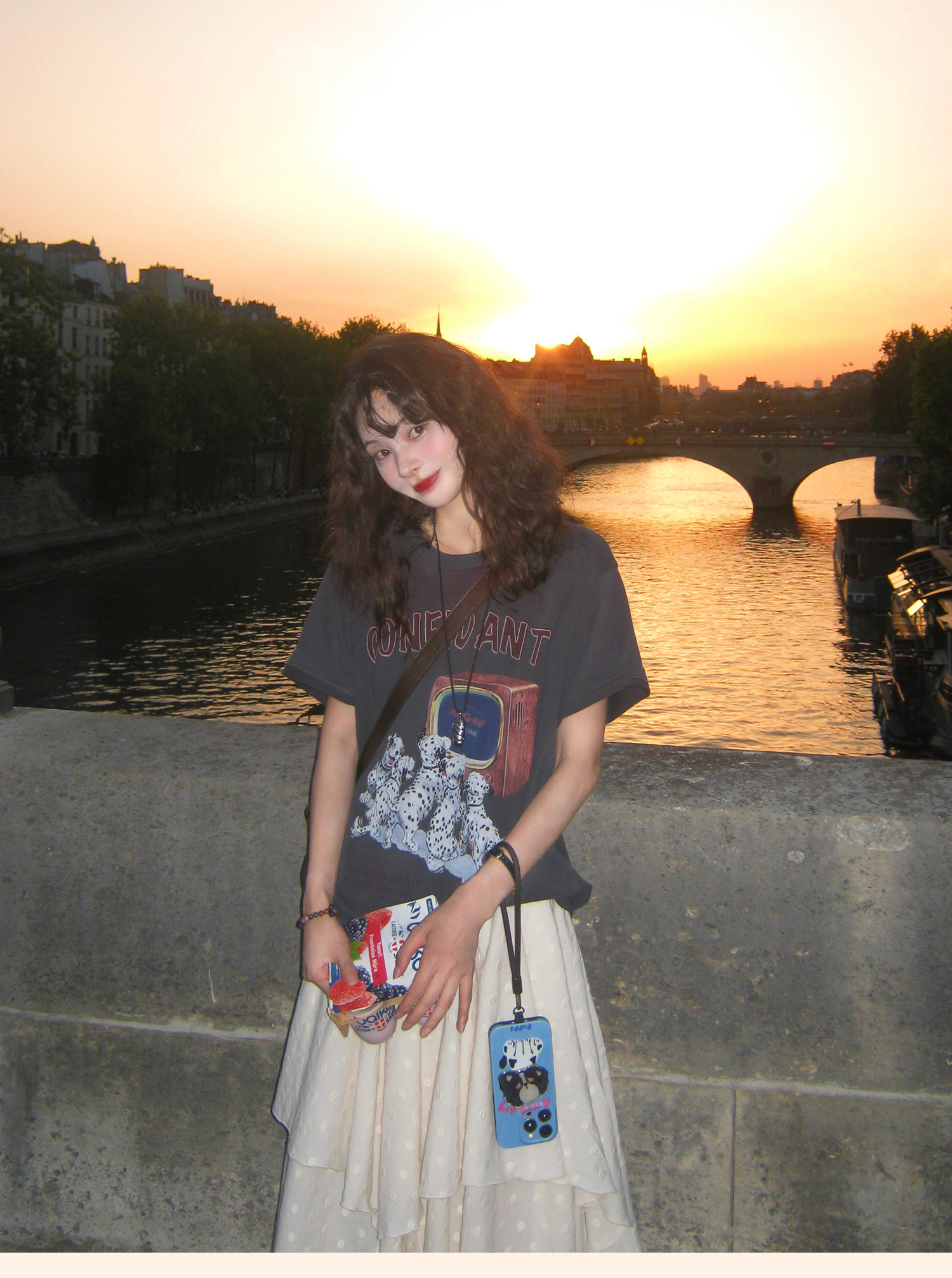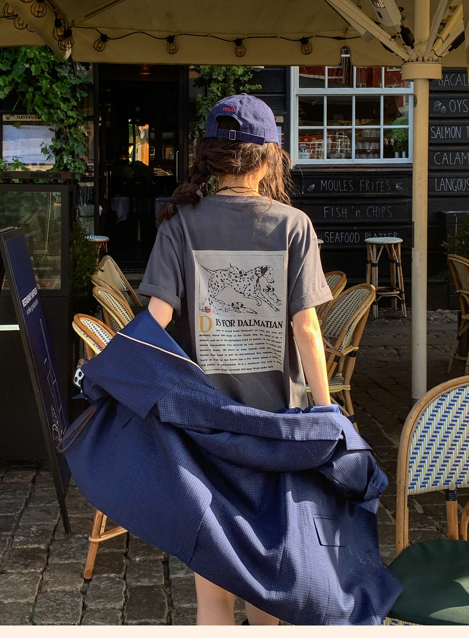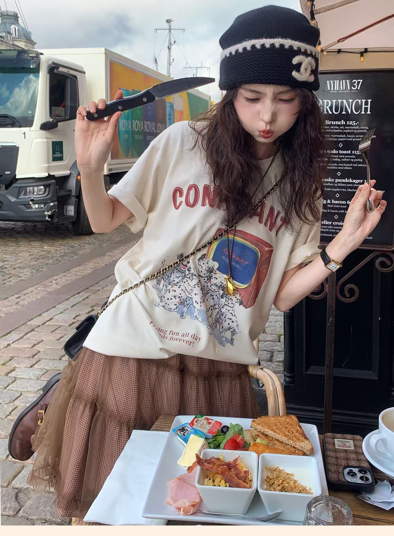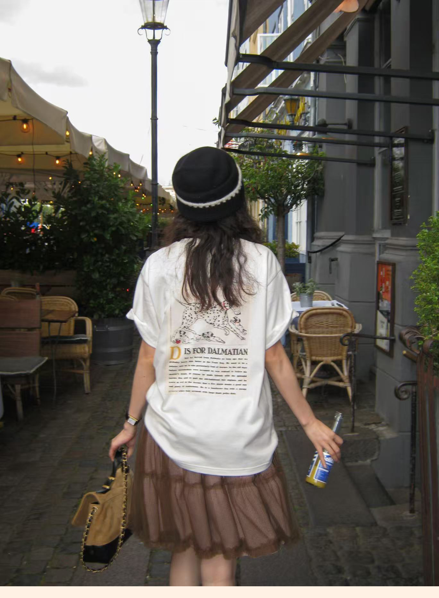 浮生八记/25C121/“快乐小狗”美式复古做旧斑点狗T恤