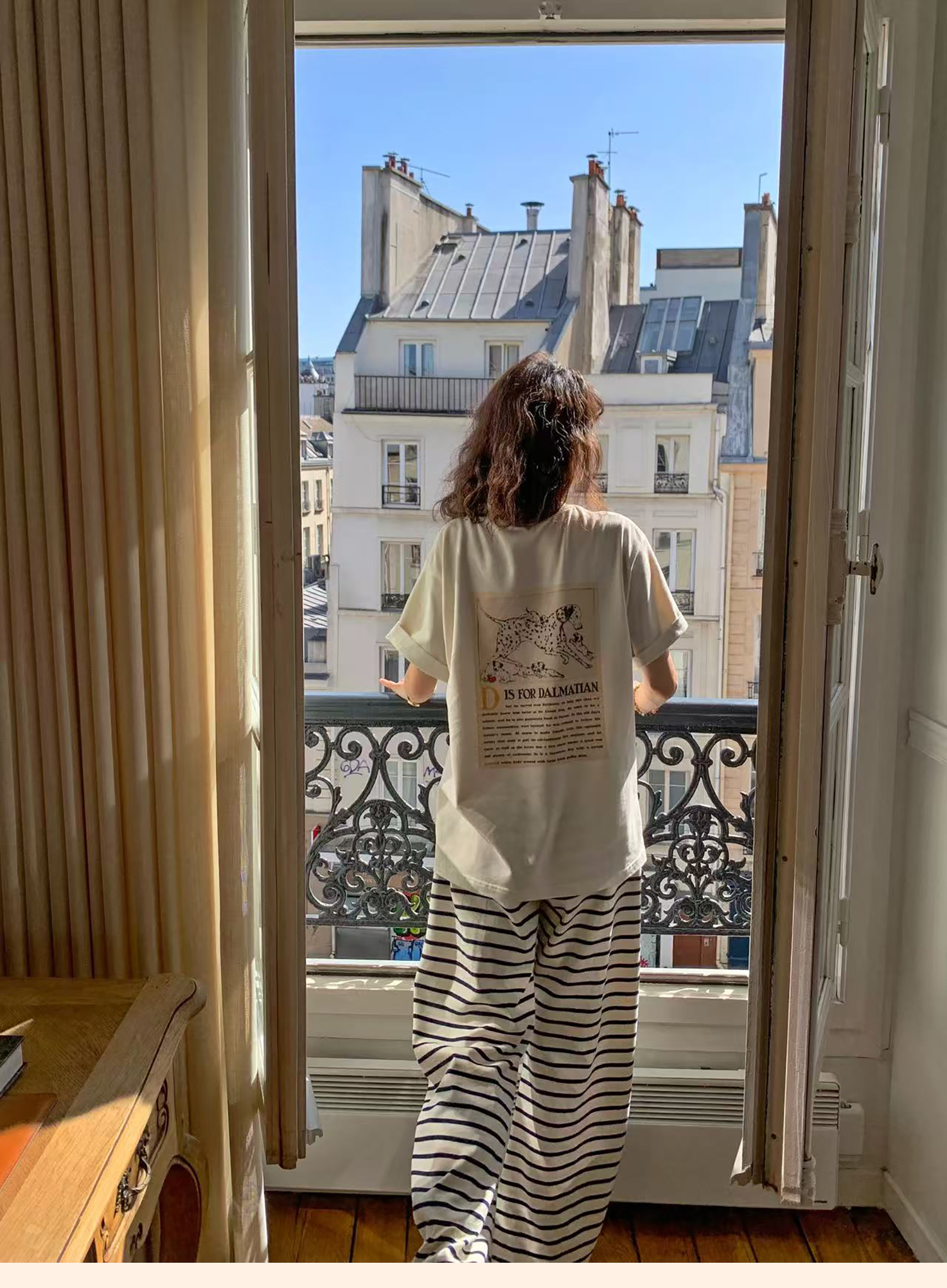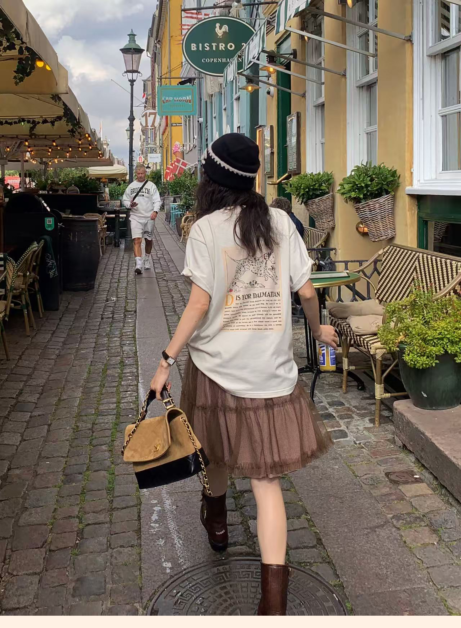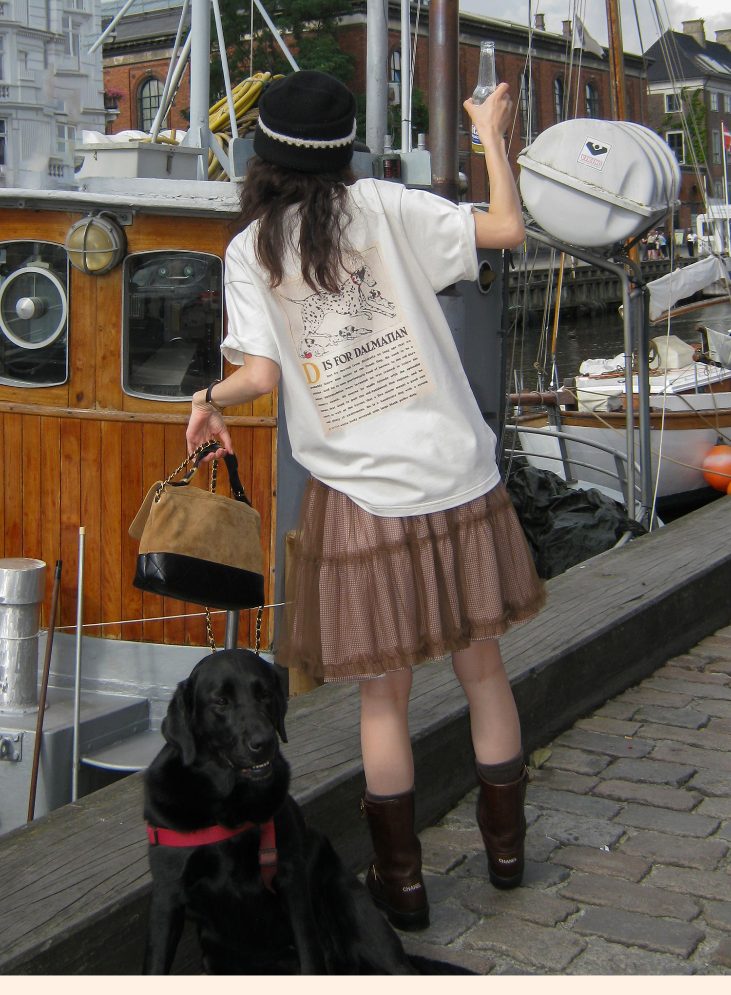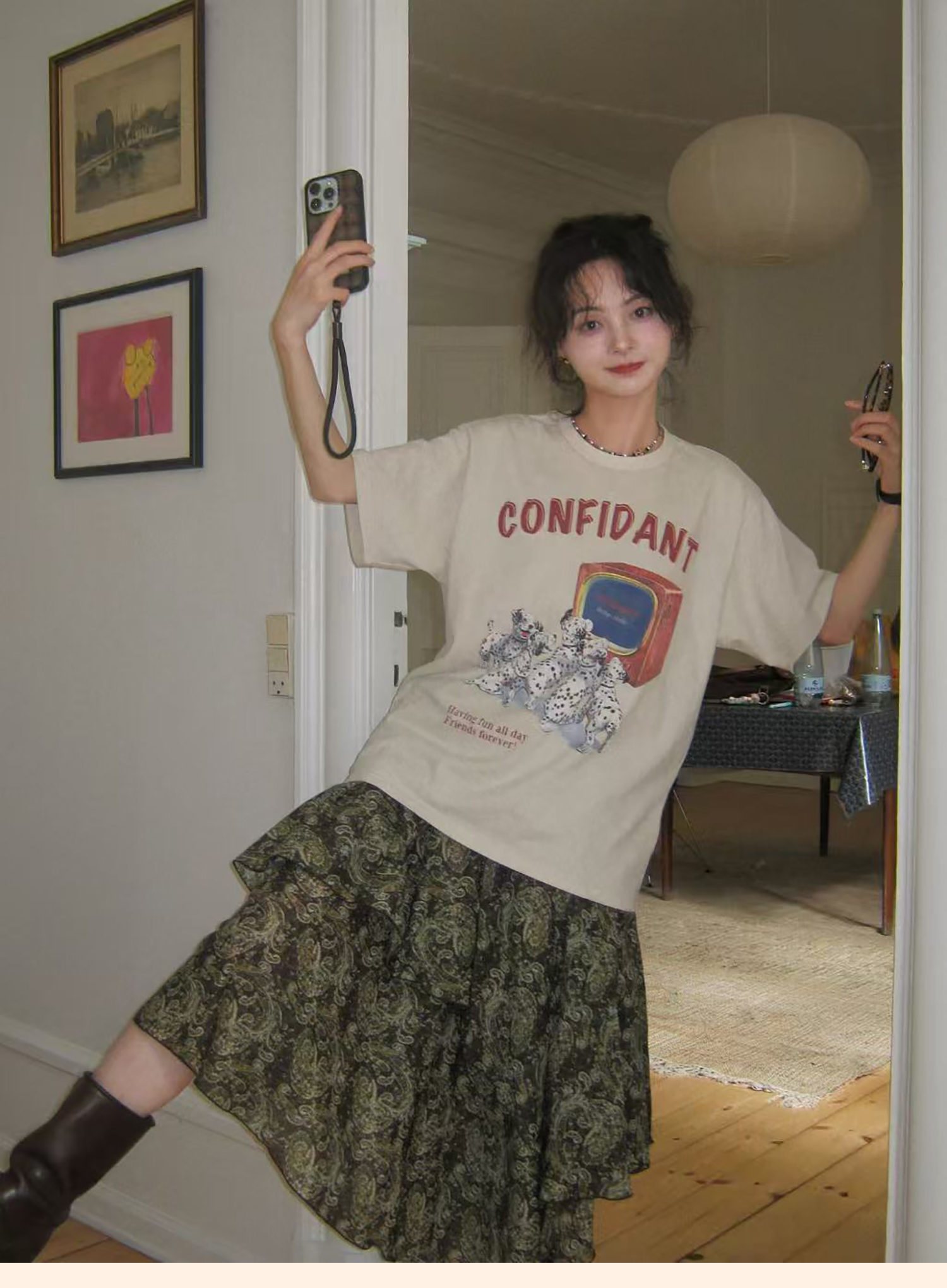 浮生八记/25C121/“快乐小狗”美式复古做旧斑点狗T恤