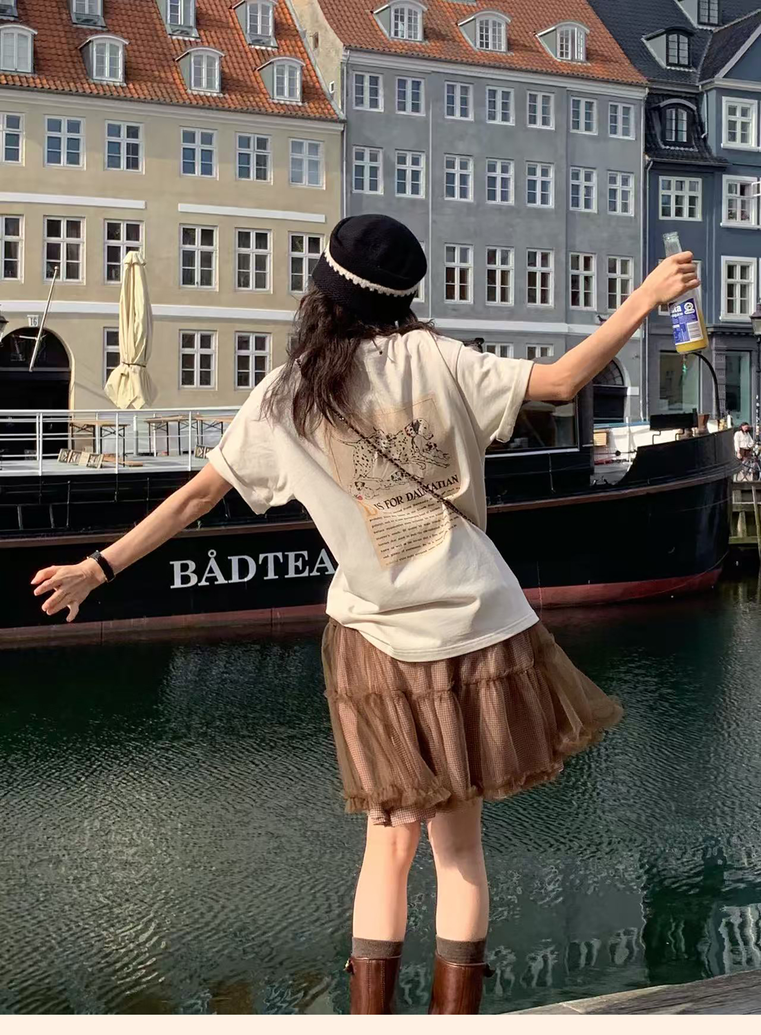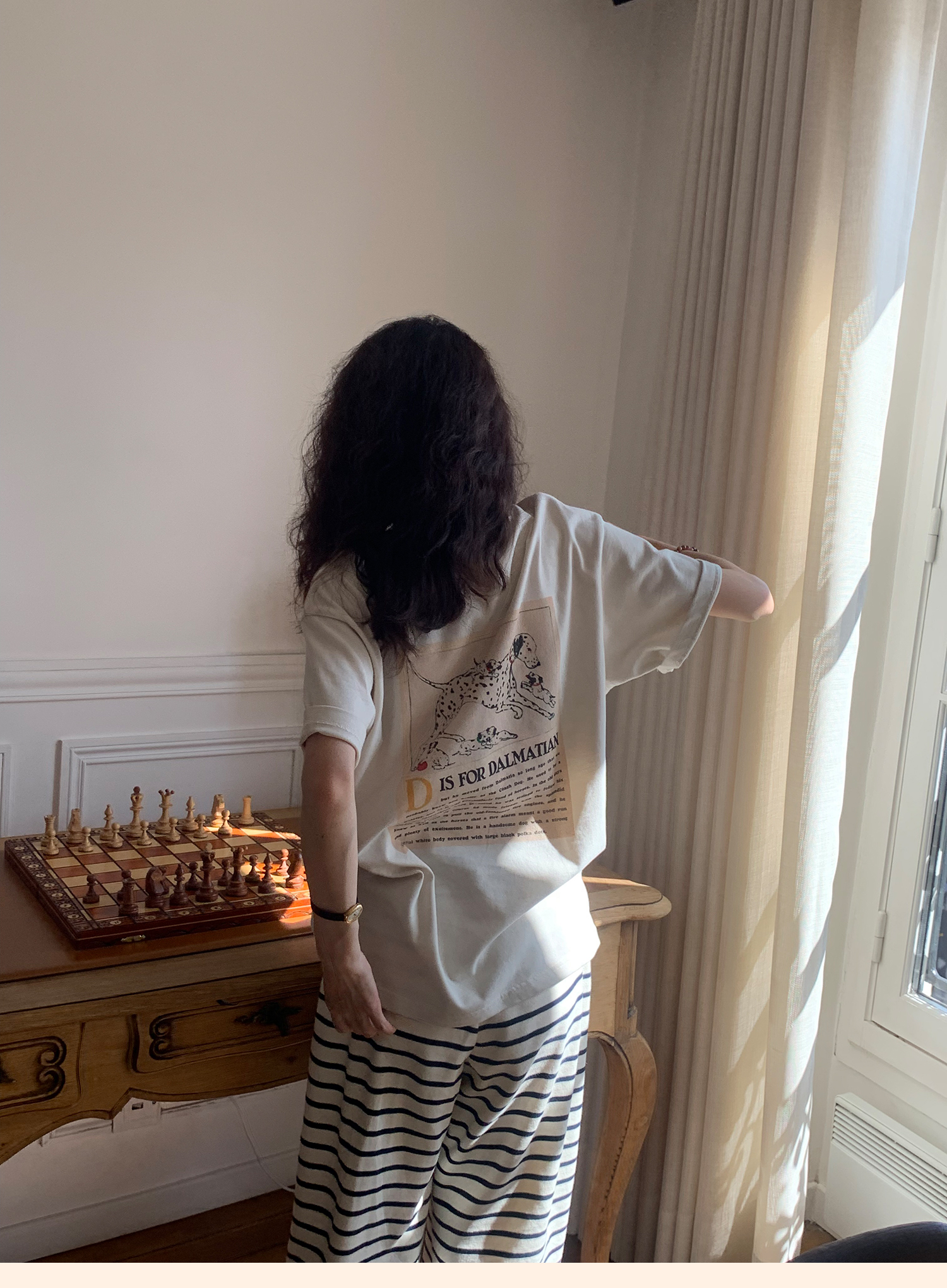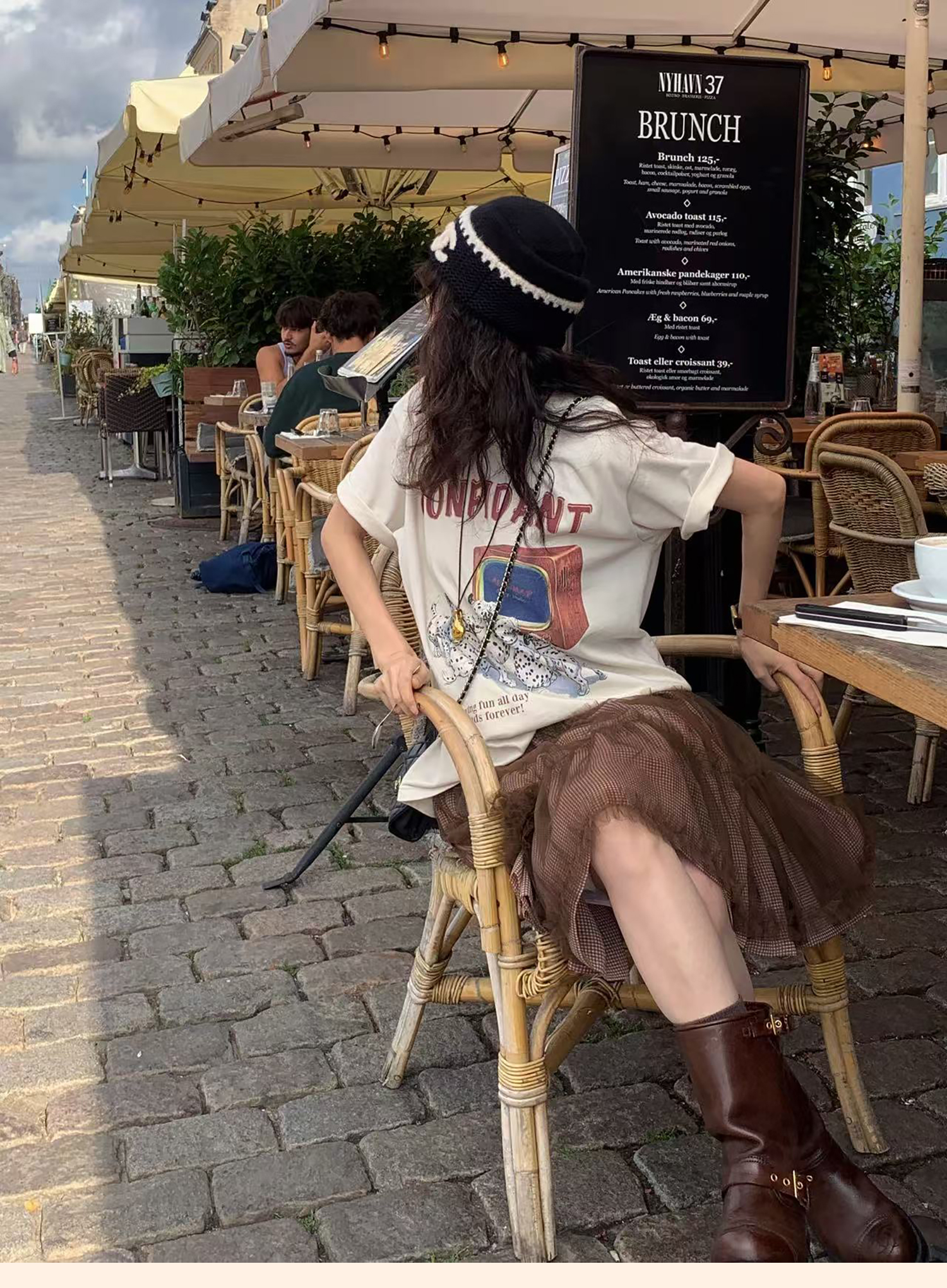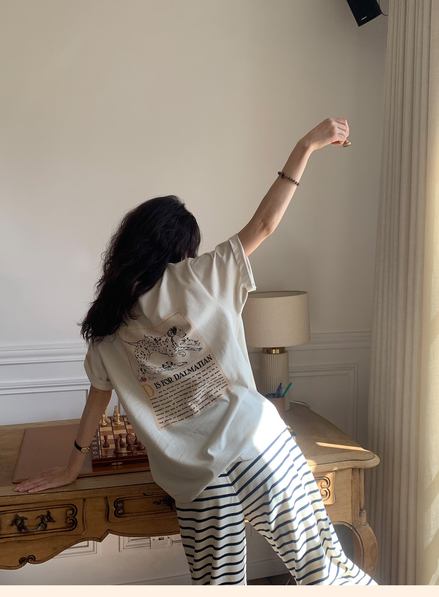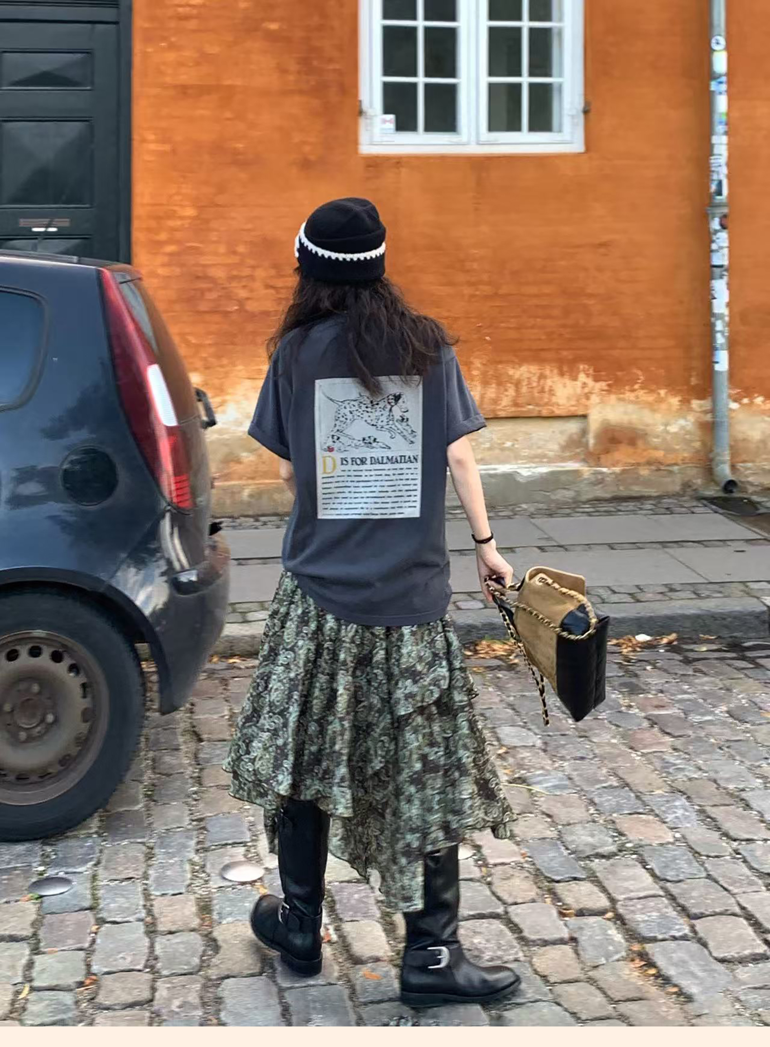 浮生八记/25C121/“快乐小狗”美式复古做旧斑点狗T恤