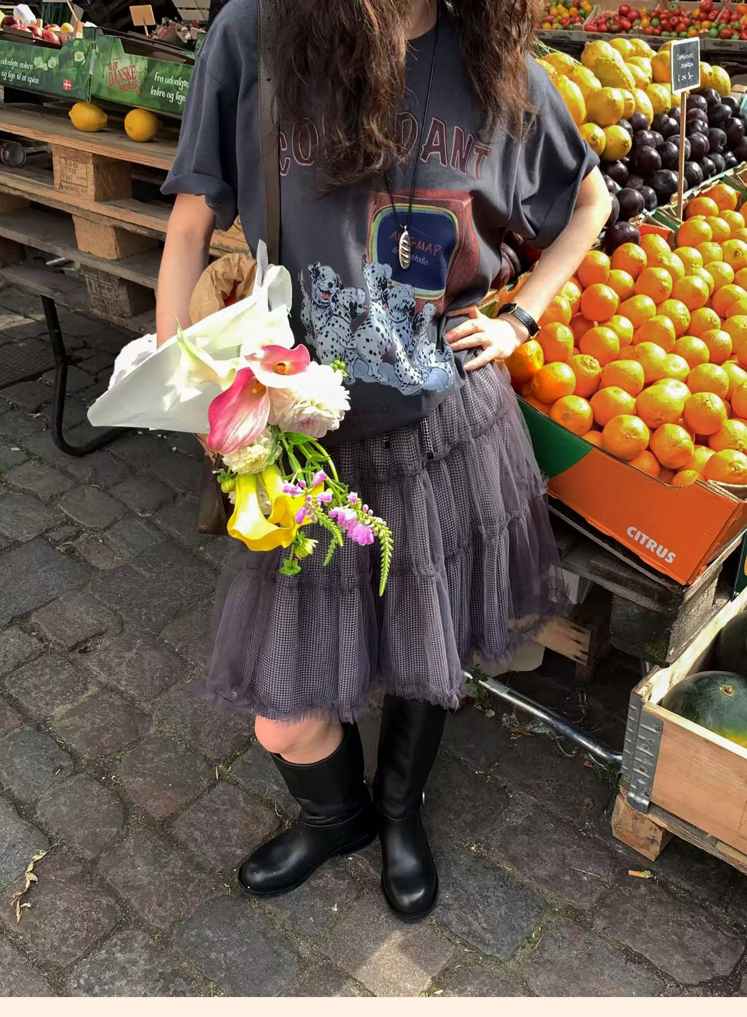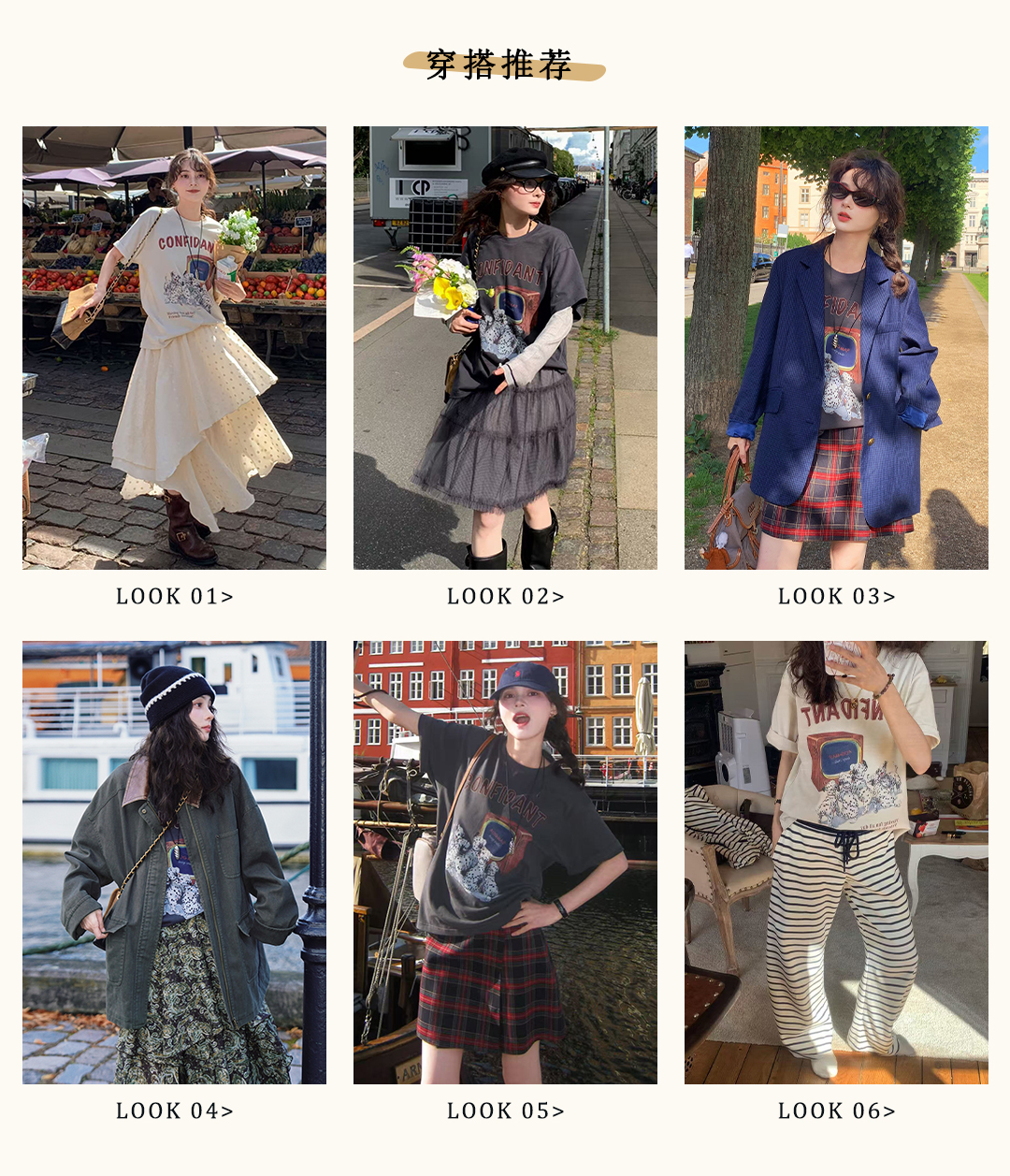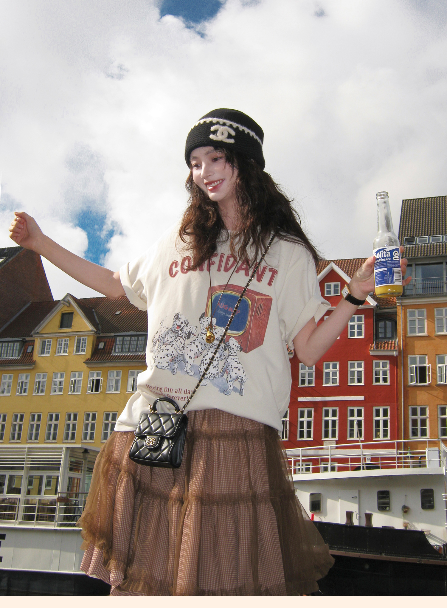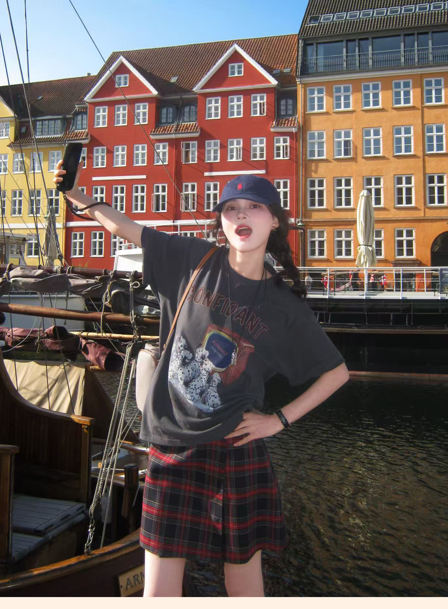 浮生八记/25C121/“快乐小狗”美式复古做旧斑点狗T恤