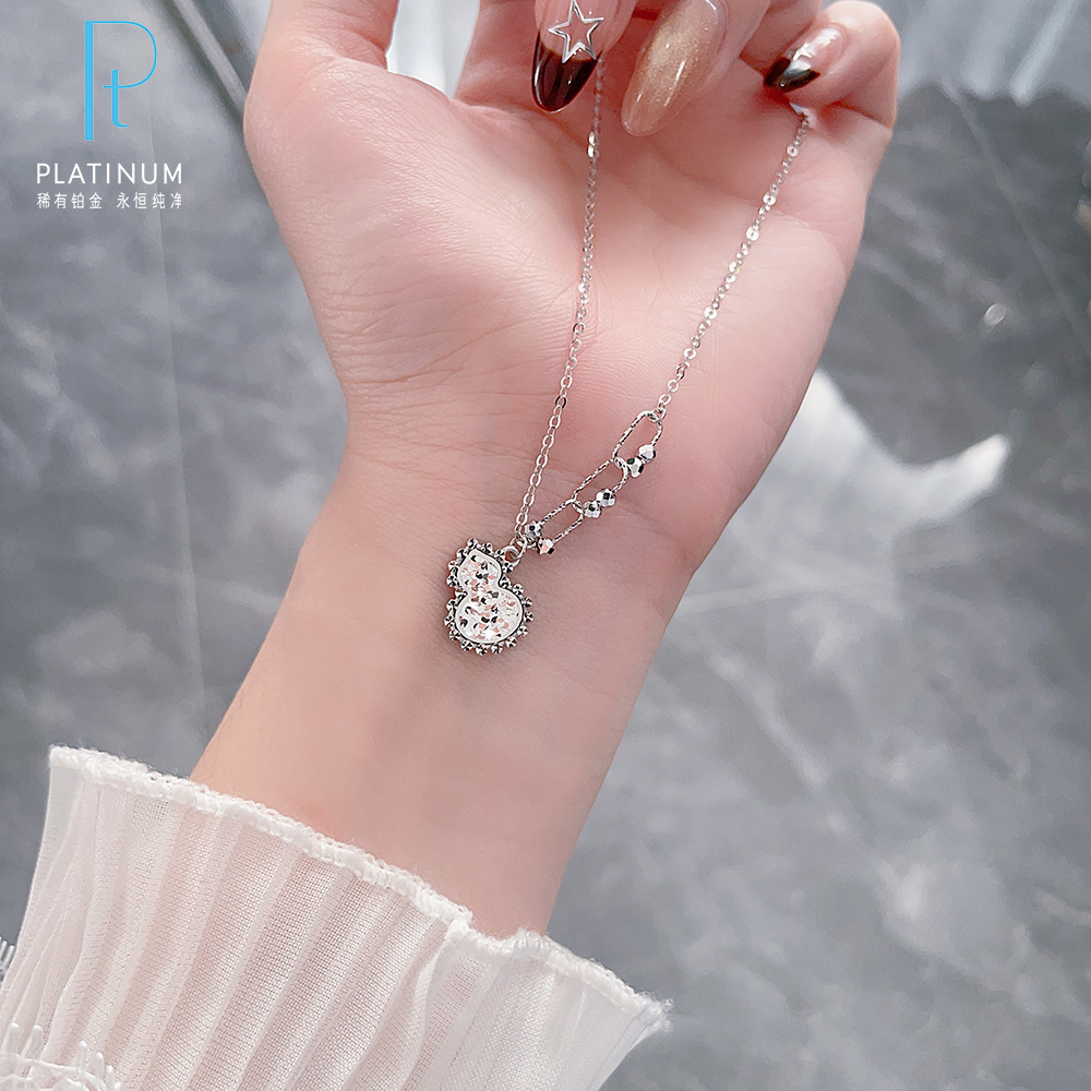 【限时8.8折】【线上铂金馆】PT950 #葫芦 #招财纳福 【国际铂金协会】铂金AB链双面仿钻碎碎冰车花葫芦调节套链(BTL00310)预售产品下单后不退款不退货不换货不补差价)