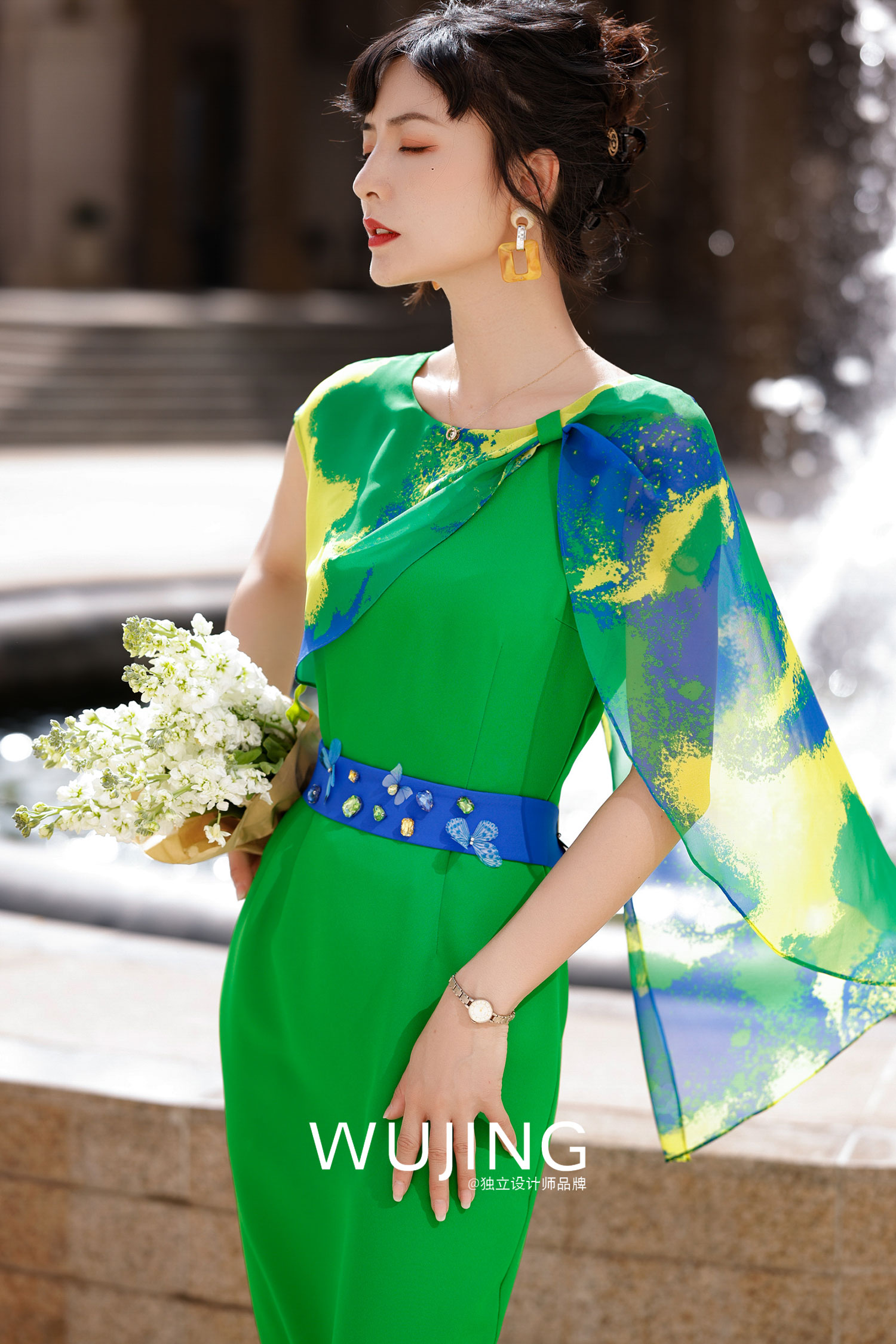 3022073 青山远黛 阳春绿连衣裙 雾境