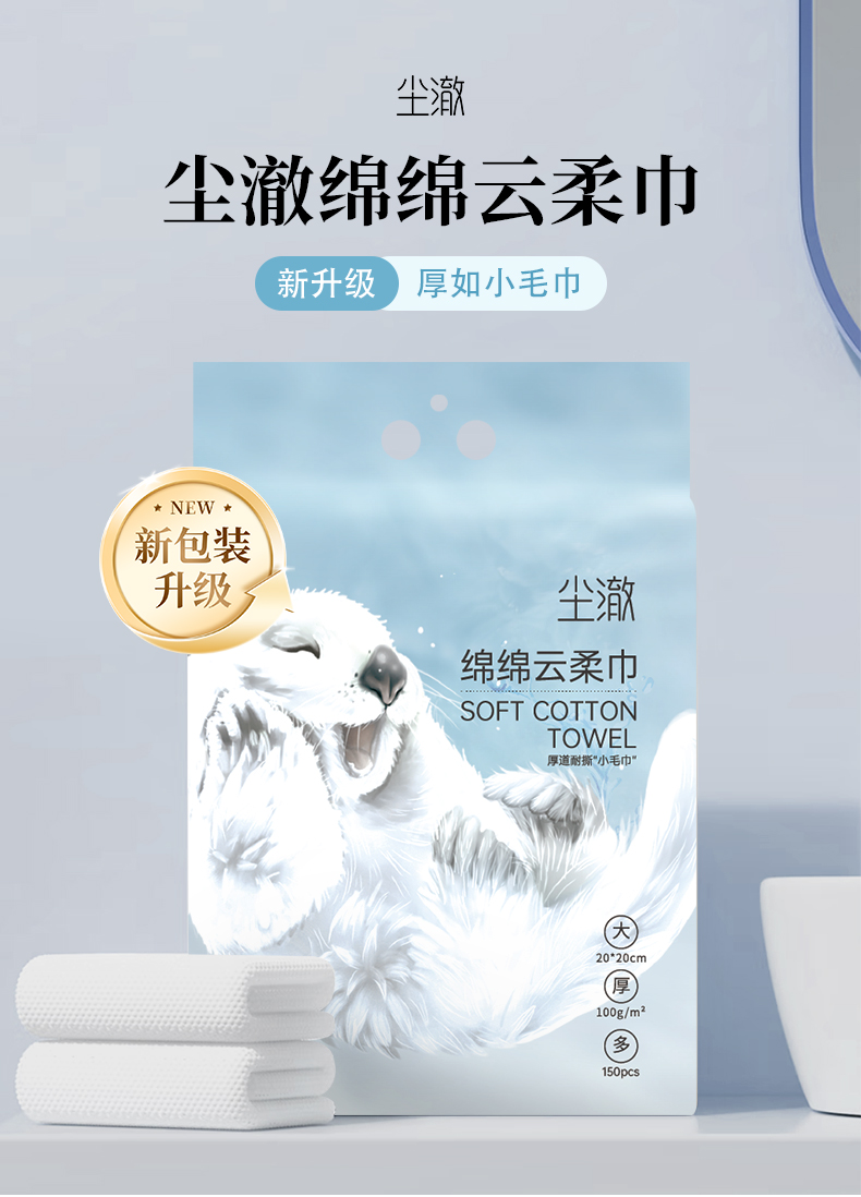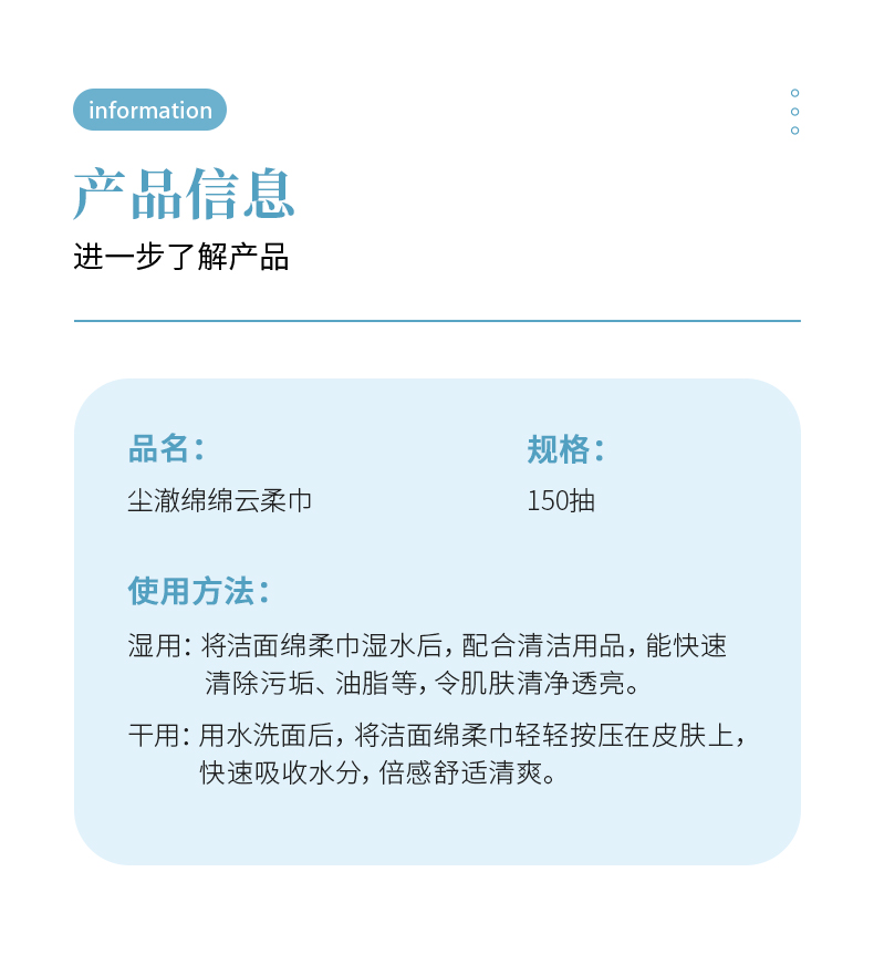 尘澈绵绵云柔巾悬挂底部抽洗脸巾(20*20cm*150抽/提)