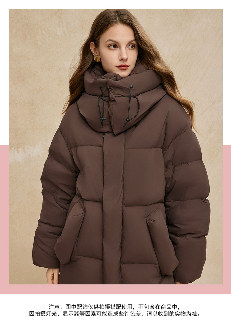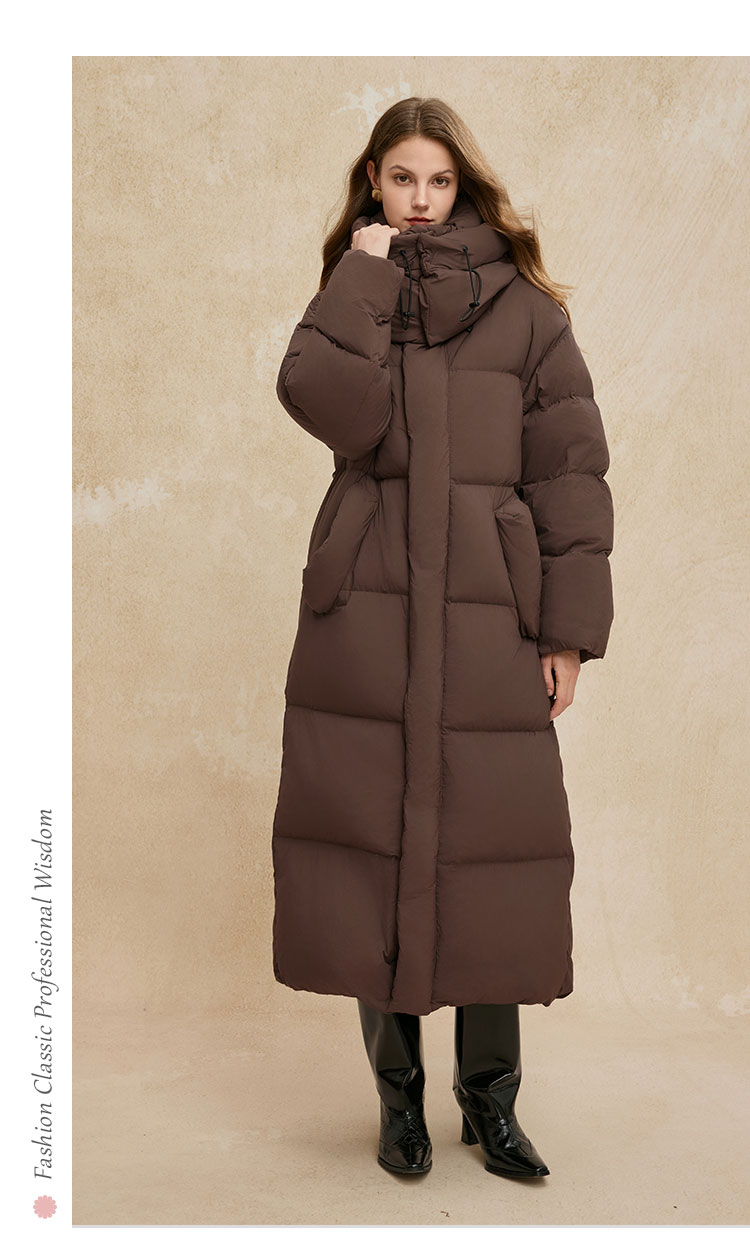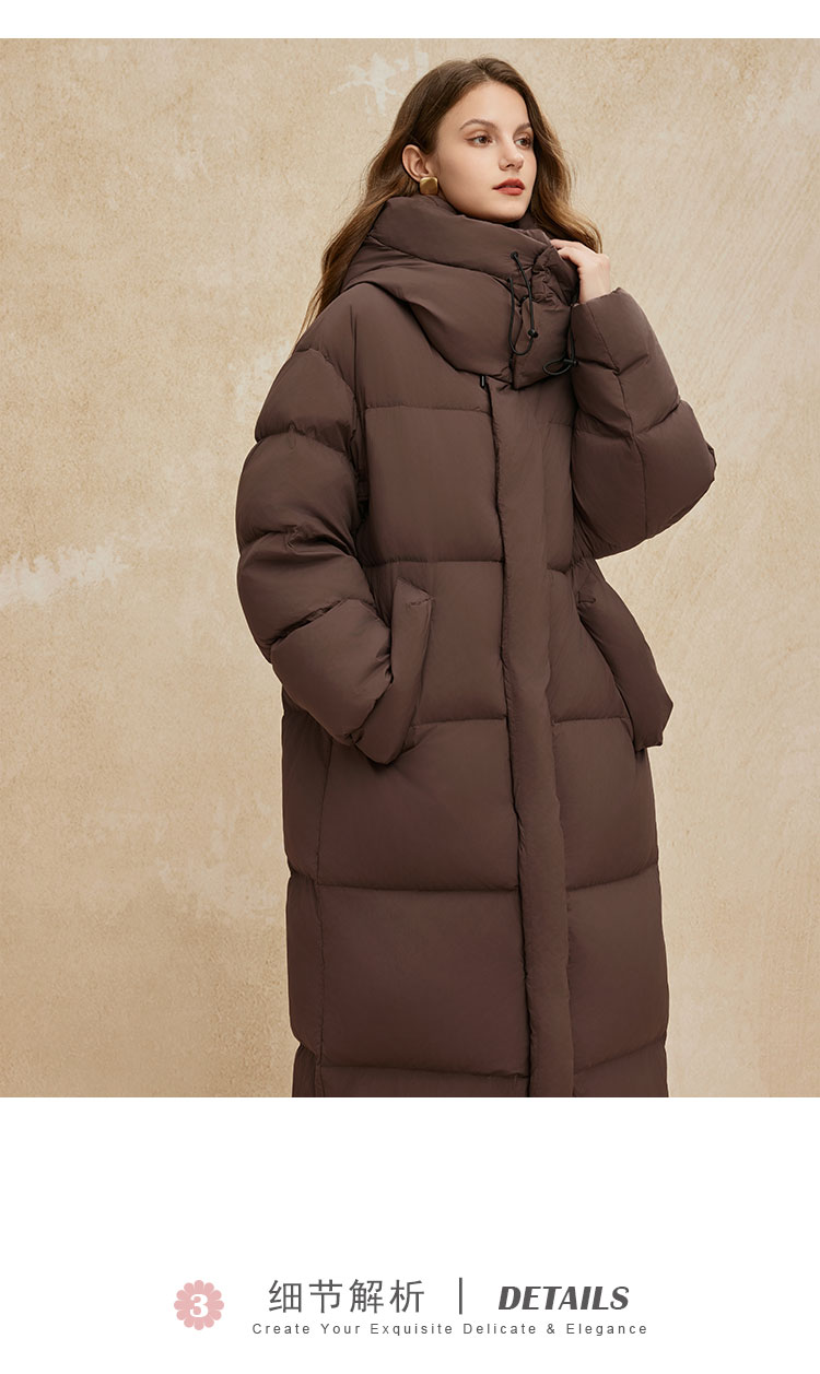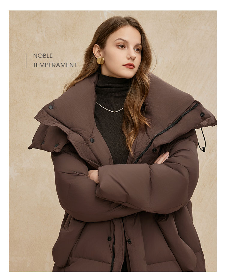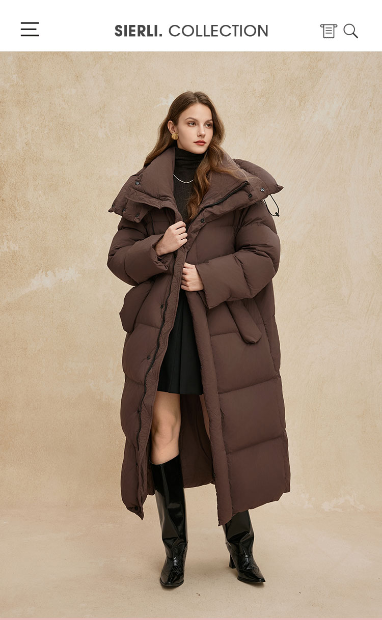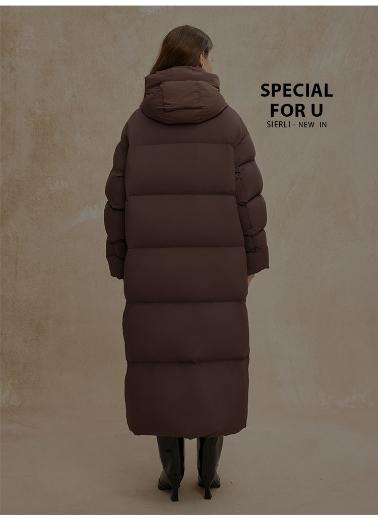 PR002斯尔丽2024年冬季新款高充绒带帽立领简约廓形长款通勤白鸭绒服