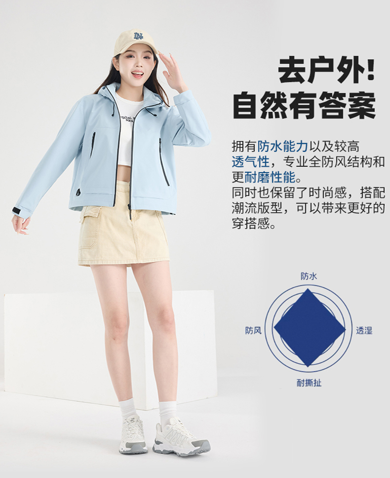 【269到手】33000ft户外软壳冲锋衣女士春秋款GEO-TECH面料防水可收纳外套