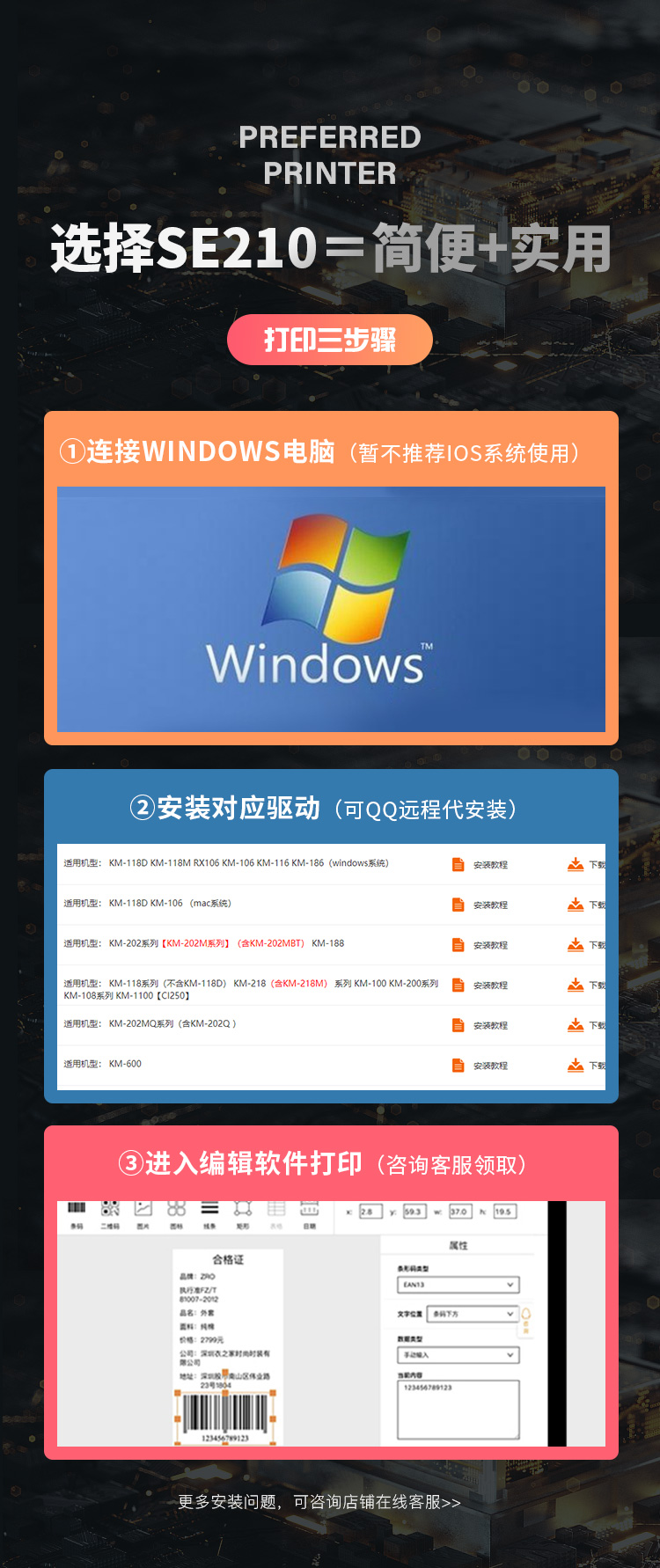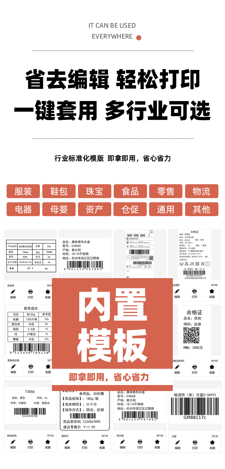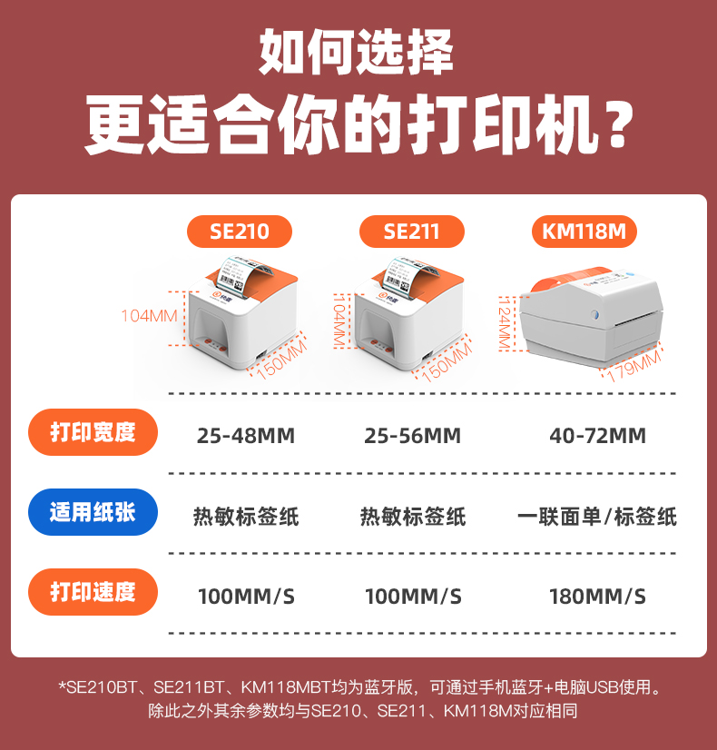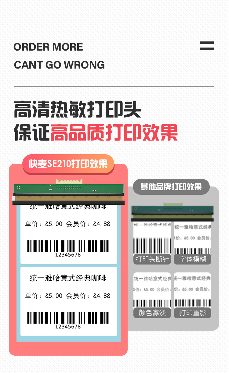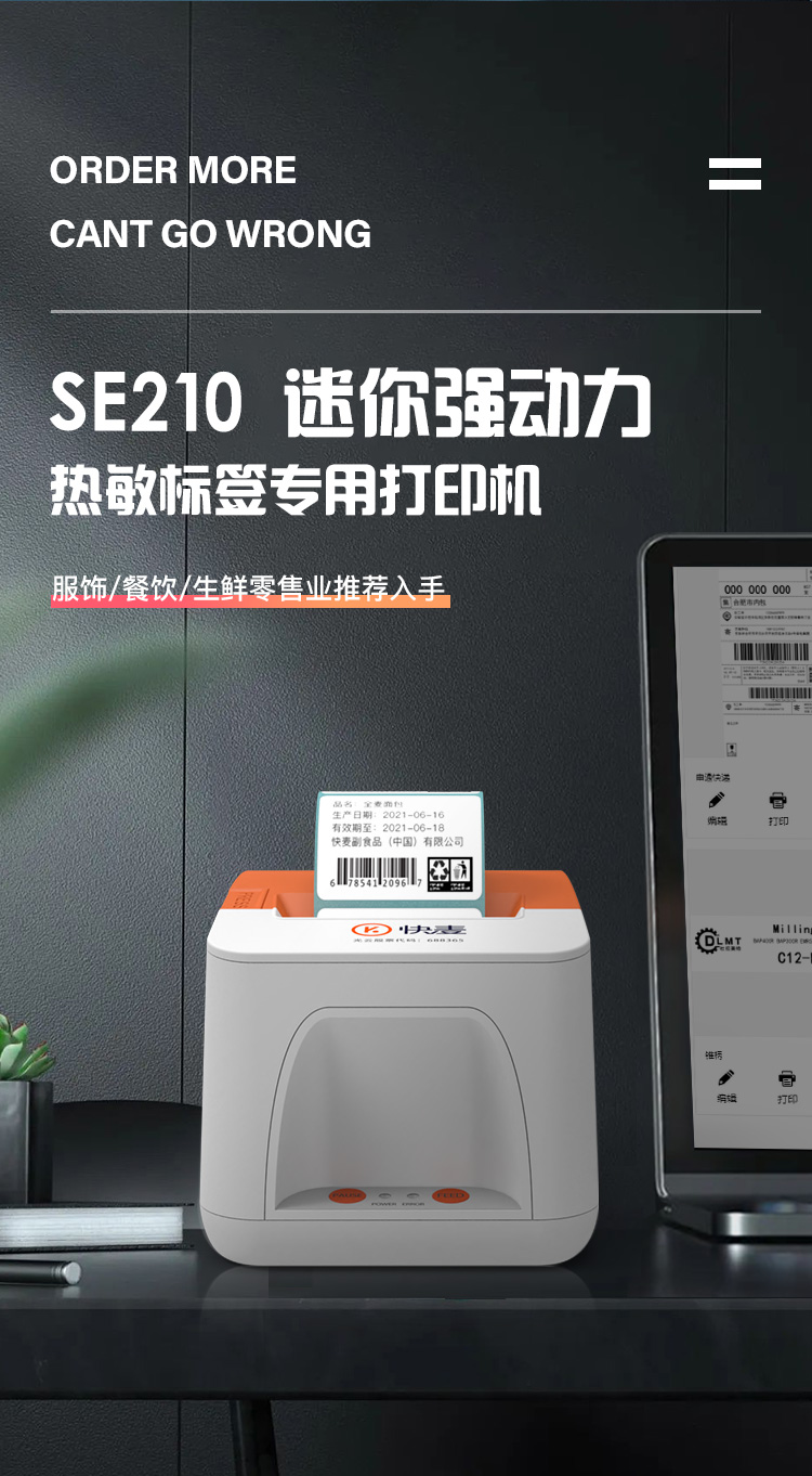 快麦SE210热敏打印机 不干胶三防条码贴纸标签打印机服装吊牌货架二维码奶茶食品价签超市仓库通用蓝牙打标机