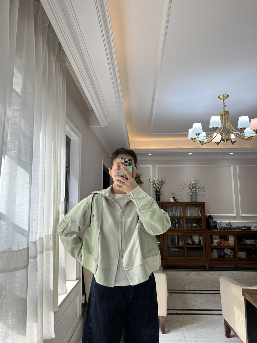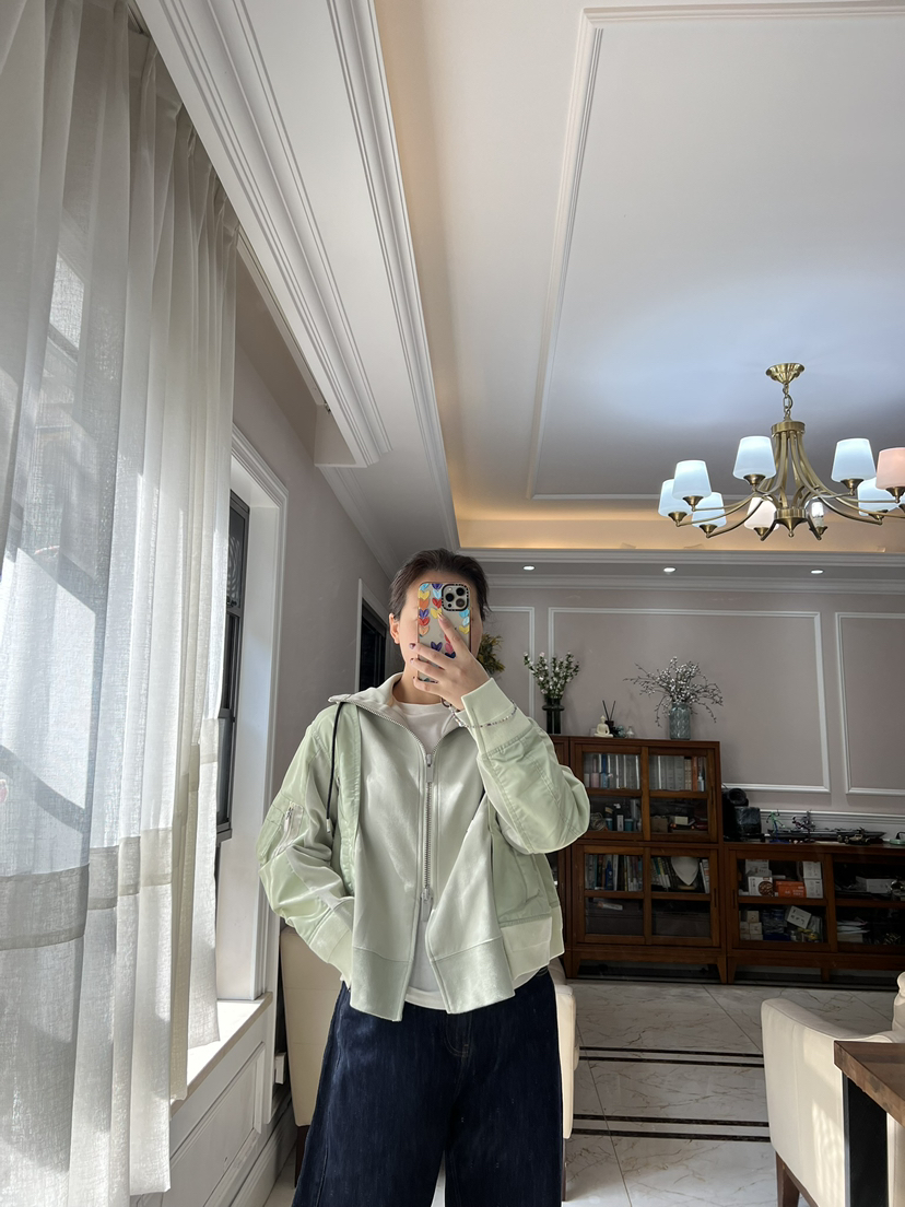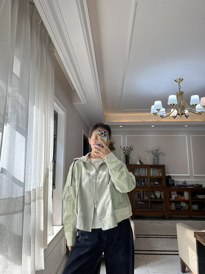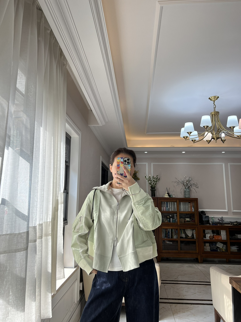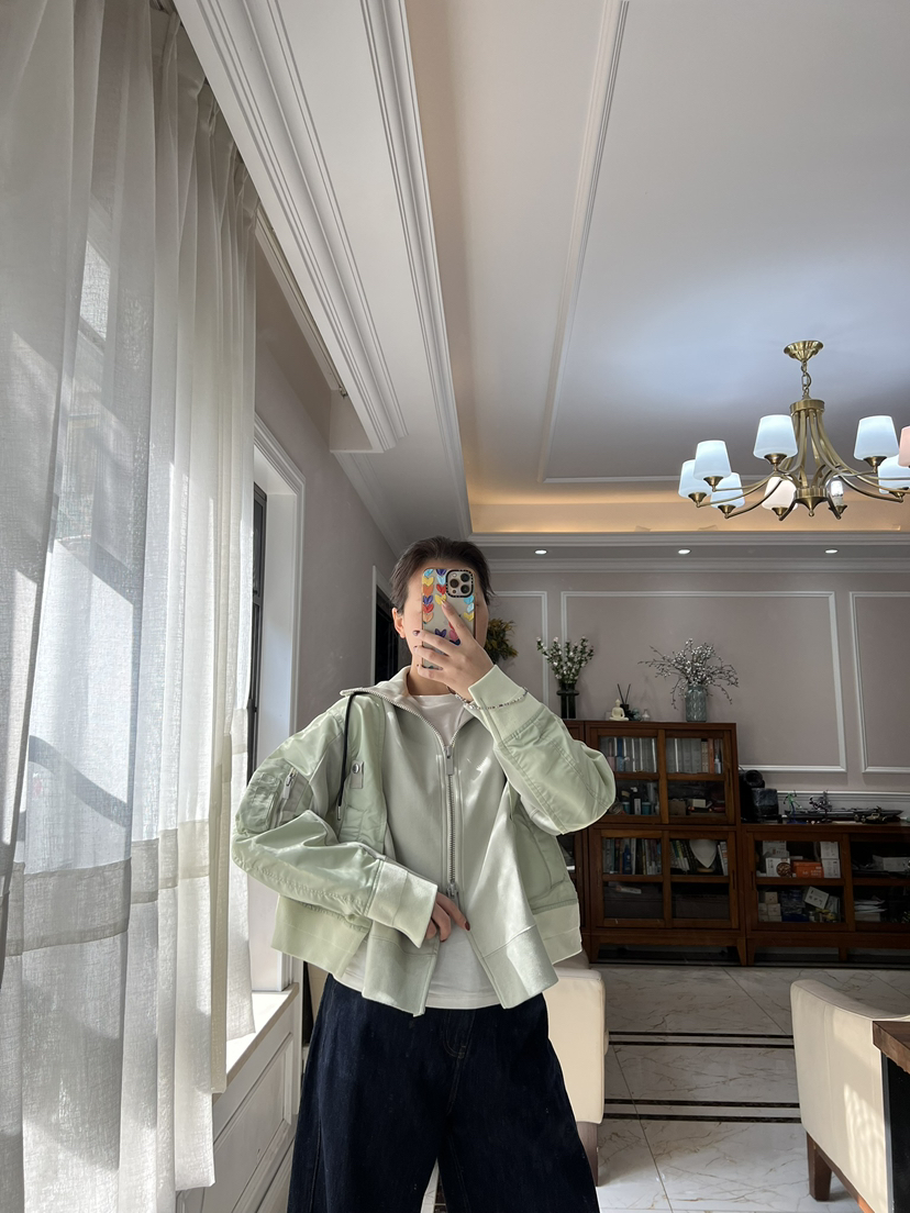 春天杨柳青青,万条垂下绿丝条。这颜色踏青太过喜爱。不是柔弱无力的杨柳青青,明媚有力量。不同颜色的青绿,不同材质的拼接,粗壮的拉链,帅气小清新。自成一派的设计感,让你看着拼接,又看着行云流水。