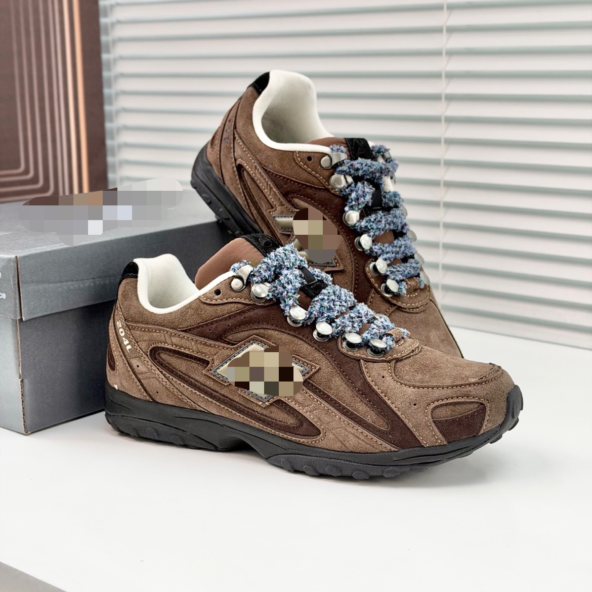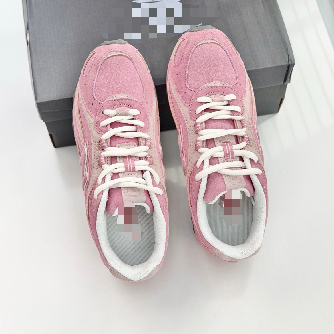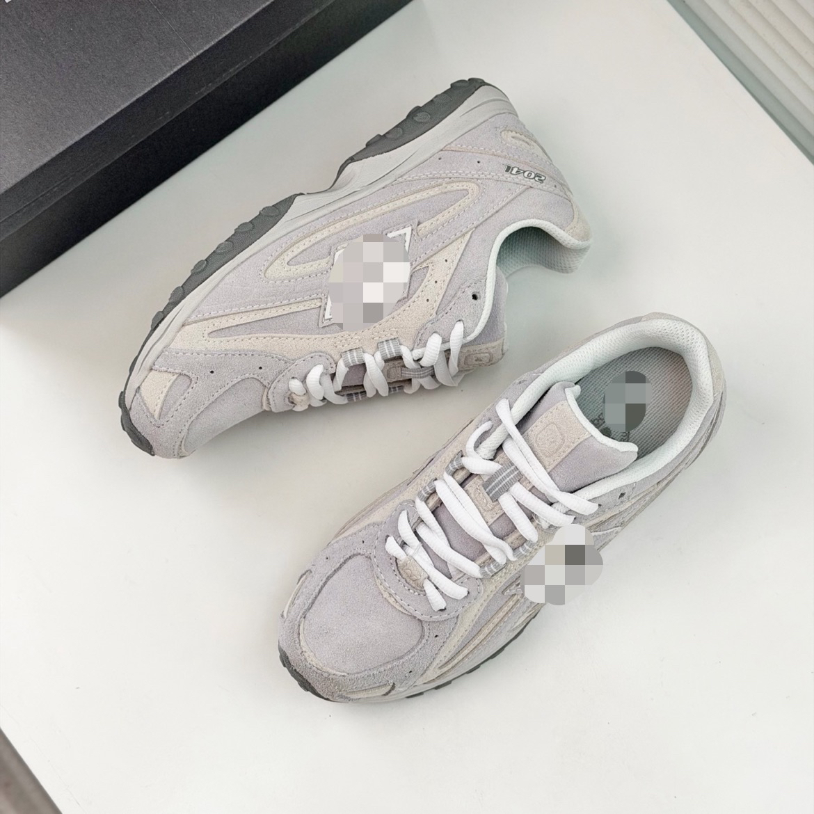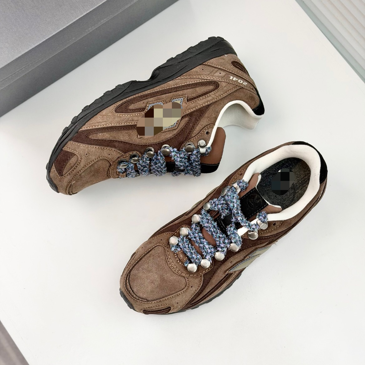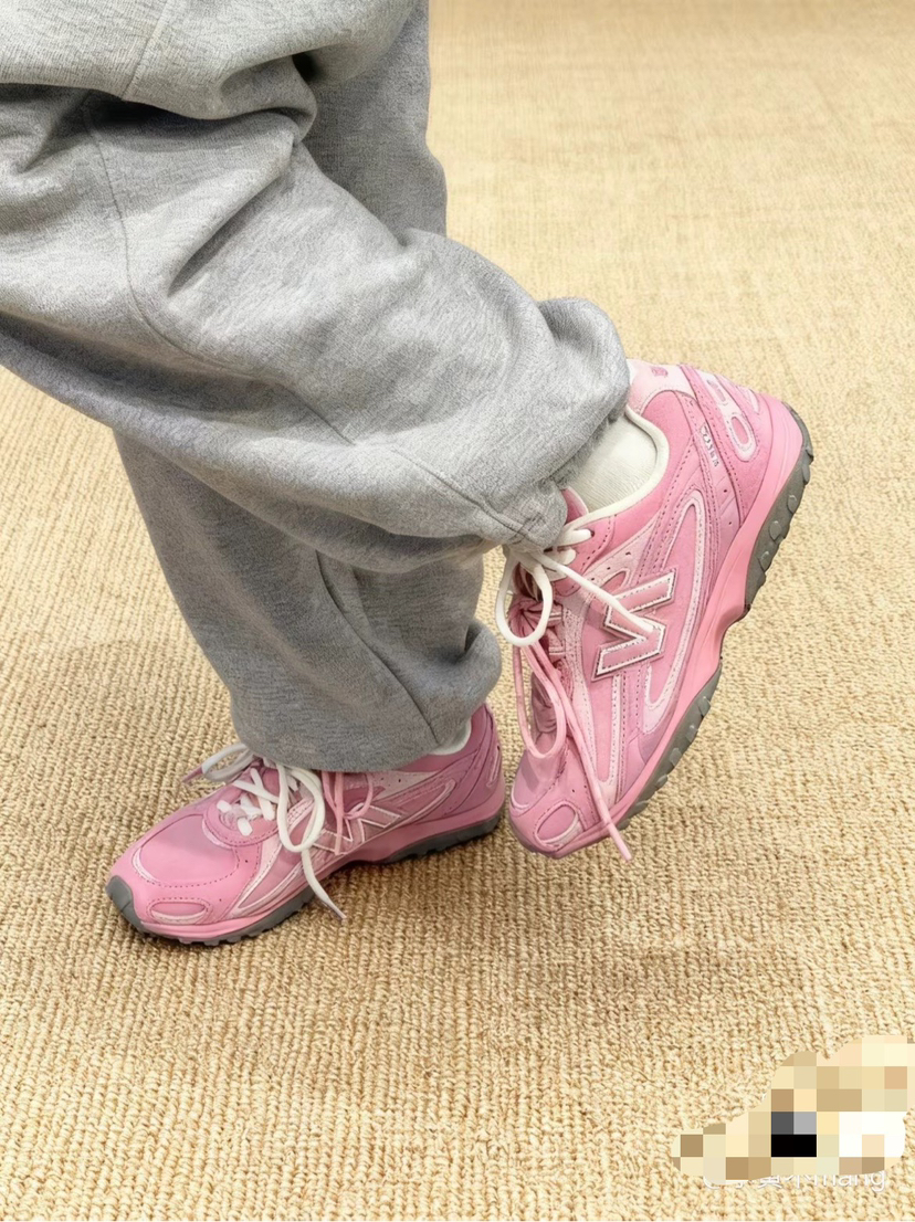采用流线型鞋身框架,搭配千禧年风格的机能配色,借鉴经典425跑鞋的流动线条,以多种材料肌理拼接,如猪皮、人造革、织物等材质结合,鞋面裁片复杂,复古气息与现代品味兼具,与mm联名的NB 530 SL外型有几分相似,被称为德训miu系风格。
