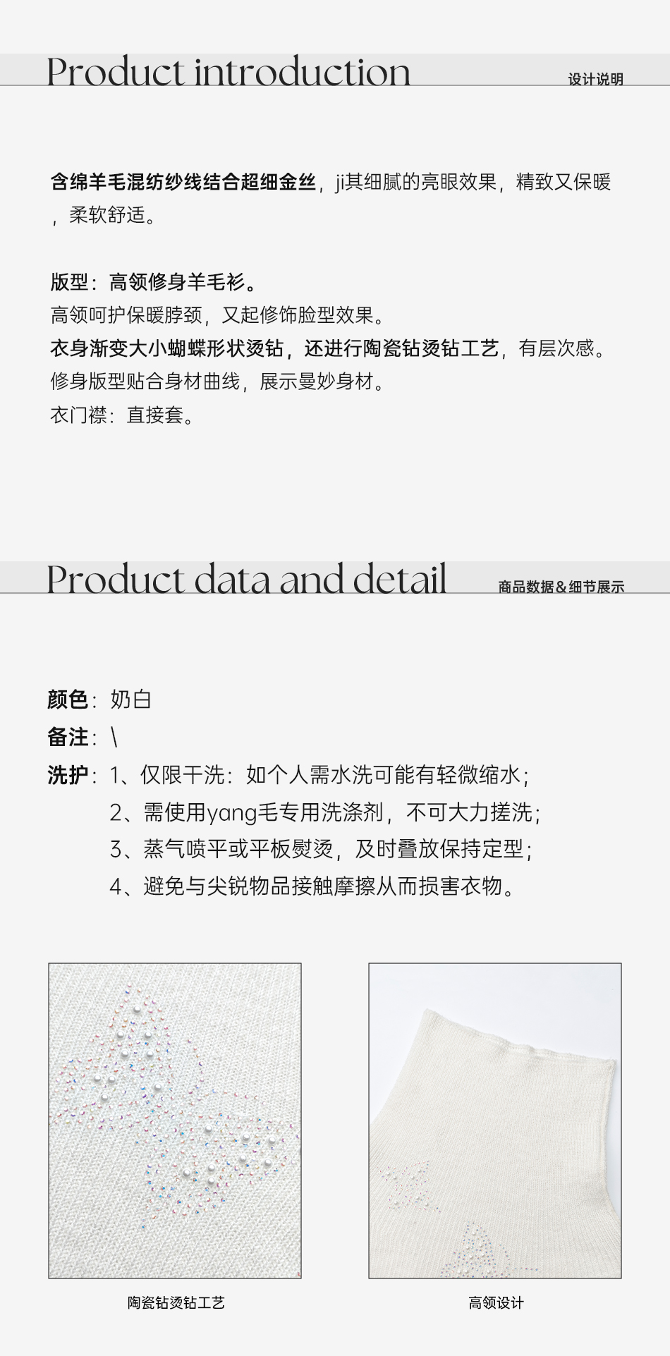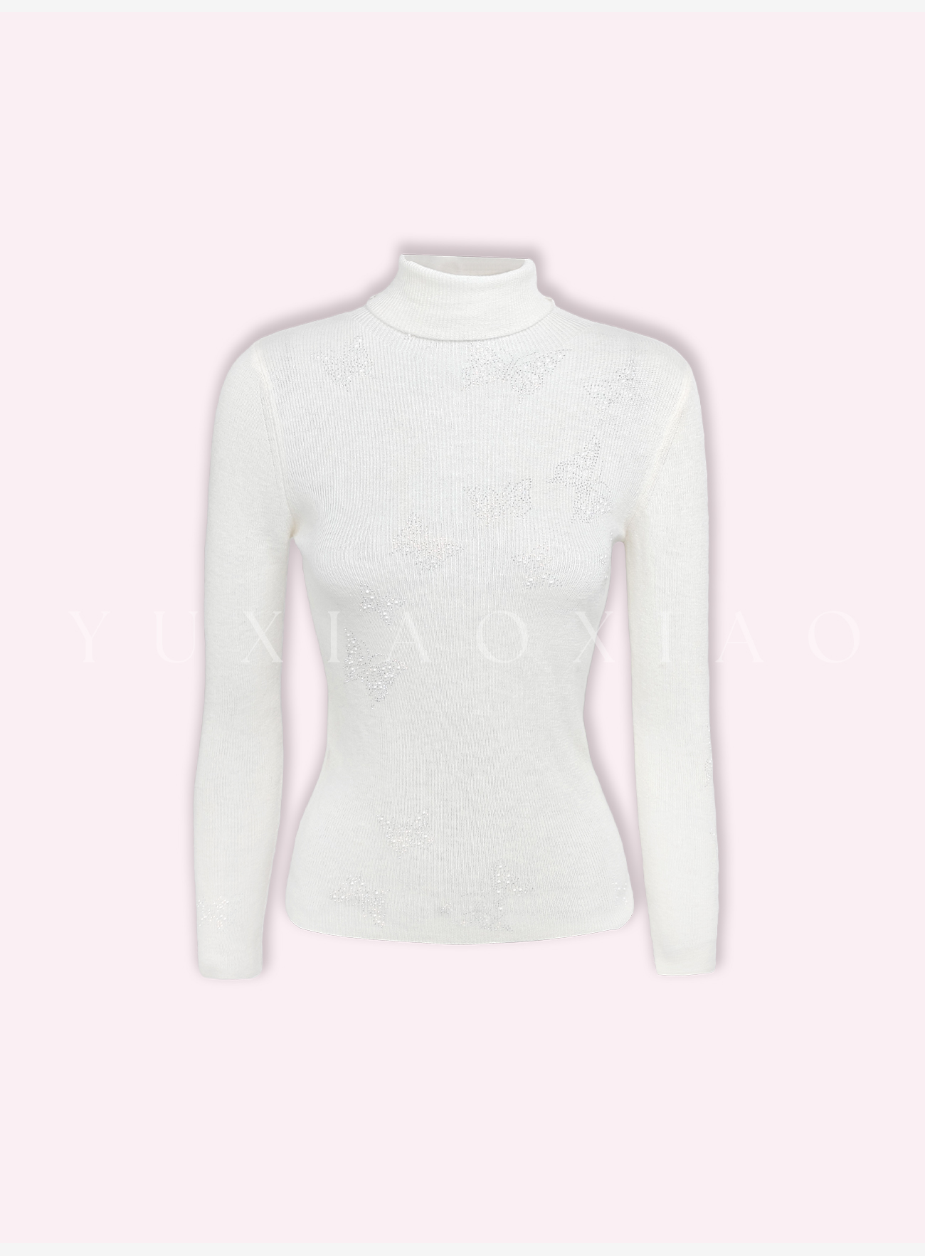 余潇潇【星光蝶语】绵羊毛混纺精美渐变大小蝴蝶烫钻高领修身打底衫