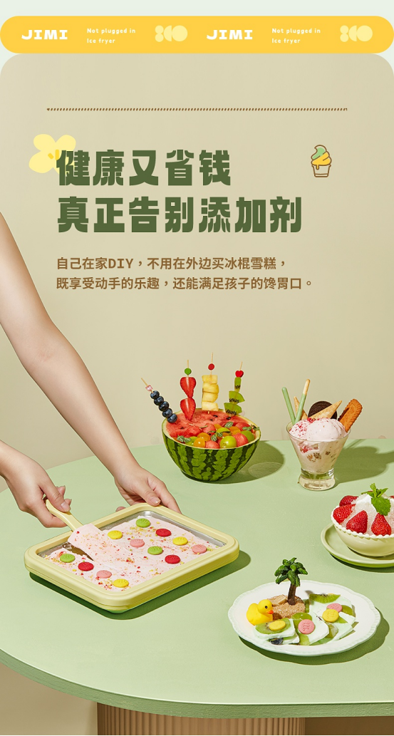 🍍 【积米免插电炒冰机自制DIY炒酸奶机JM1005】🌵 1、健康无添加,🔅小朋友也能在家DIY,不用在外边买冰棍雪糕,省钱又安心。