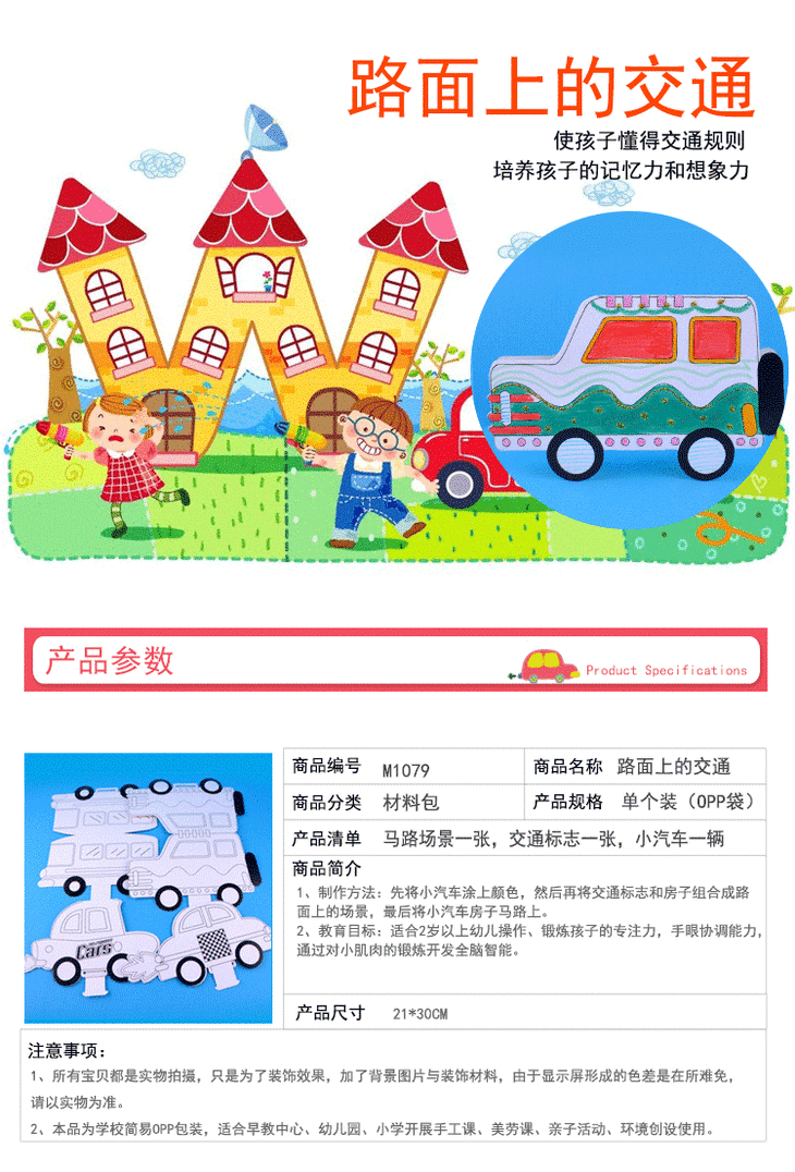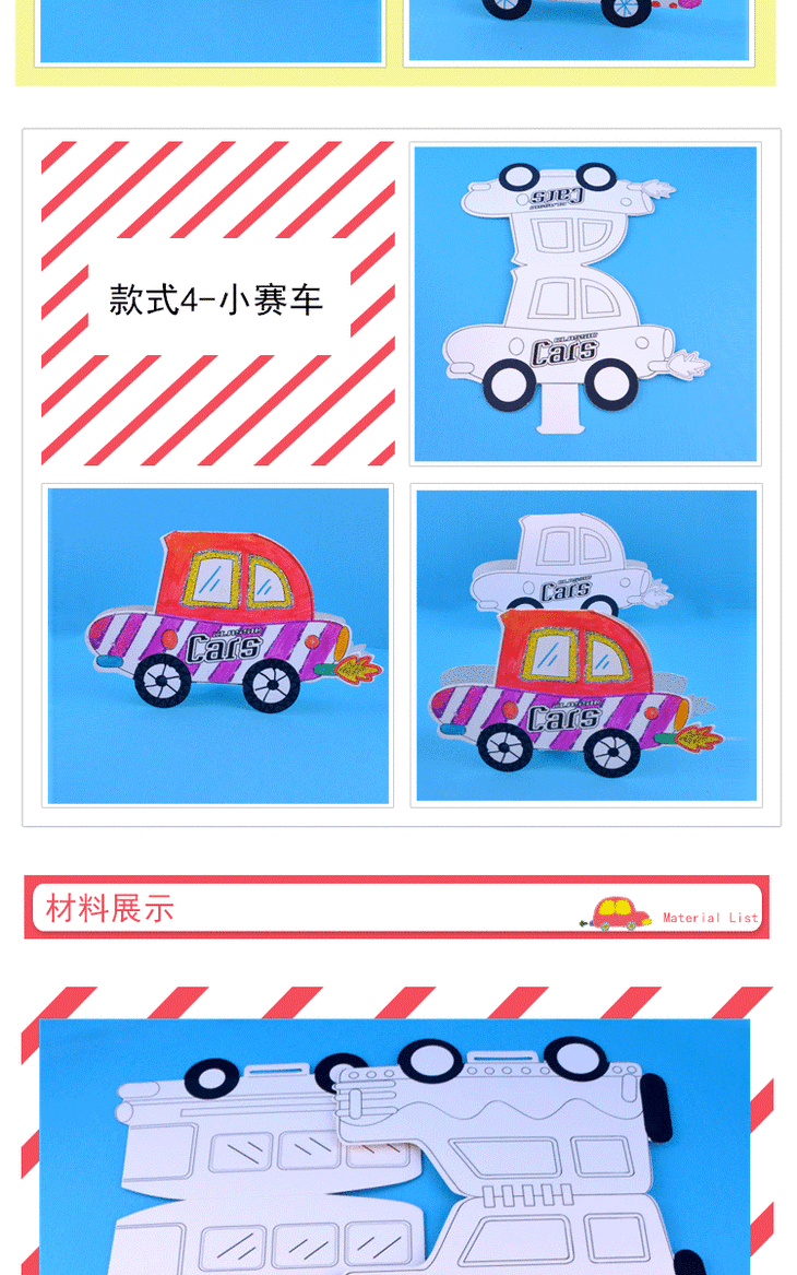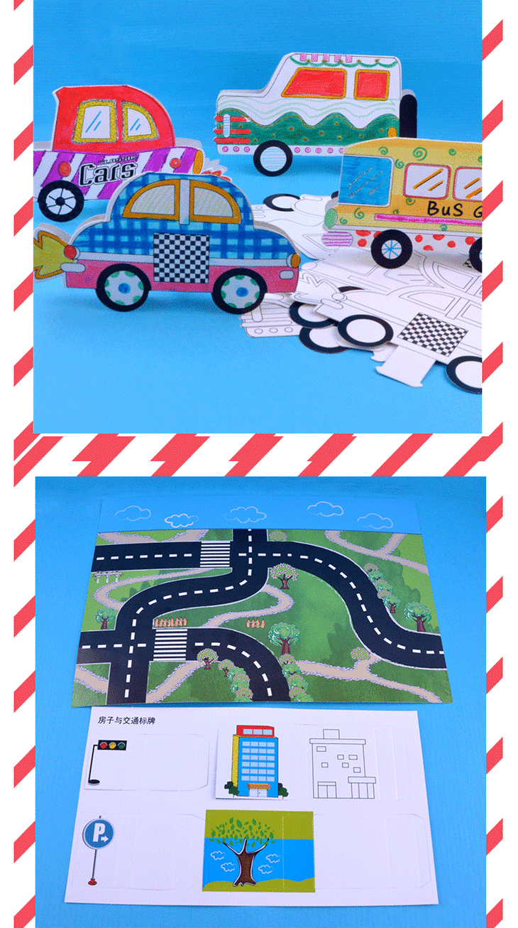 路面上的交通 幼儿园课堂手工DIY涂色小汽车创意手工