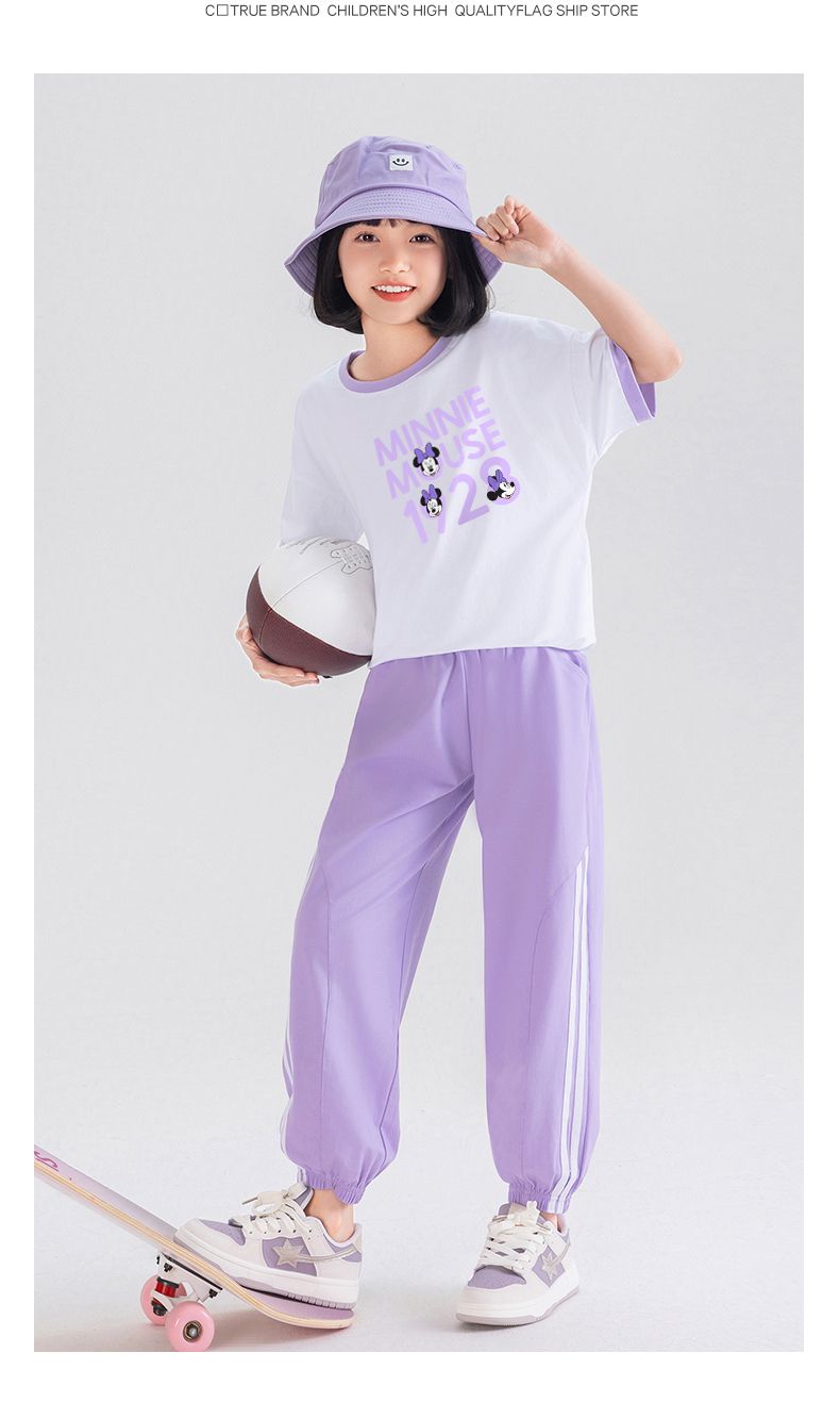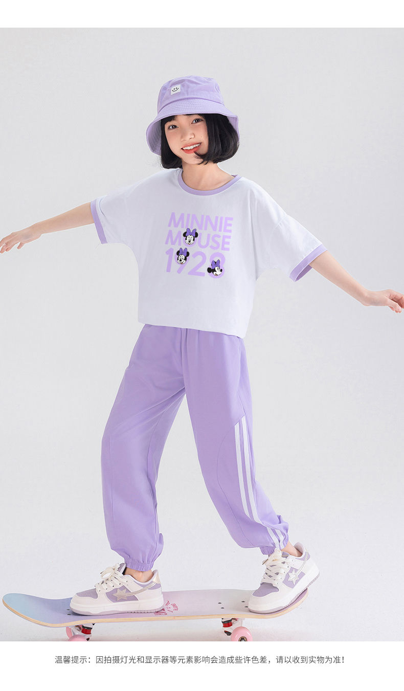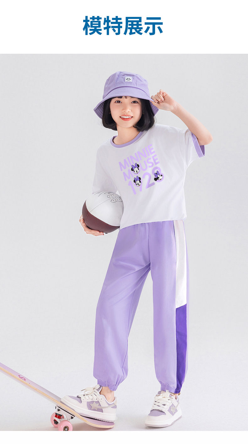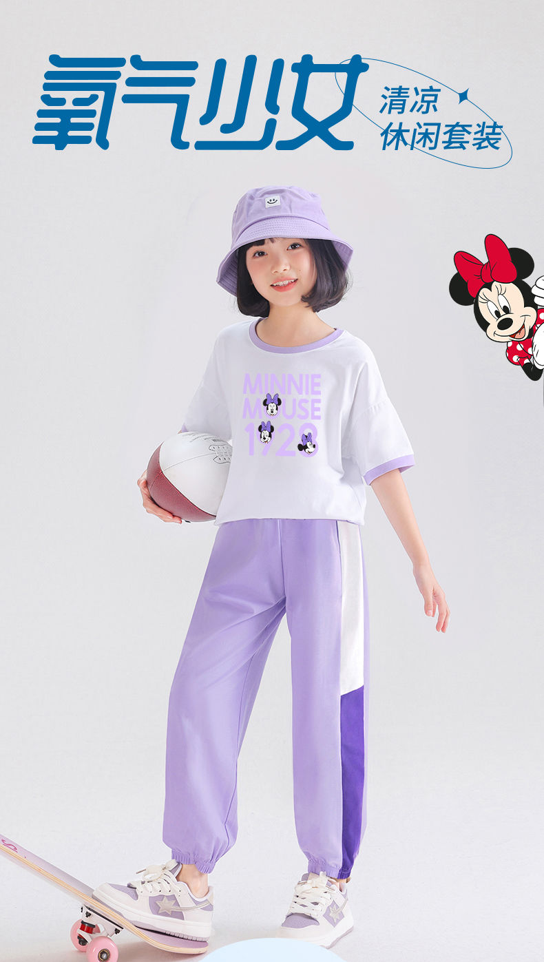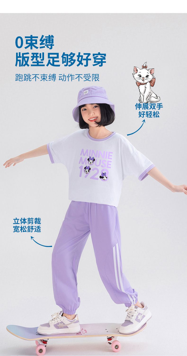 迪士尼女童短袖套装夏季两件套2025新款儿童运动服薄款女大童夏装