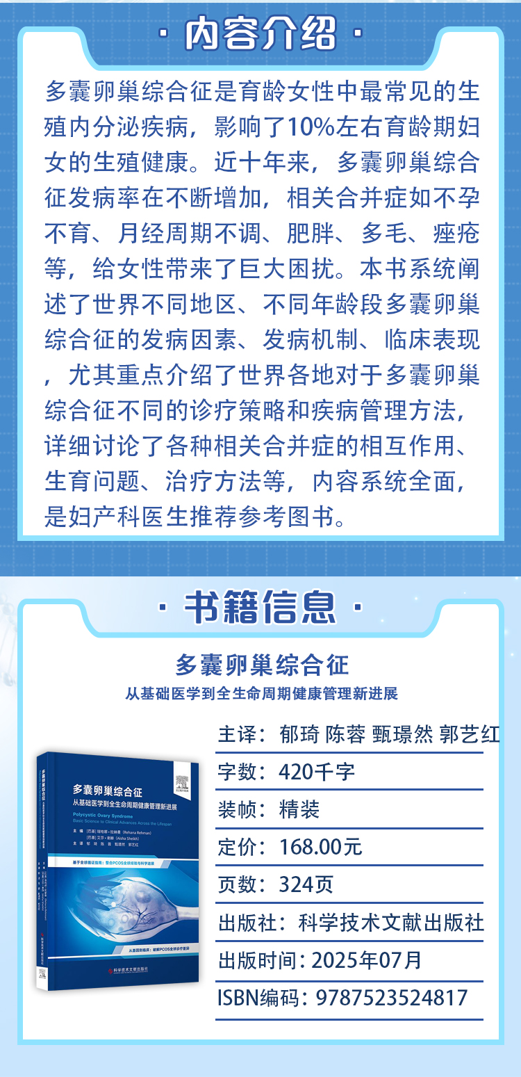 书名:多囊卵巢综合征:从基础医学到全生命周期健康管理新进展