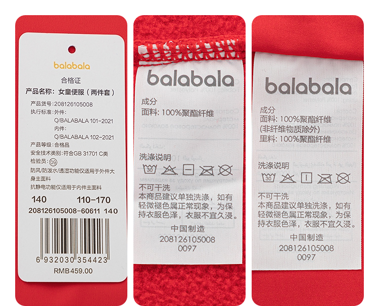 【balaOne】巴拉巴拉童装儿童外套女童2025年新款春装防护两件套