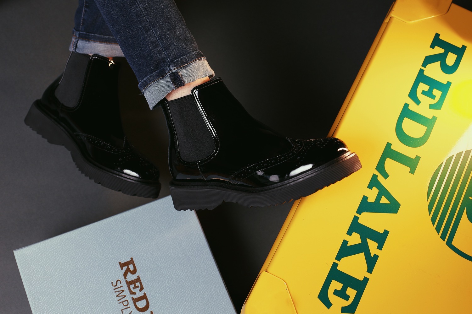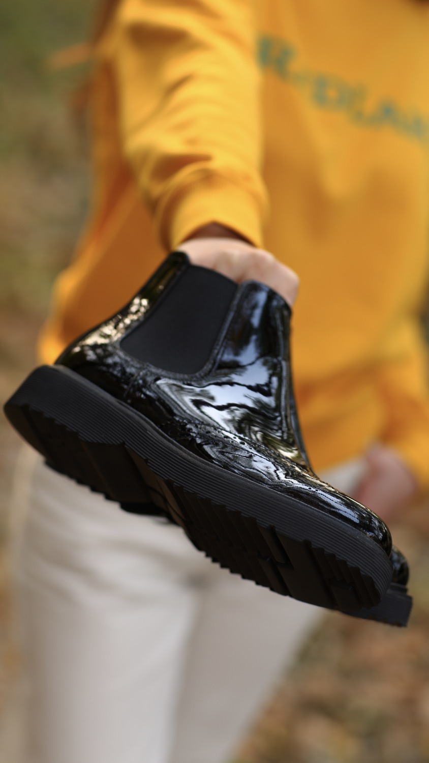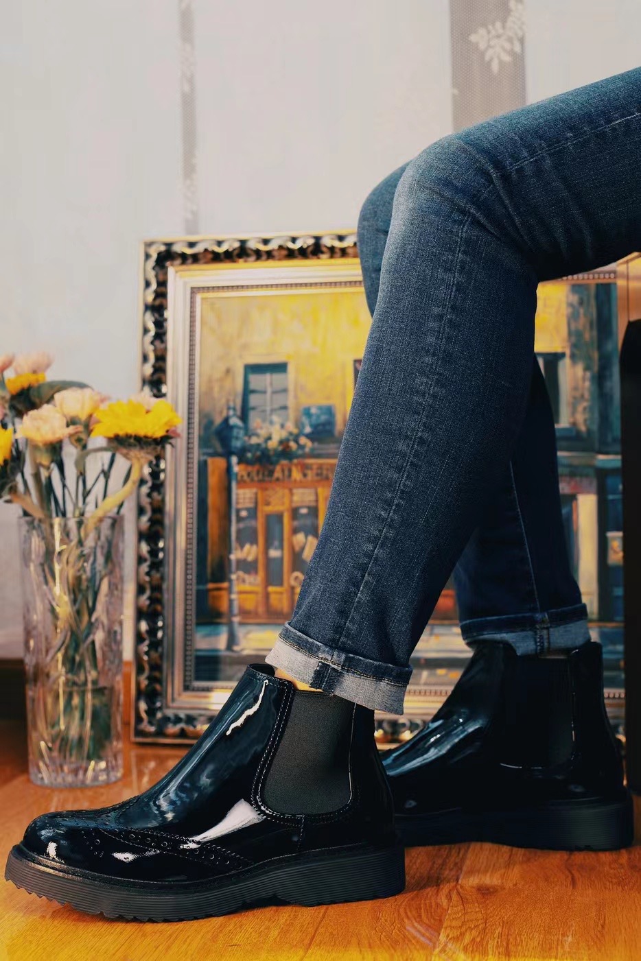 FinalSale季末特价——国货优品系列经典款布洛克雕花切尔西女靴DAY STYLE990黑色漆皮(超轻款)