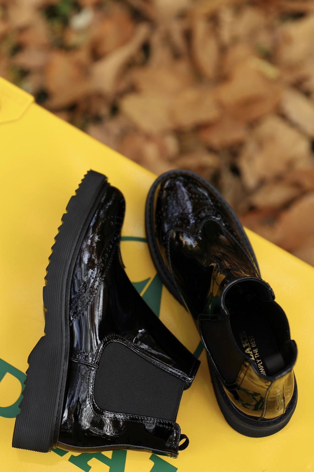国货优品系列布洛克雕花切尔西女靴DAY STYLE990黑色漆皮(超轻款)