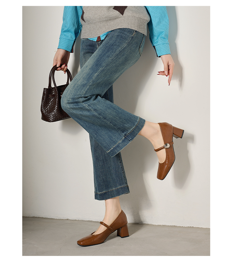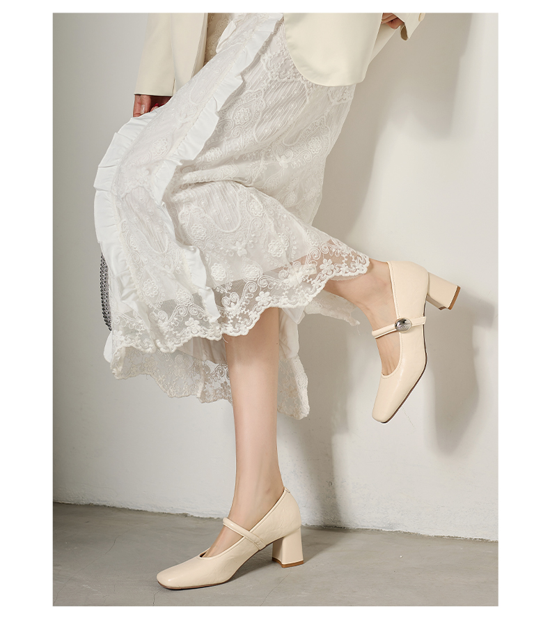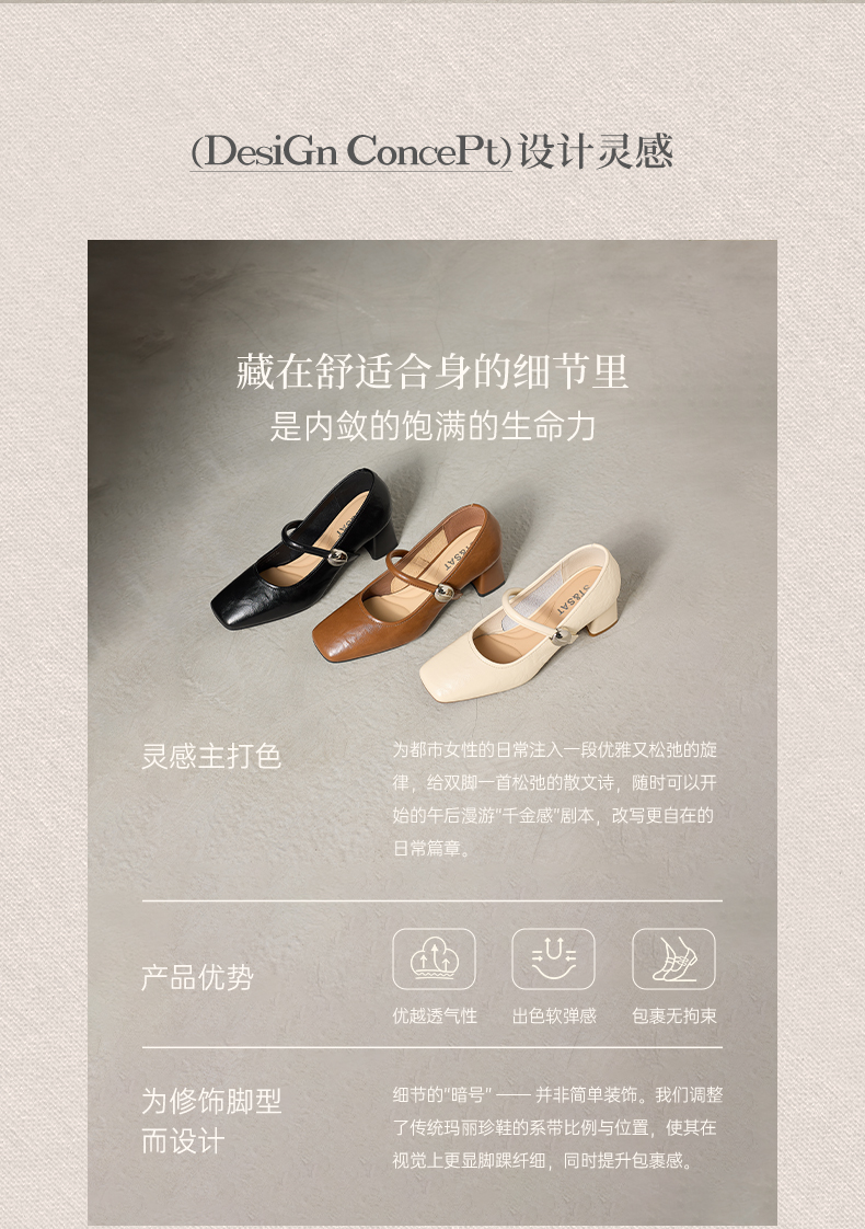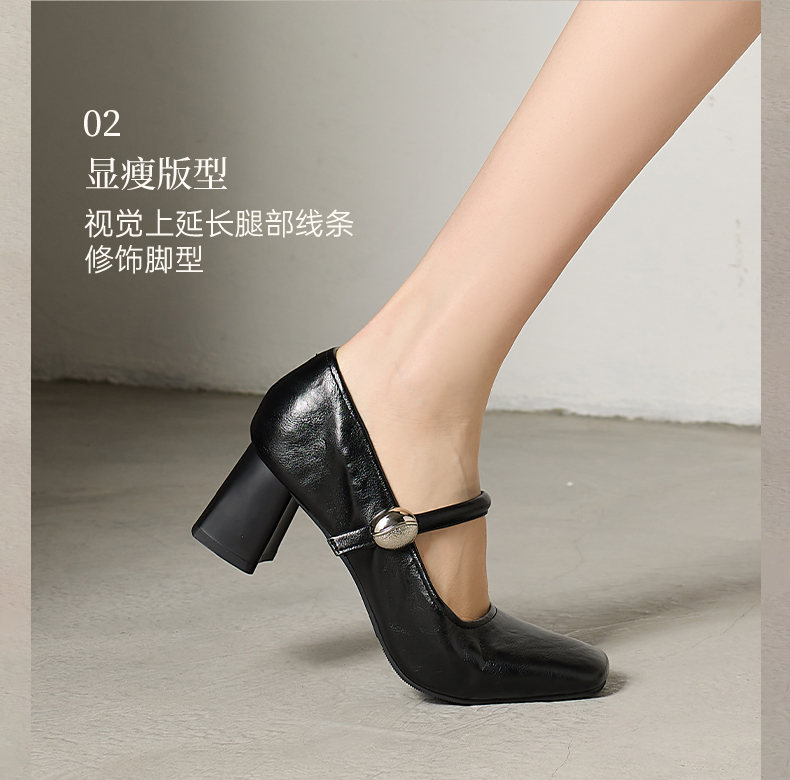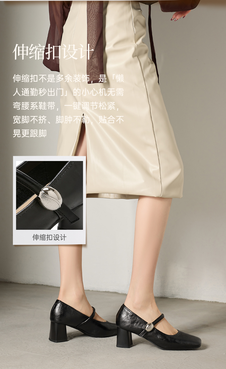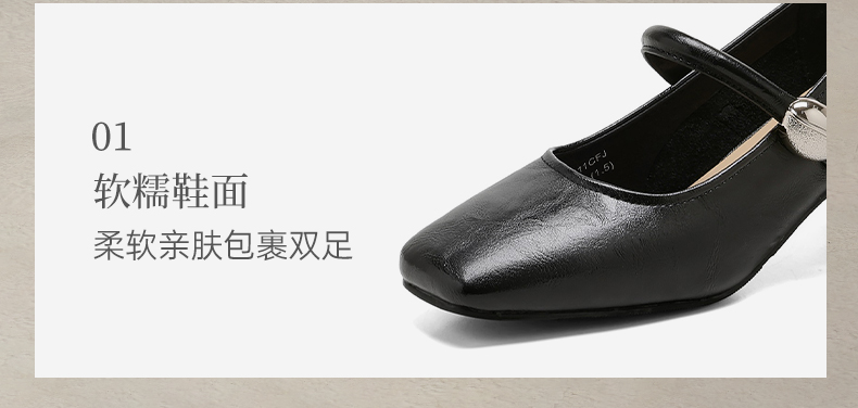 星期六26春新款复古方头一字带粗跟玛丽珍SSE1111CFJ