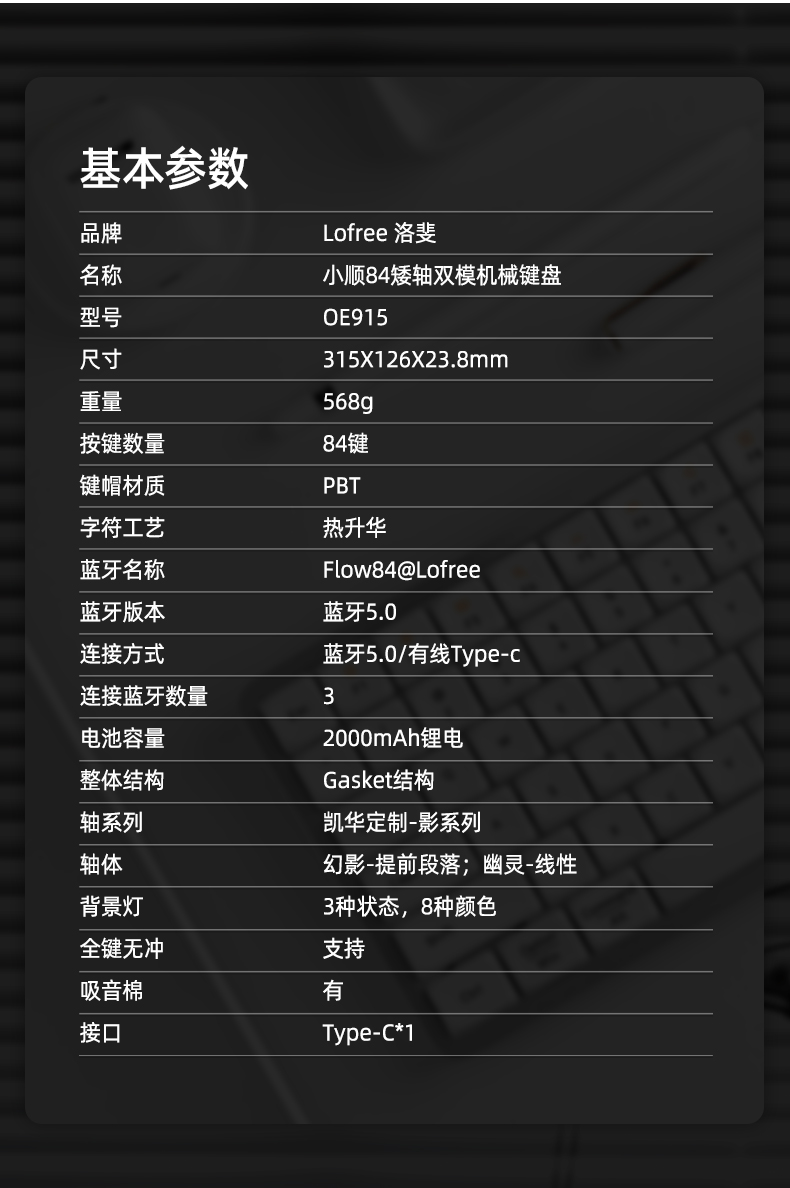洛斐(LOFREE)小顺双模84键矮轴机械键盘