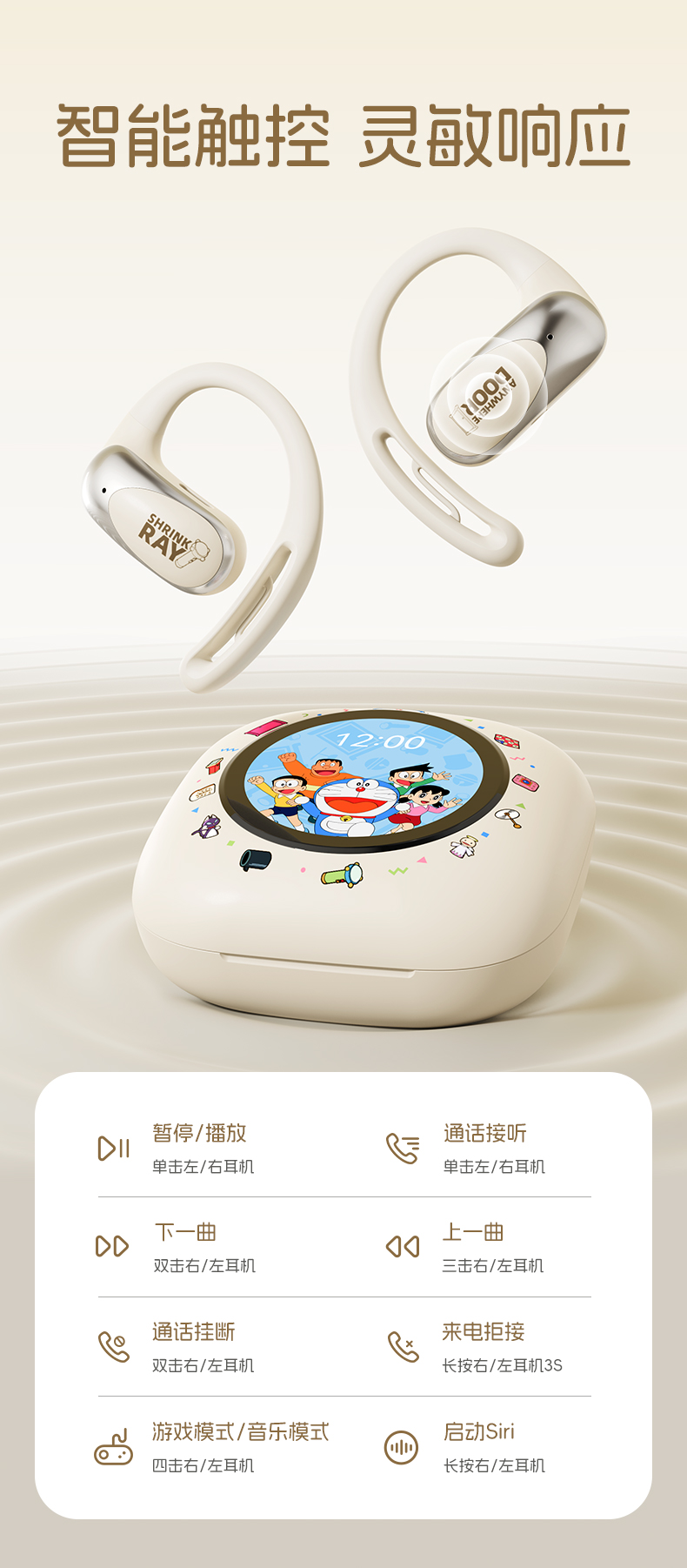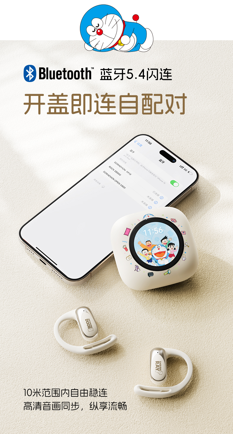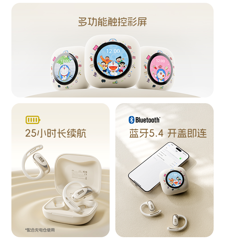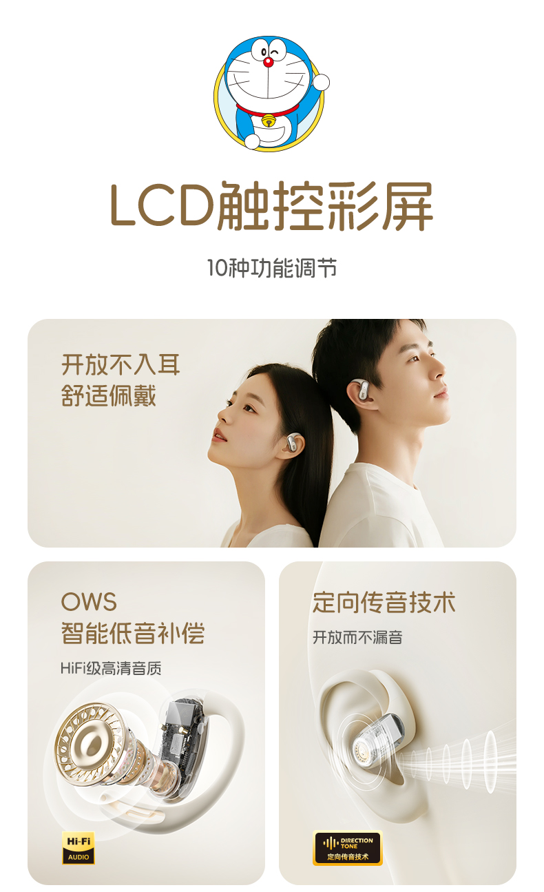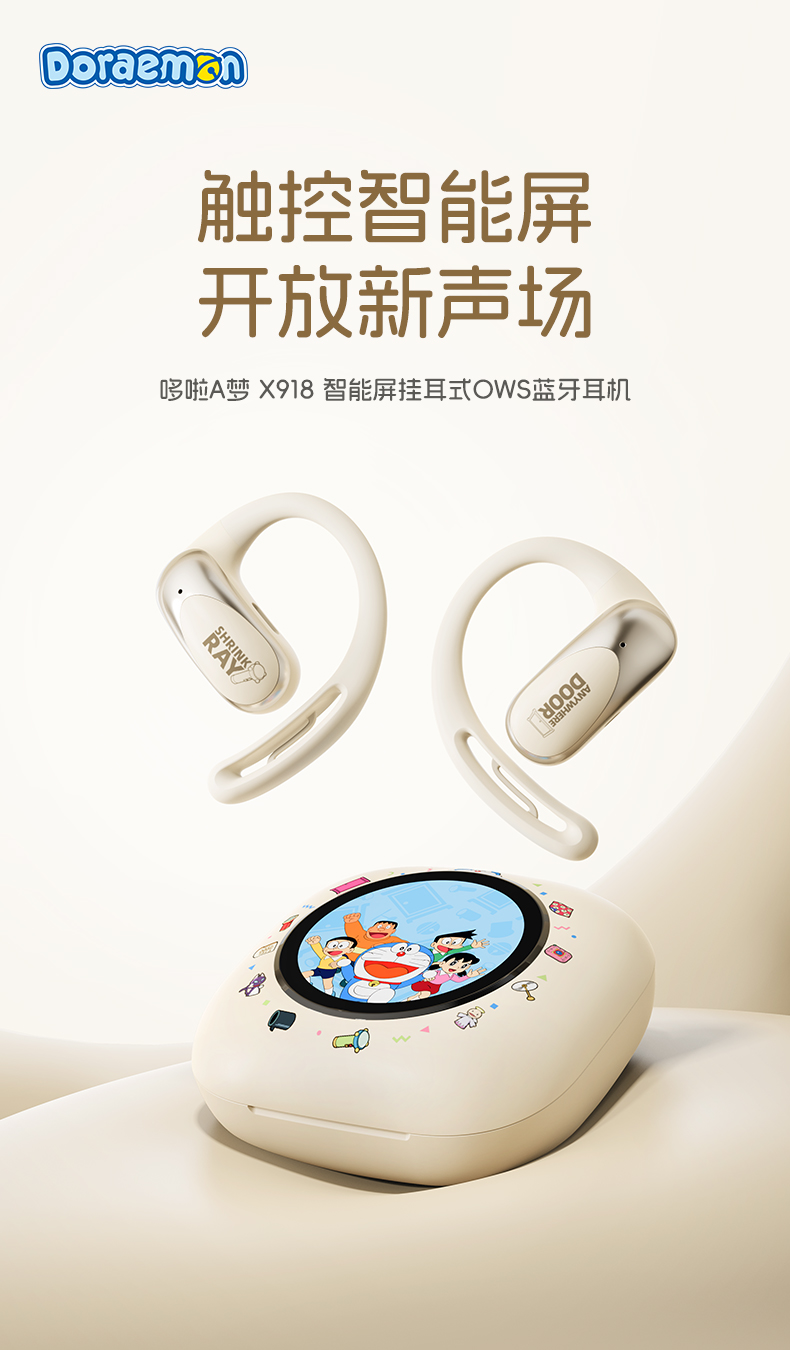 哆啦A梦 X918 智能屏挂耳式OWS蓝牙耳机