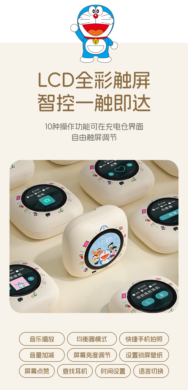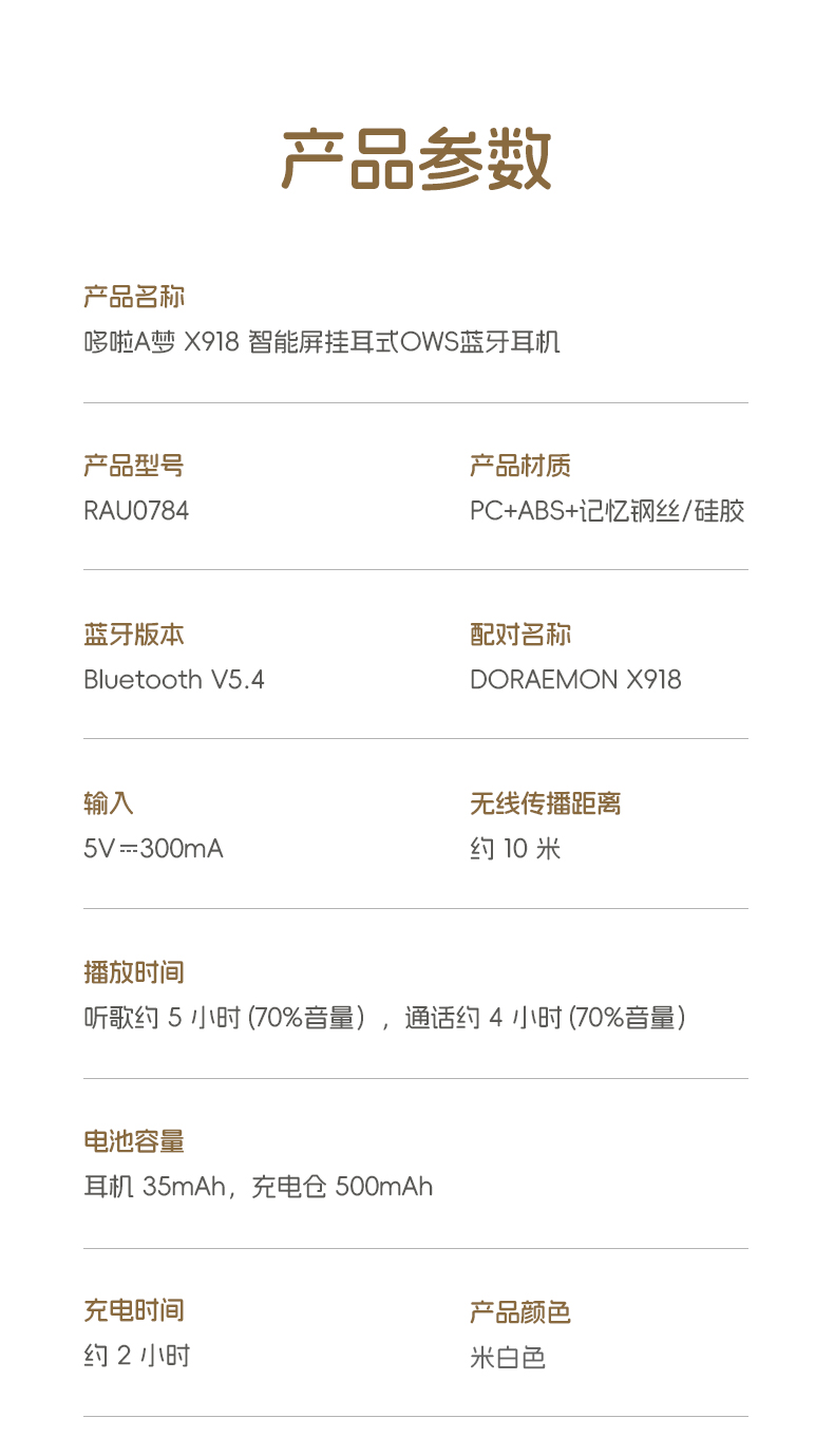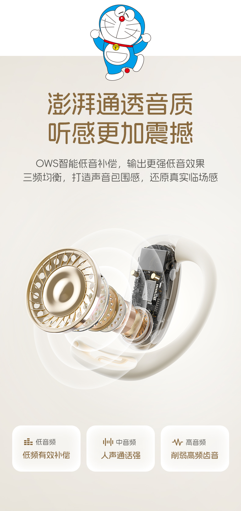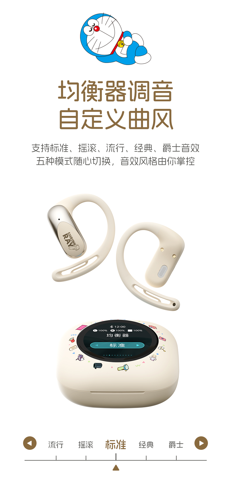 哆啦A梦 X918 智能屏挂耳式OWS蓝牙耳机